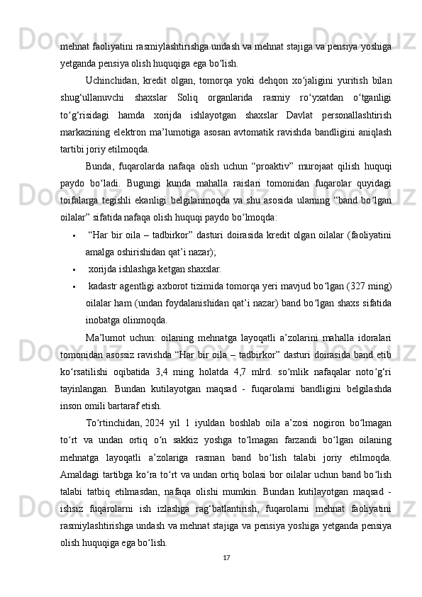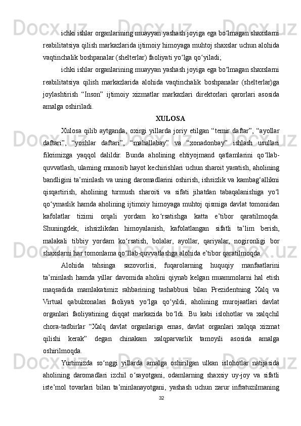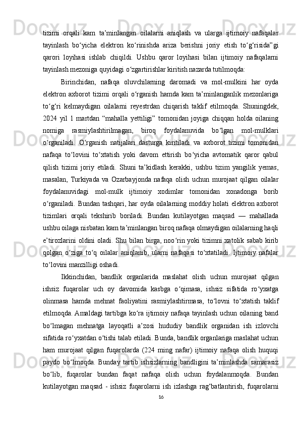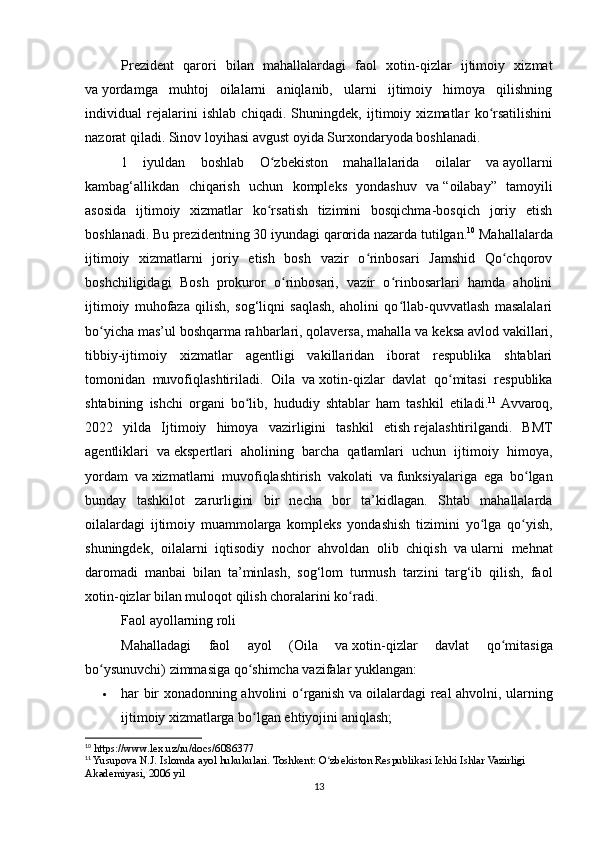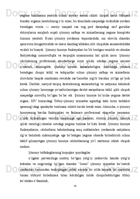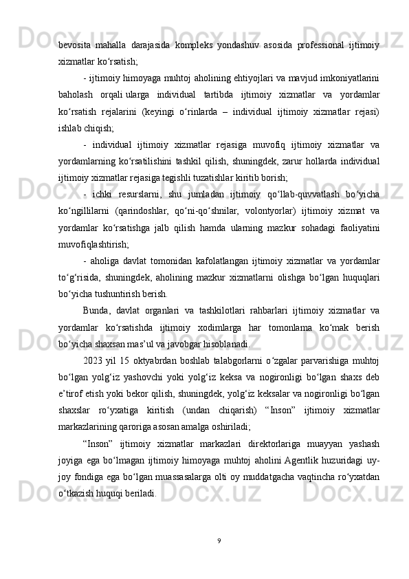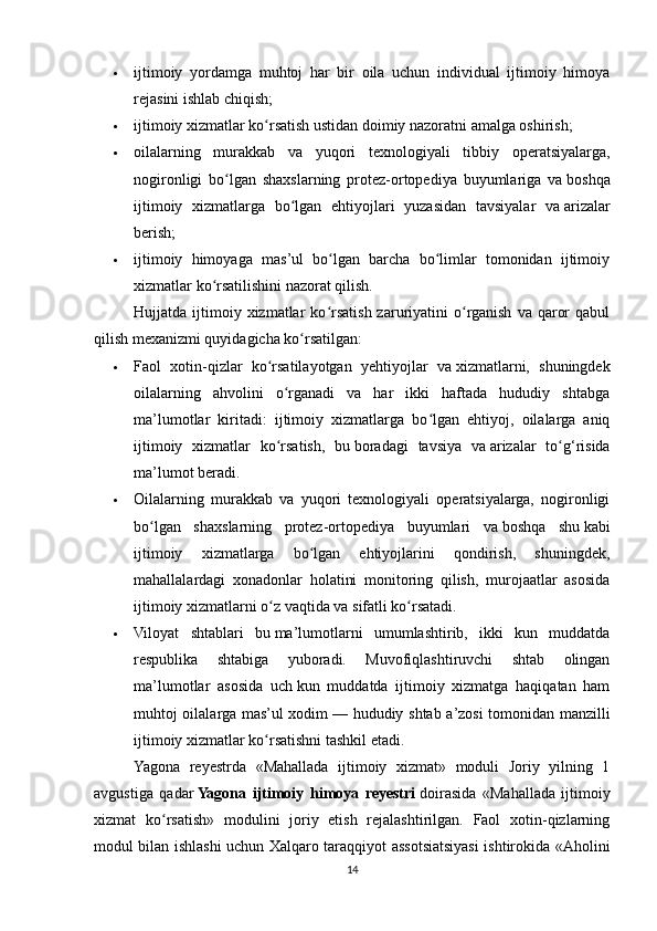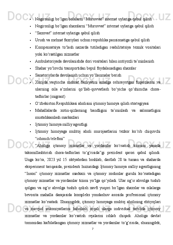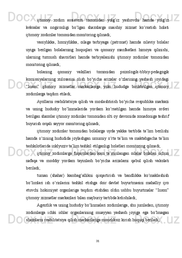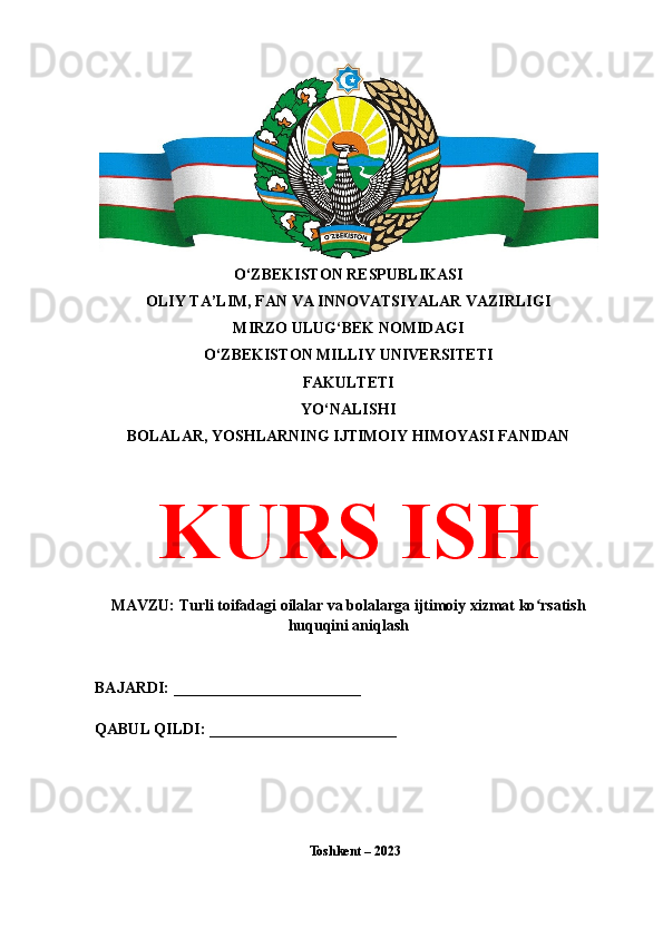 TURLI TOIFADAGI OILALAR VA BOLALARGA IJTIMOIY XIZMAT KOʻRSATISH HUQUQINI ANIQLASH.