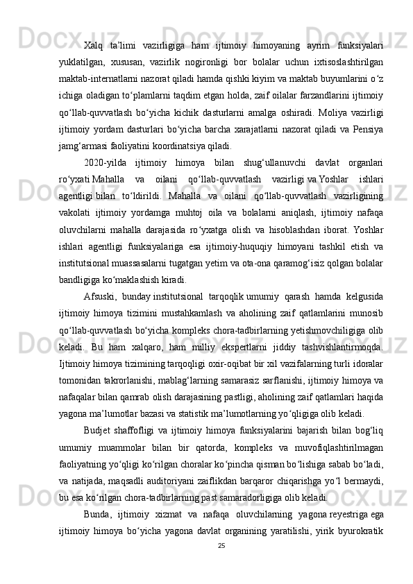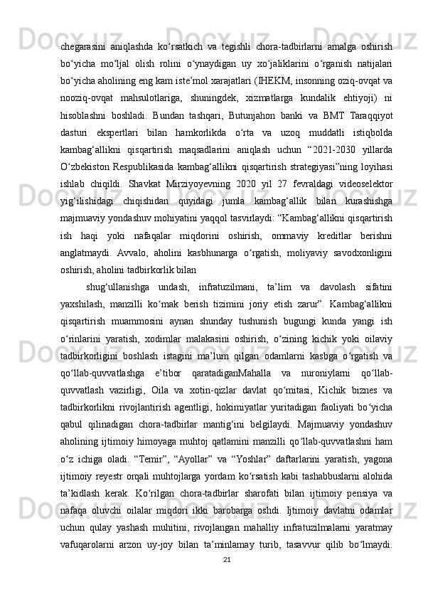 2.1. Ijtimoiy xizmatdagi muhtoj oilalar va bolalarni aniqlash chora tadbirlari....18