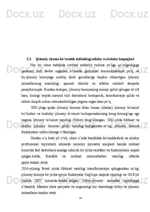 2.2. Ijtimoiy xizmat koʻrsatish toifasidagi oilalar va bolalar huquqlari.................23