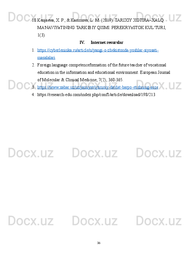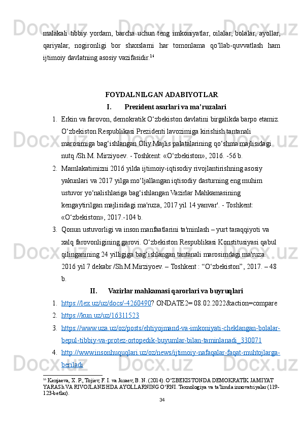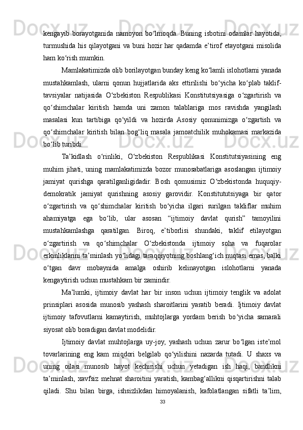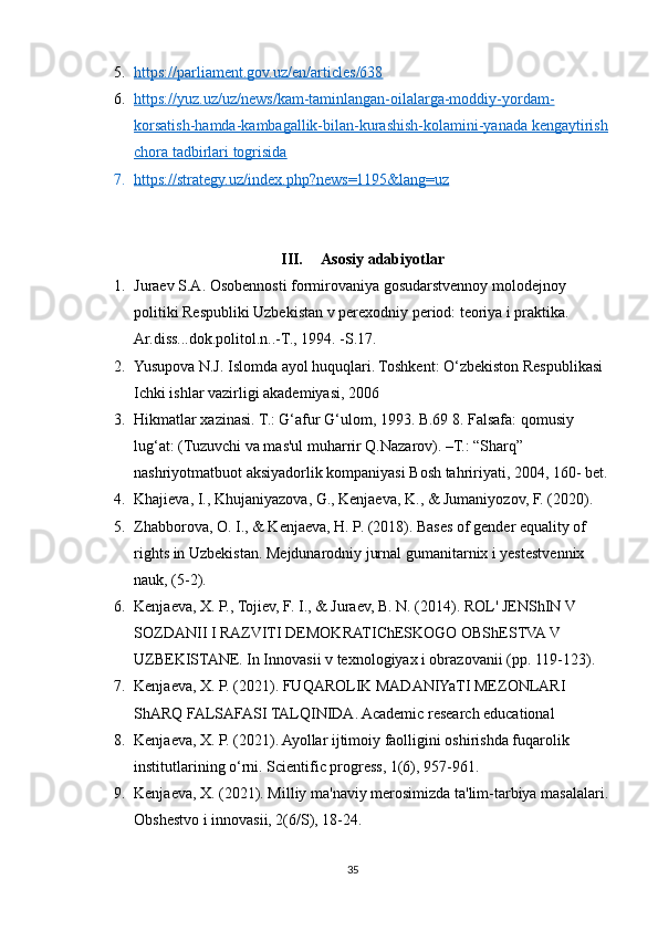 FOYDALANILGAN ADABIYOTLAR...............................................................33