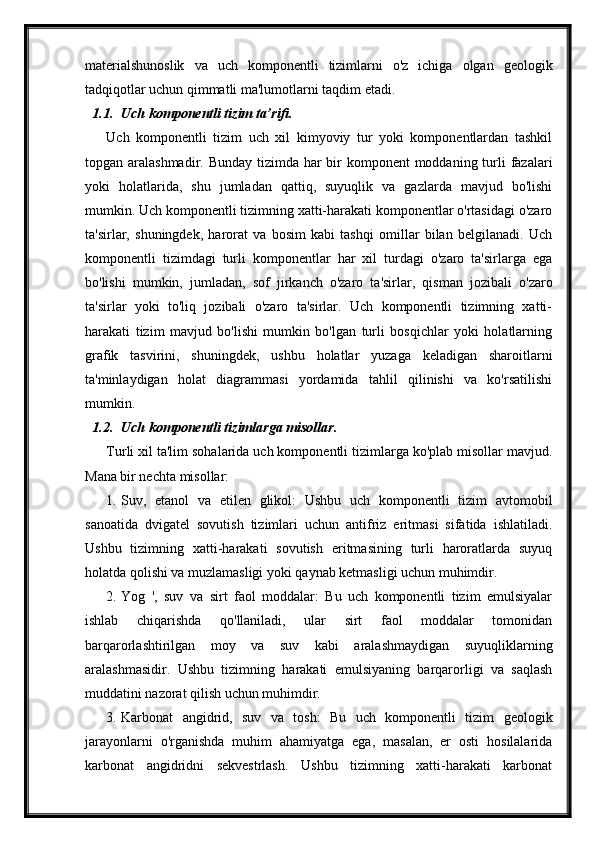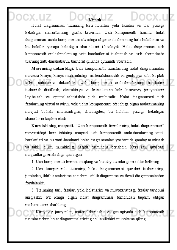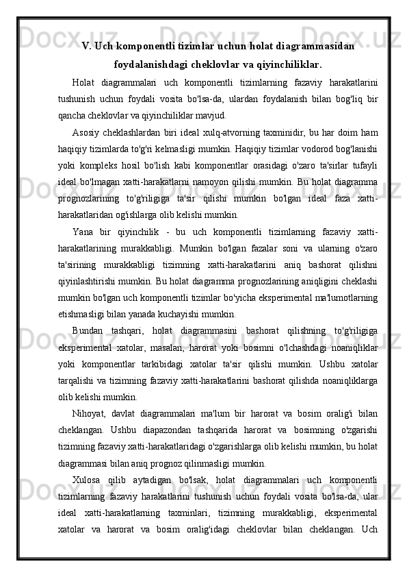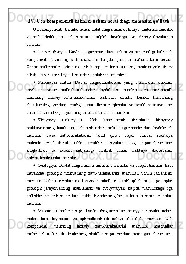 Uch komponentli sistemlarning holat diagrammasi
