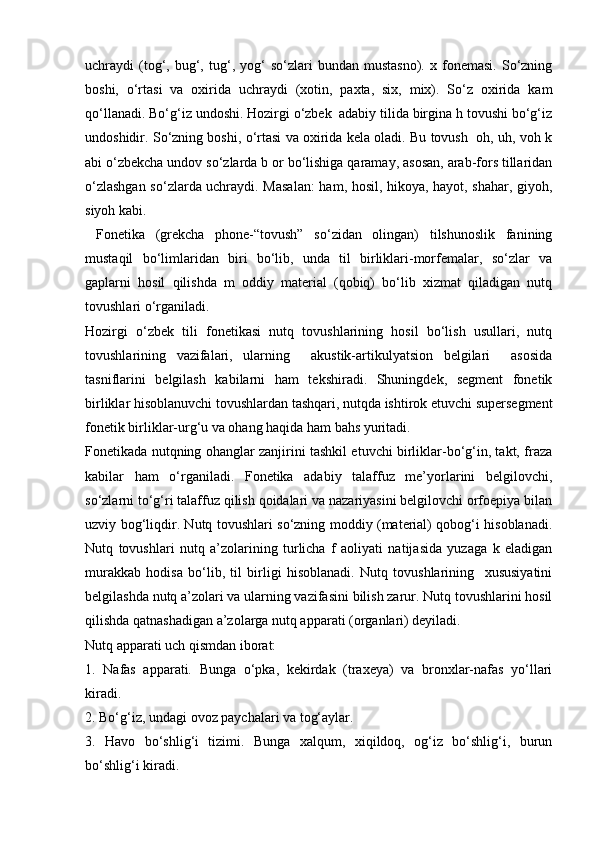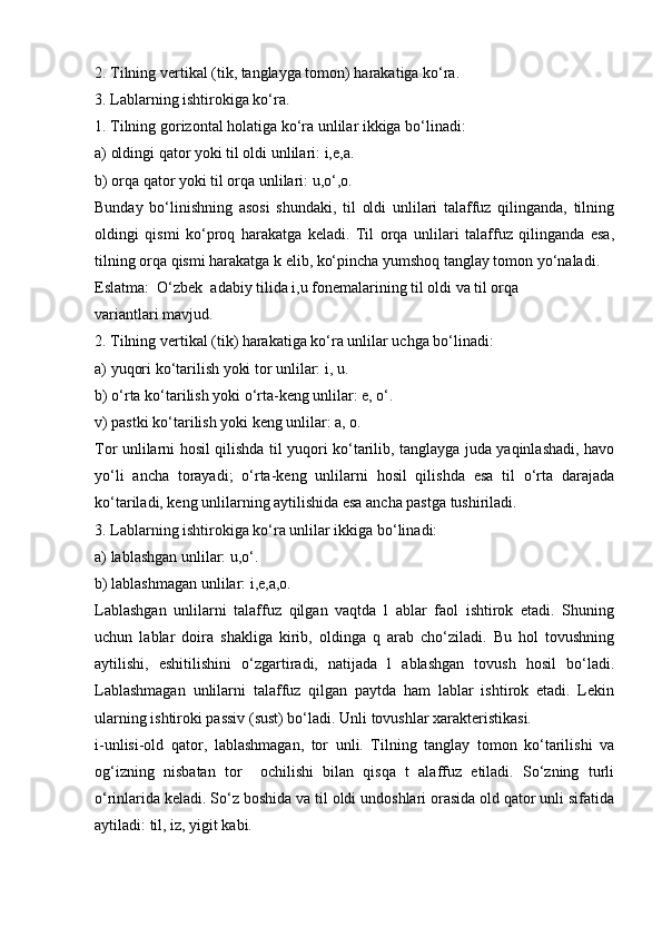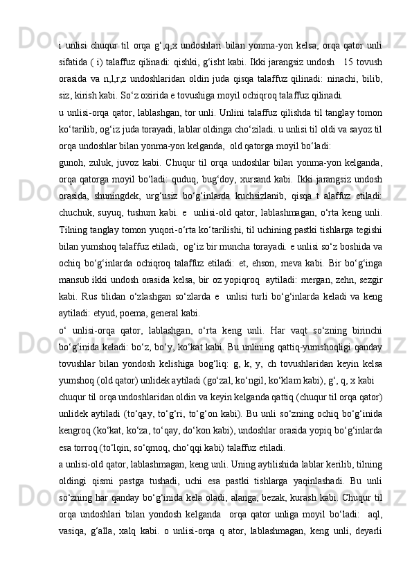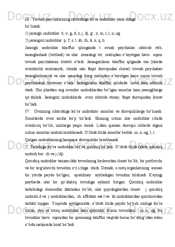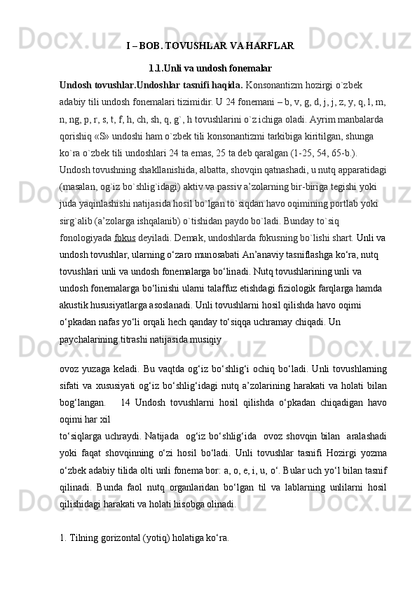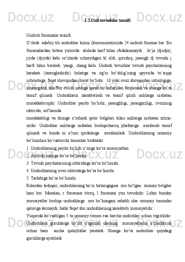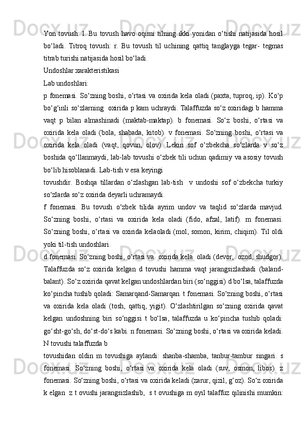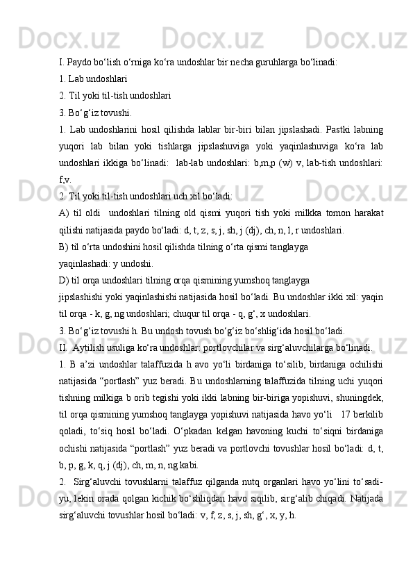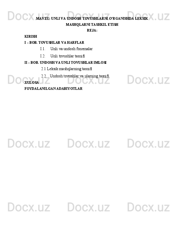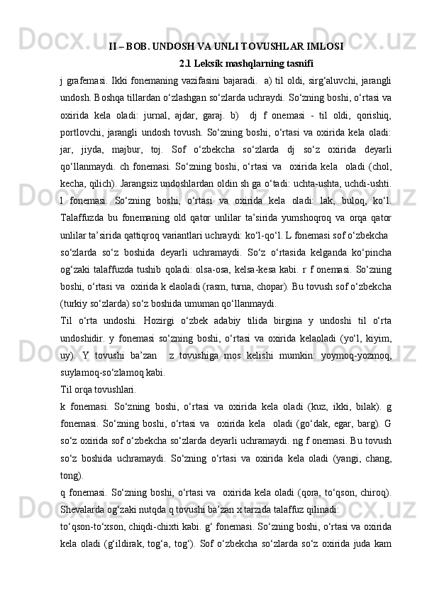 II – BOB. UNDOSH VA UNLI TOVUSHLAR IMLOSI