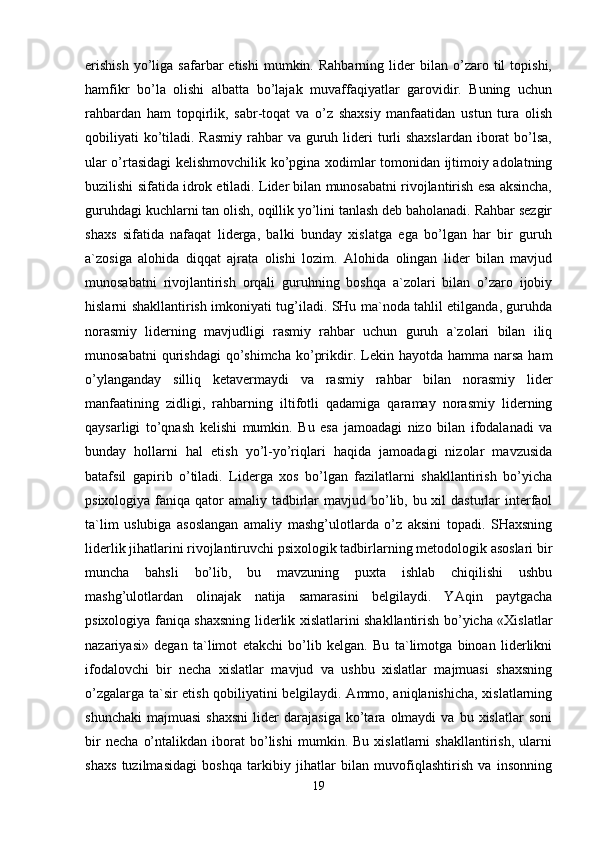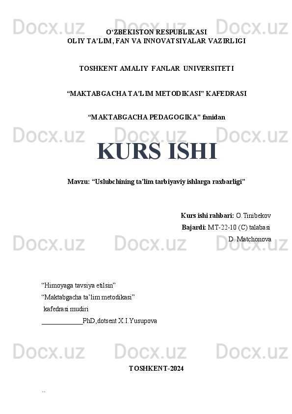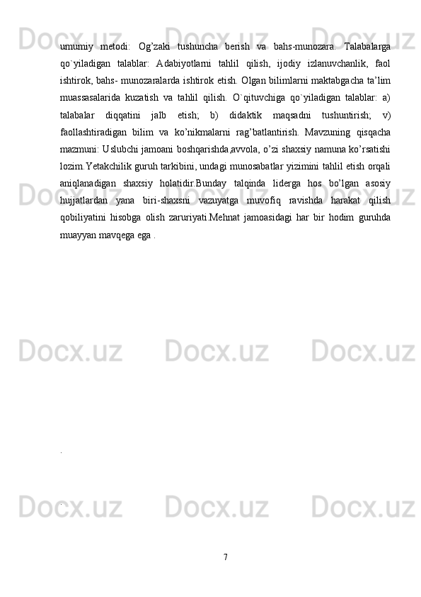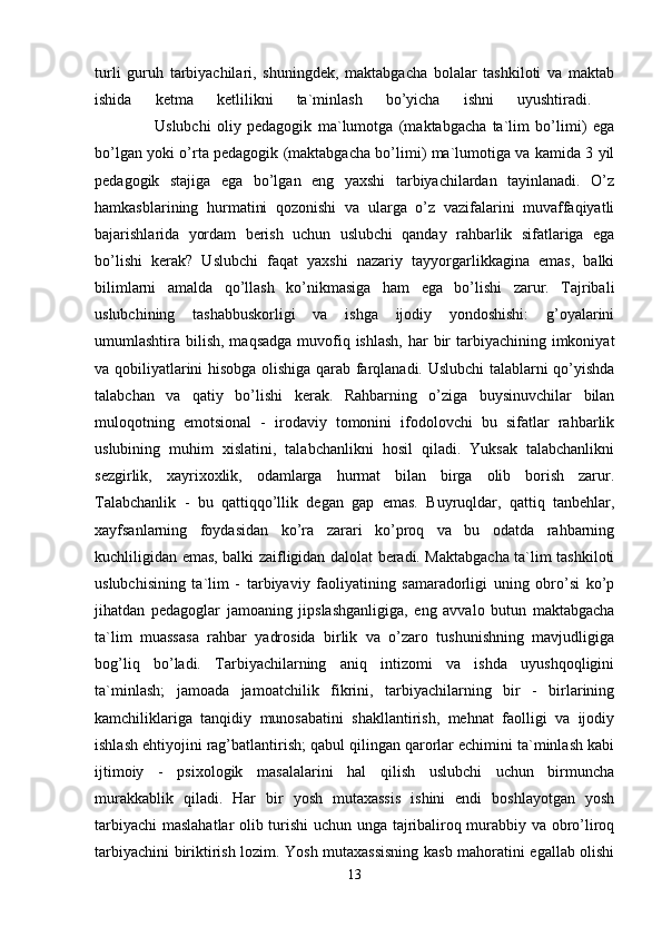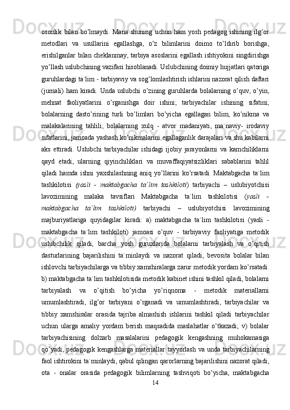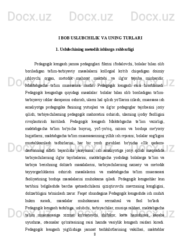 Uslubchining ta’lim tarbiyaviy ishlarga raxbarligi