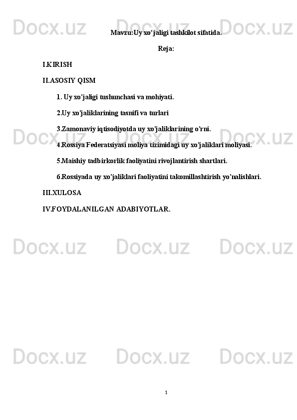 1. Uy xo'jaligining mohiyatini tavsiflash;