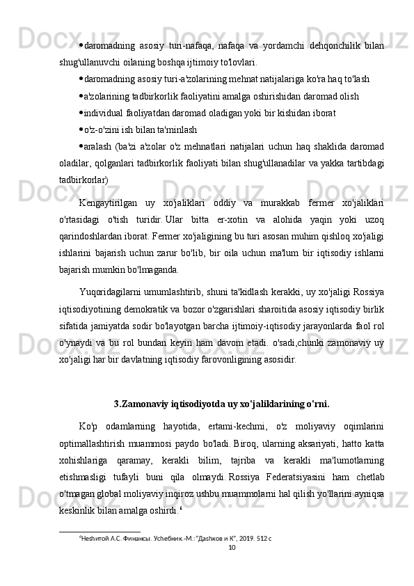 bo'lib,   u   uy   xo'jaligi   a'zolarining   umumiy   daromadlarini   va   shaxsiy   ehtiyojlarini