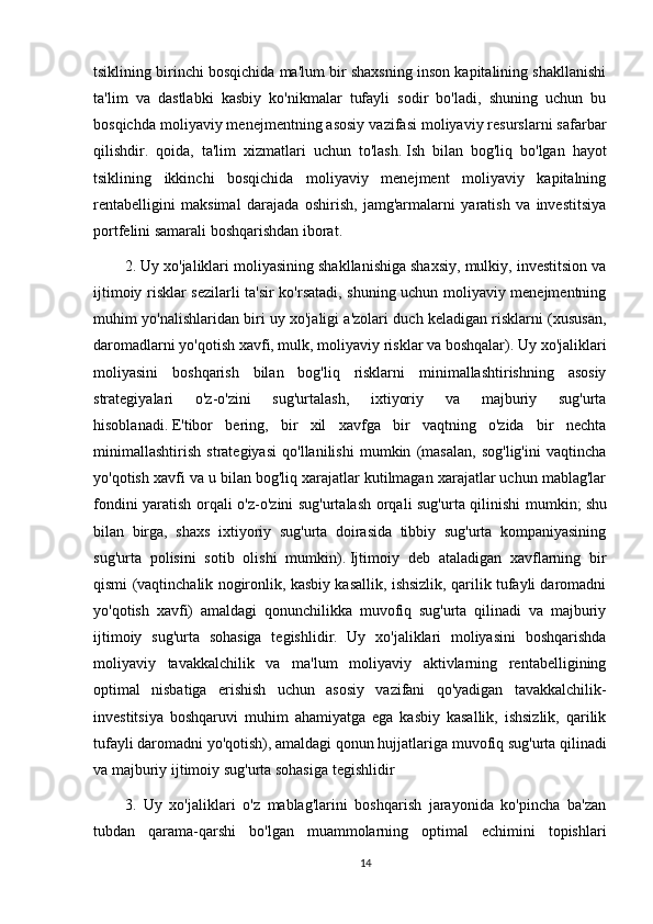 bo‘lishining oldini olish uchun o‘z daromadlarini shunday rejalashtirishi va undan