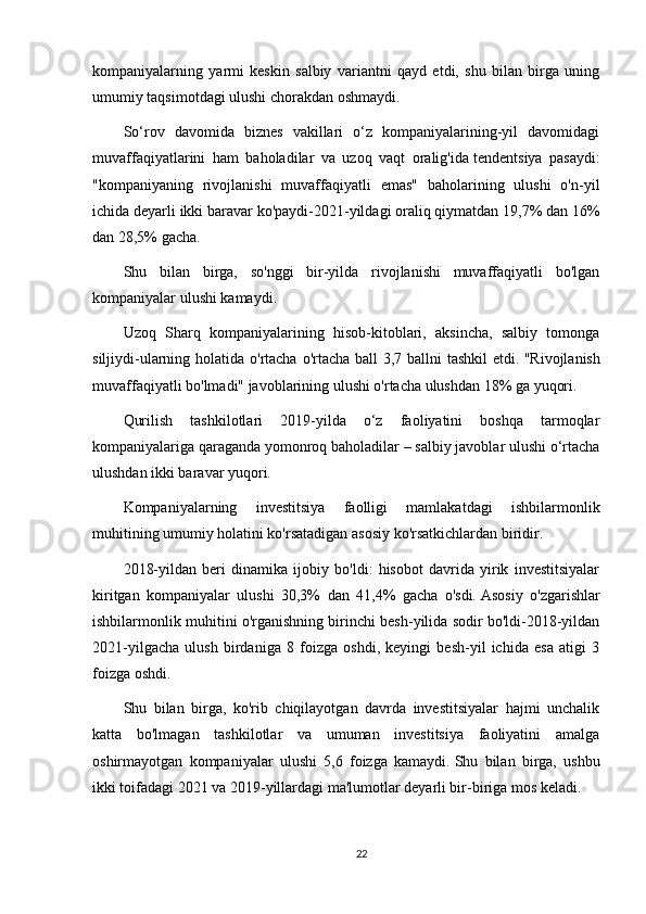 shuni   ko'rsatdiki,  kompaniyalarning   atigi   uchdan   bir   qismi   "talabning  kamayishi"