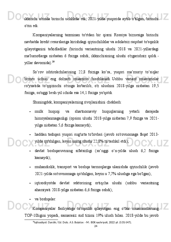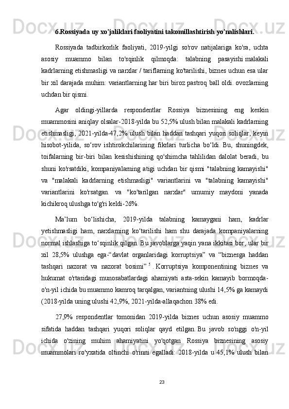 Agar   oldingi-yillarda   respondentlar   Rossiya   biznesining   eng   keskin