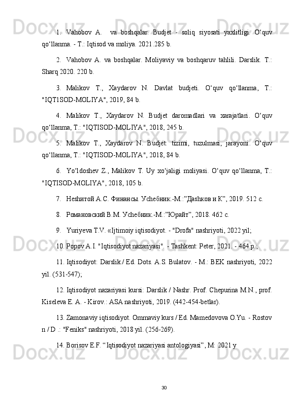 2. Va h ob o v   A.   va   bosh q alar .   Moliyaviy   va   bosh q aruv   ta h lili.   Darslik.   T.: