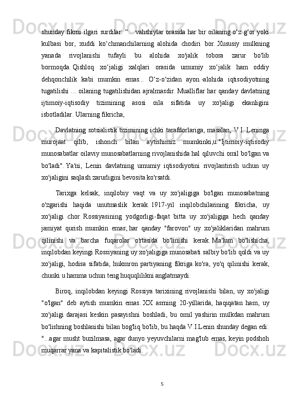 o'zgarishi   haqida   unutmaslik   kerak.   1917-yil   inqilobchilarining   fikricha,   uy