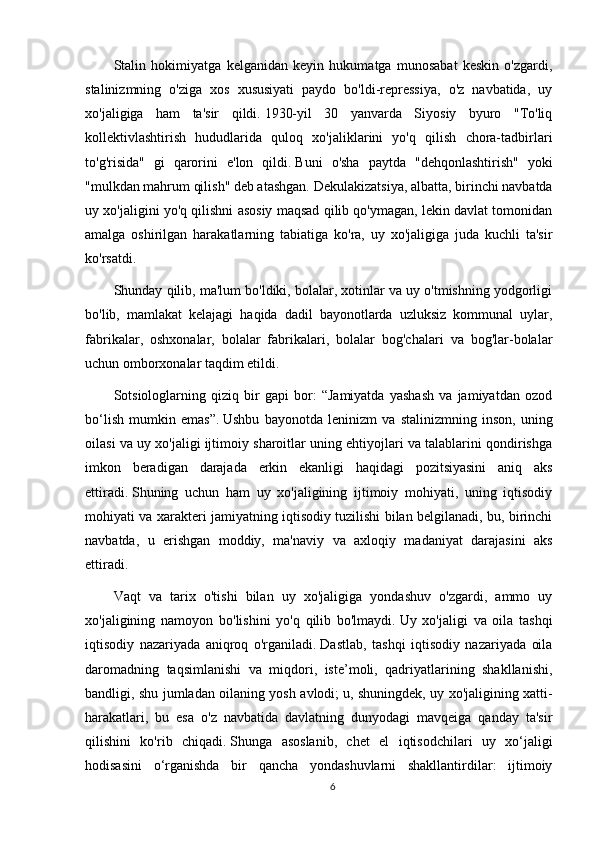 Biroq,   inqilobdan   keyingi   Rossiya   tarixining   rivojlanishi   bilan,   uy   xo'jaligi