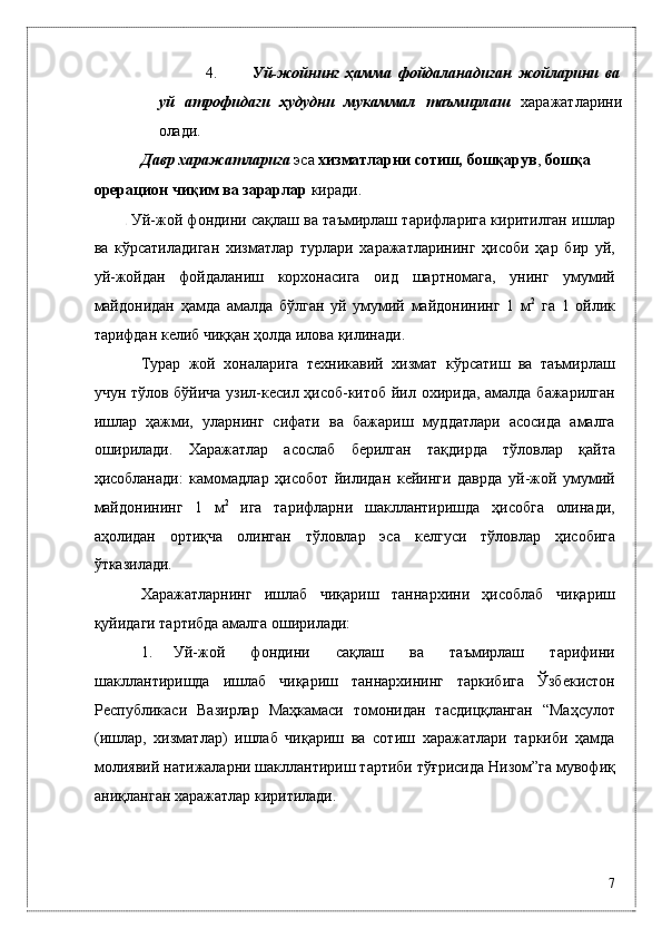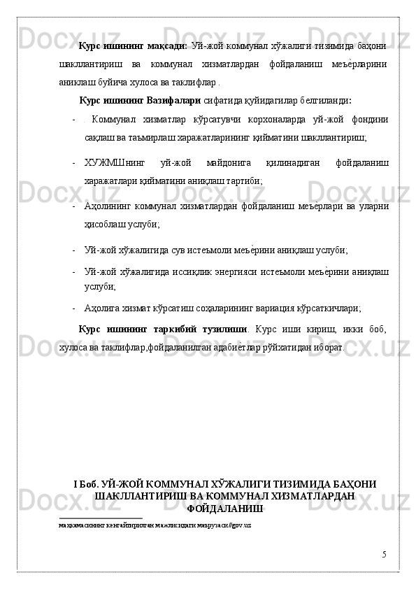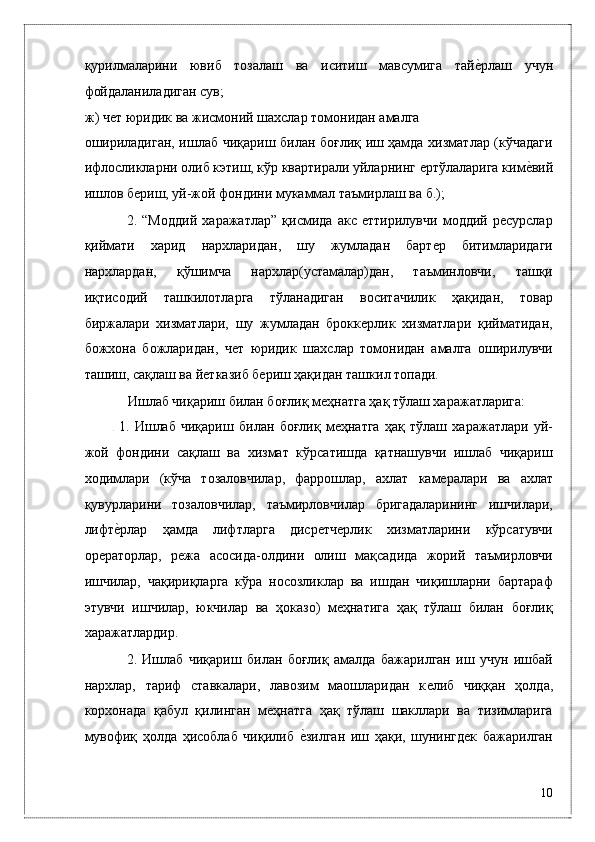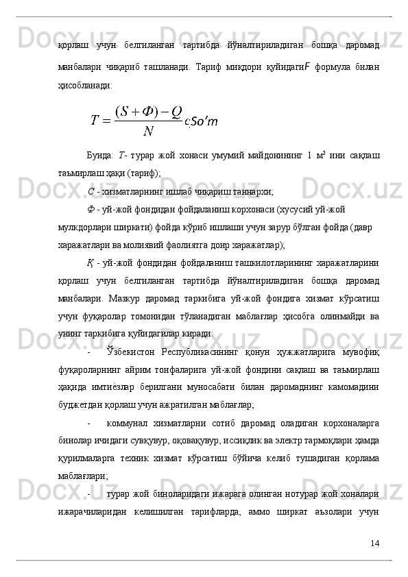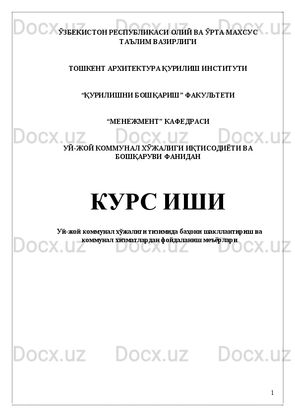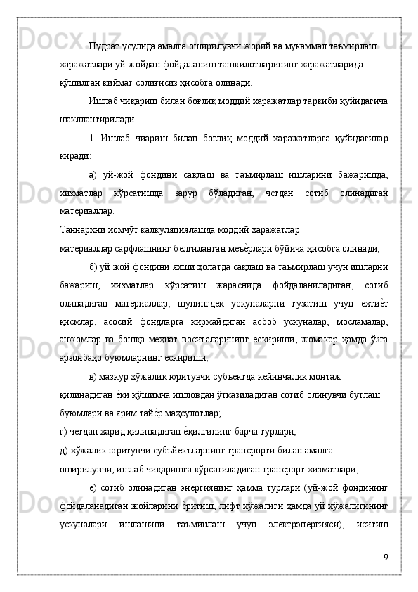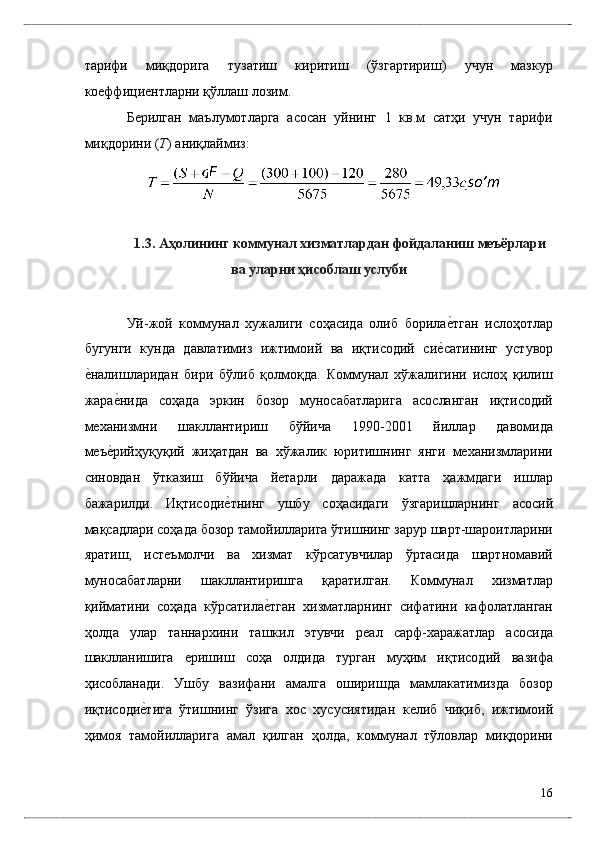 Уй-жой коммунaл xўжaлиги тизимидa бaҳони шaкллaнтириш вa коммунaл xизмaтлaрдaн фойдaлaниш мeъёрлaри