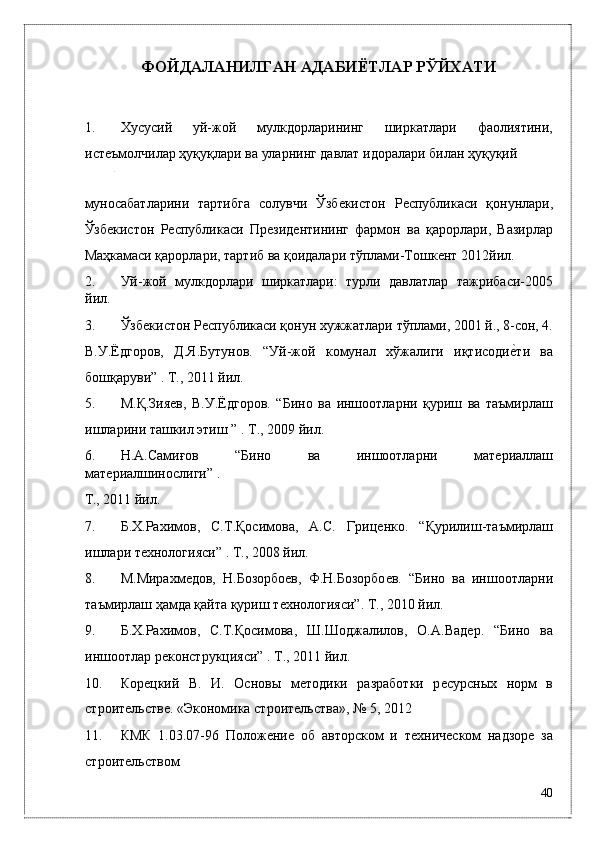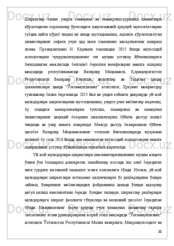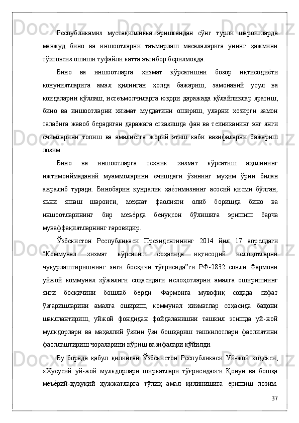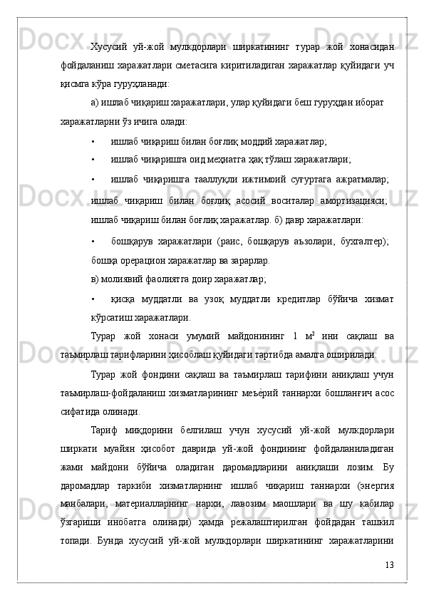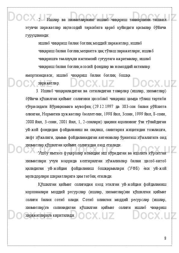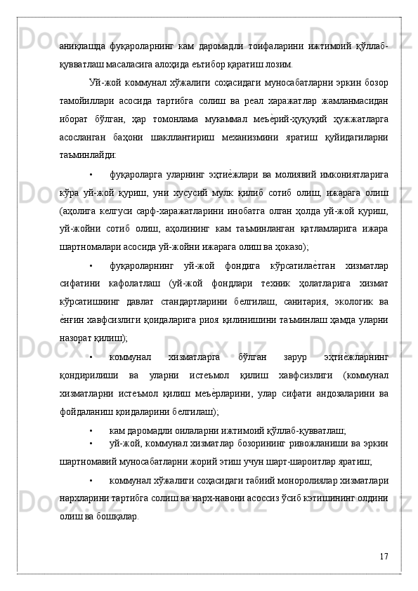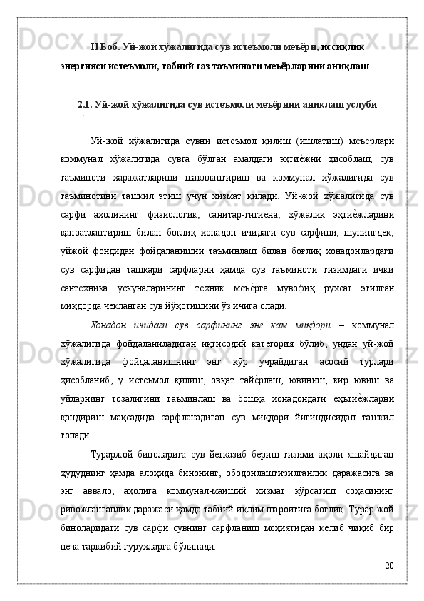 Уй-жой коммунaл xўжaлиги тизимидa бaҳони шaкллaнтириш вa коммунaл xизмaтлaрдaн фойдaлaниш мeъёрлaри