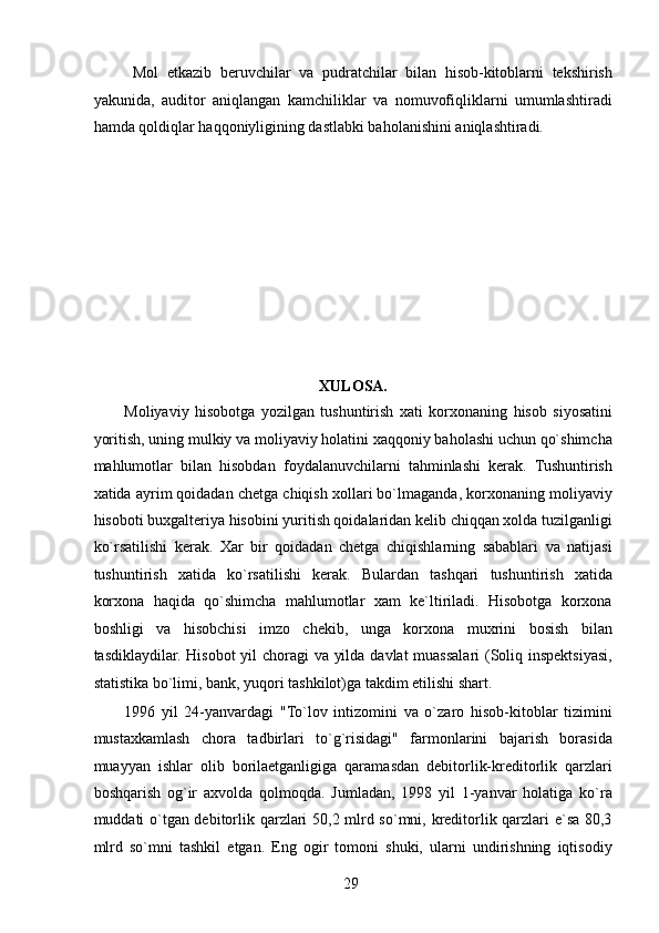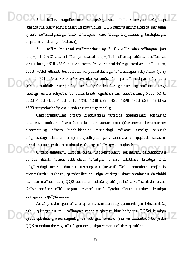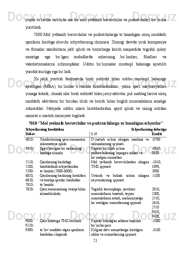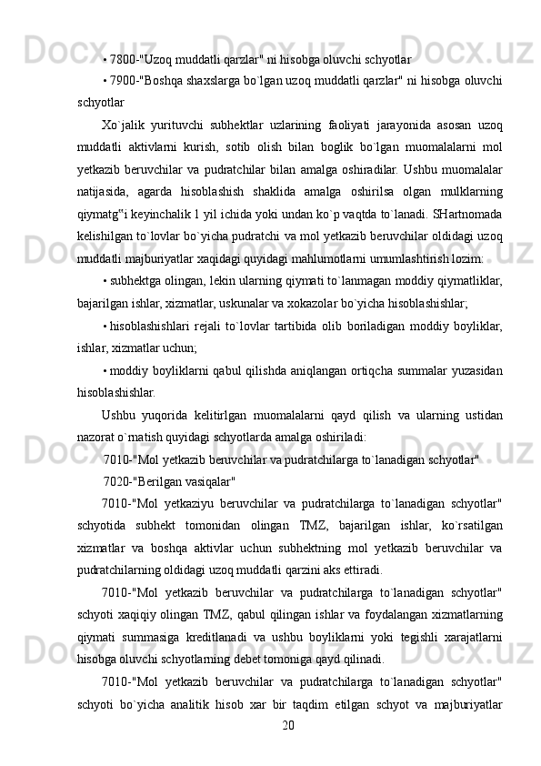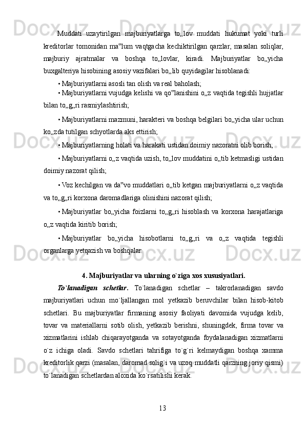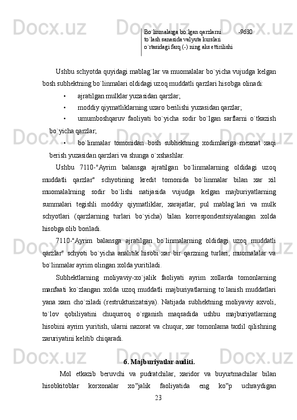 Uzoq muddatli kredit, qarzlar hisobi va auditi
