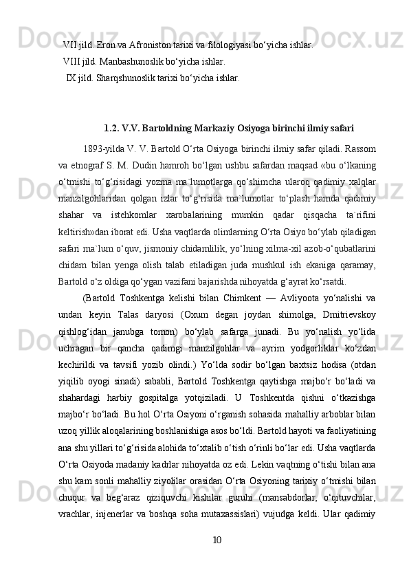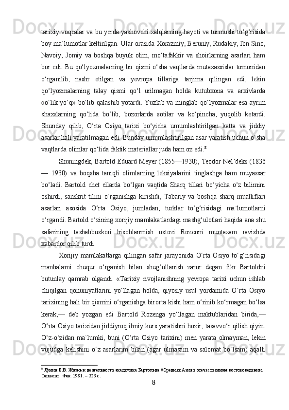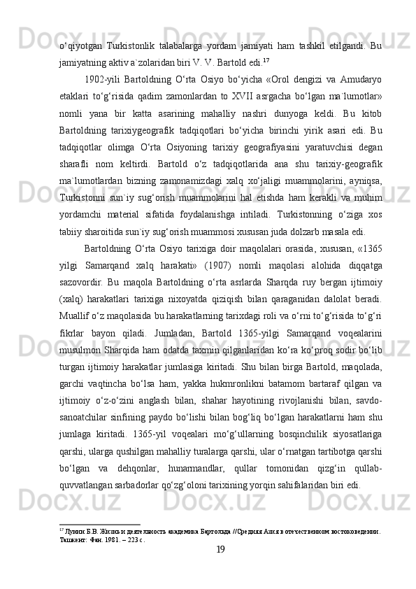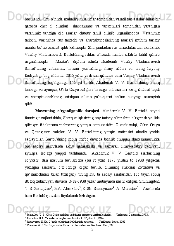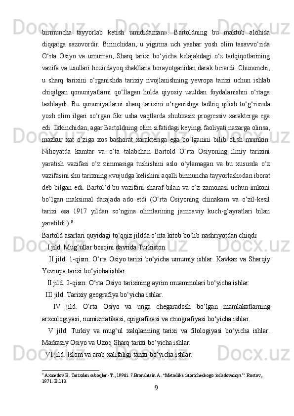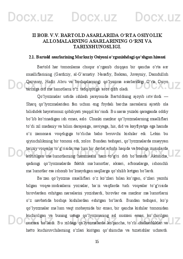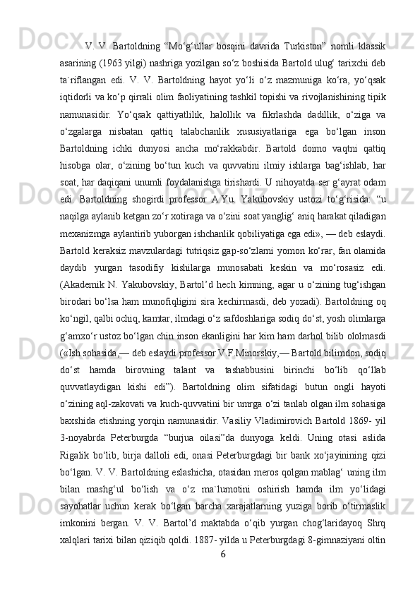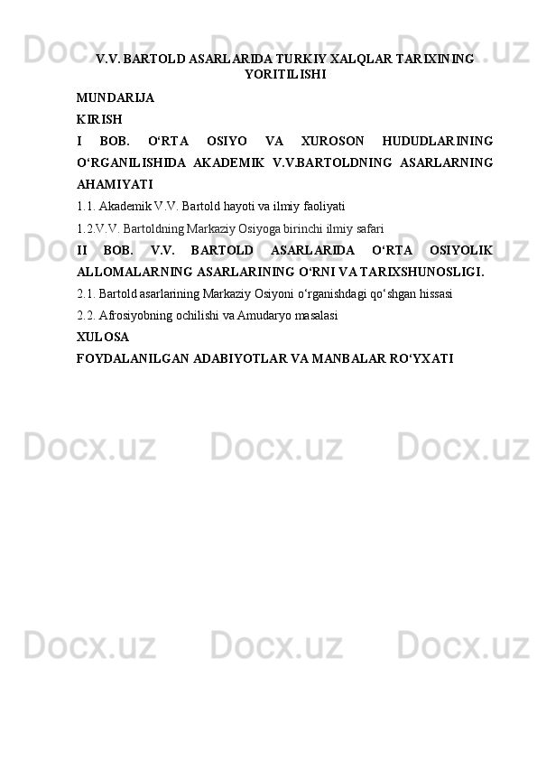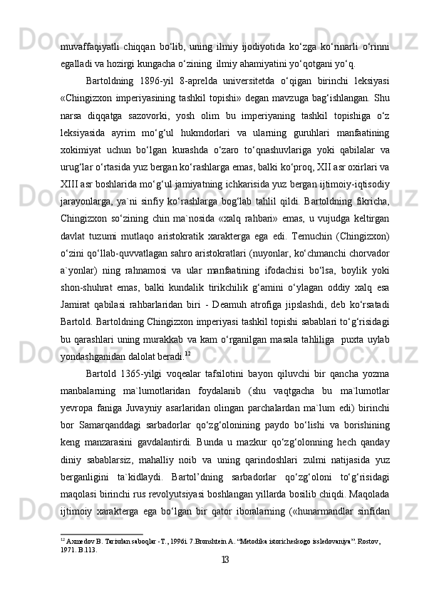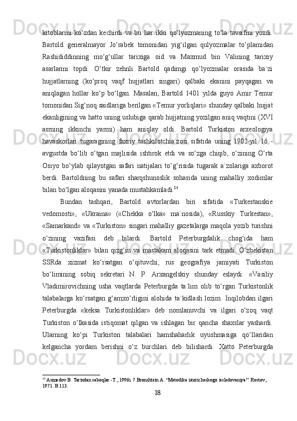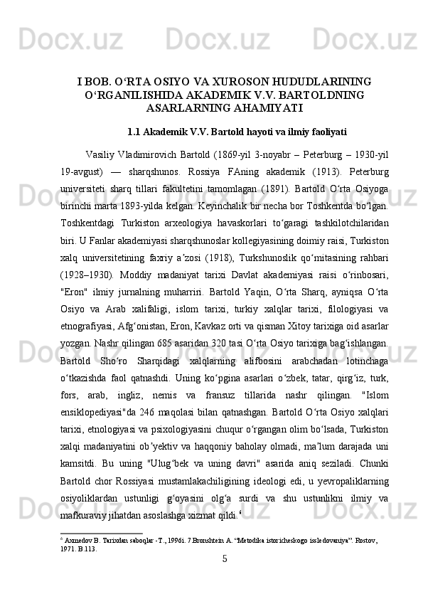 V.V. Bartold asarlarida turkiy xalqlar tarixining yoritilishi haqida