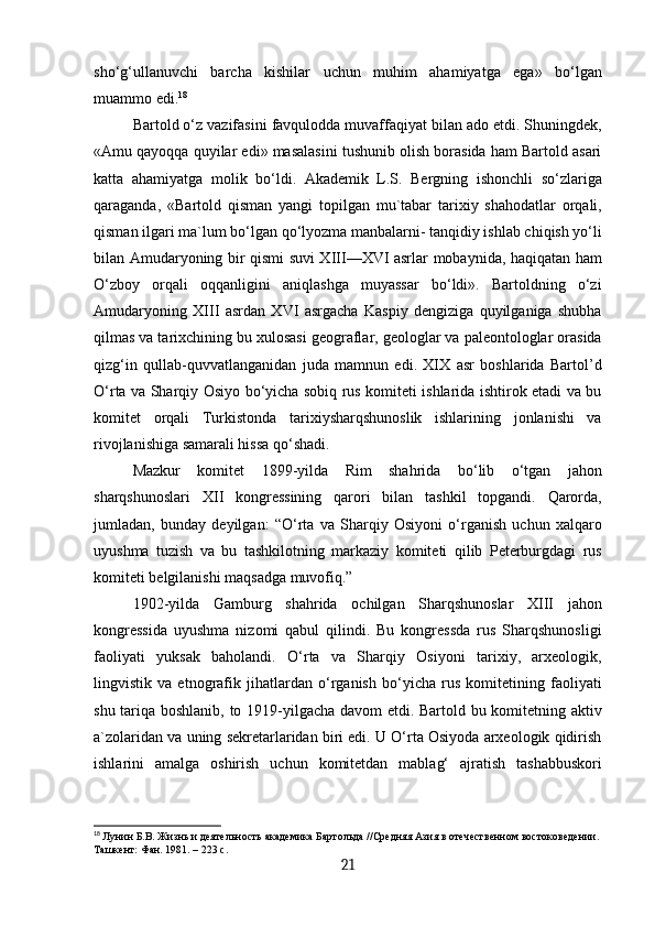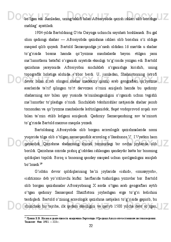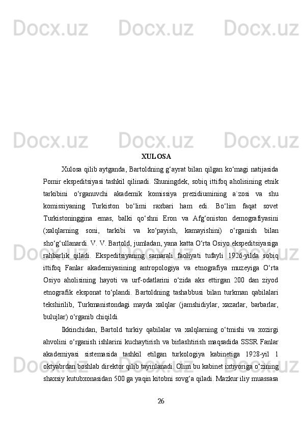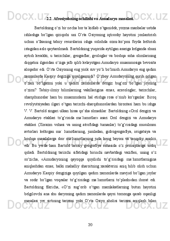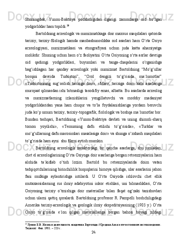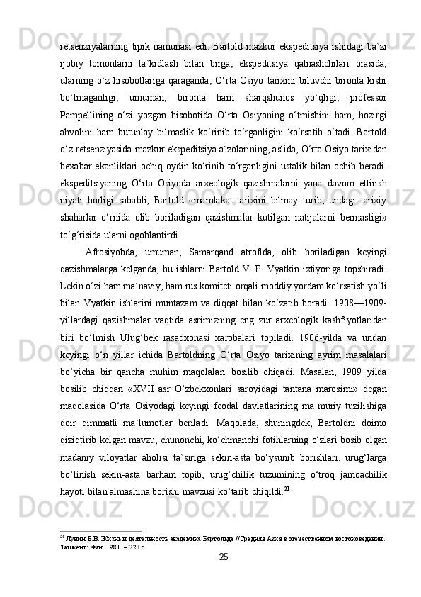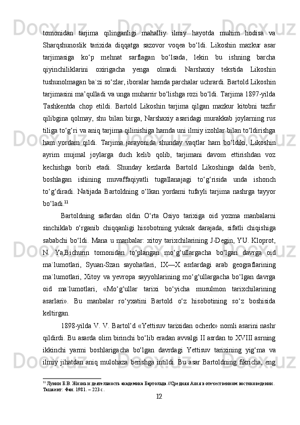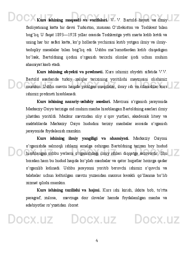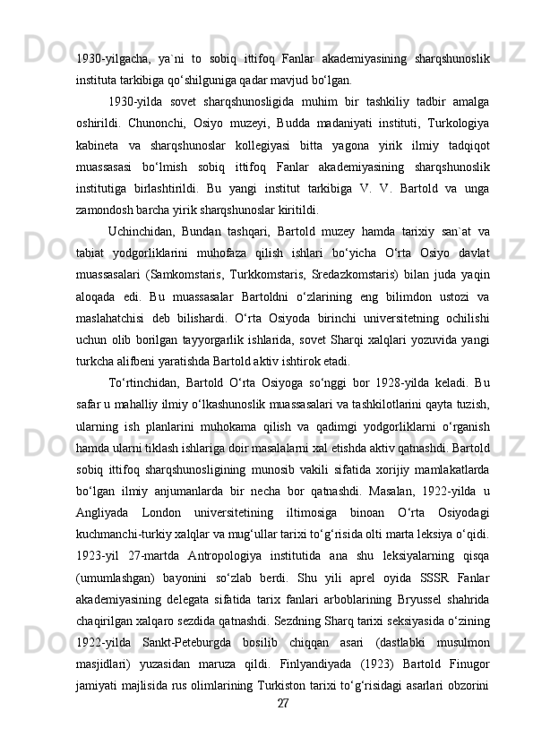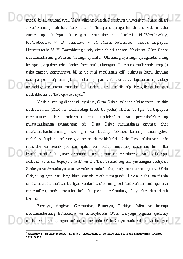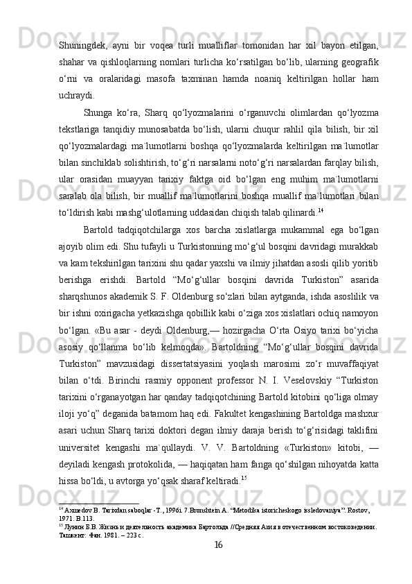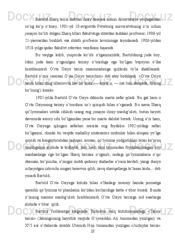 V.V. Bartold asarlarida turkiy xalqlar tarixining yoritilishi haqida