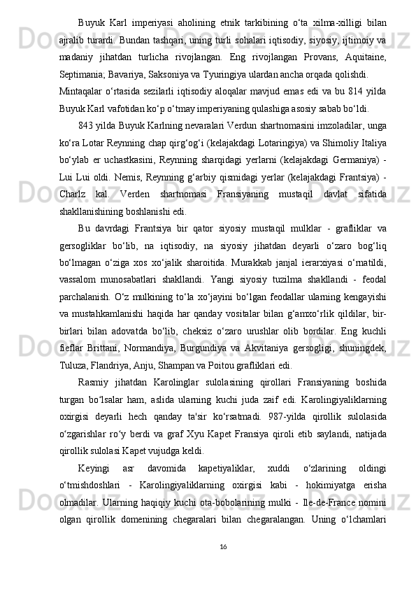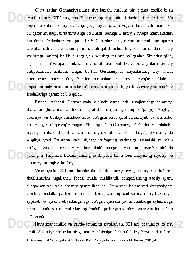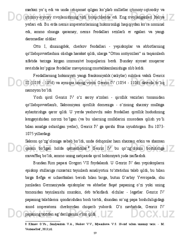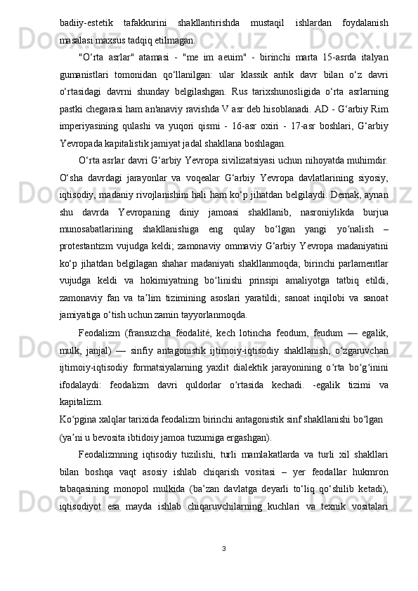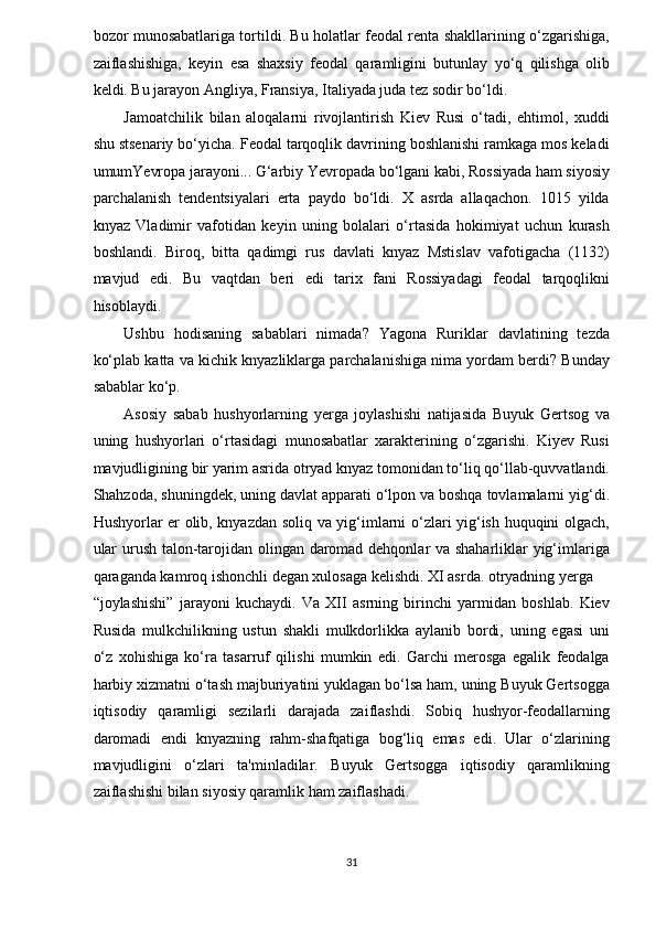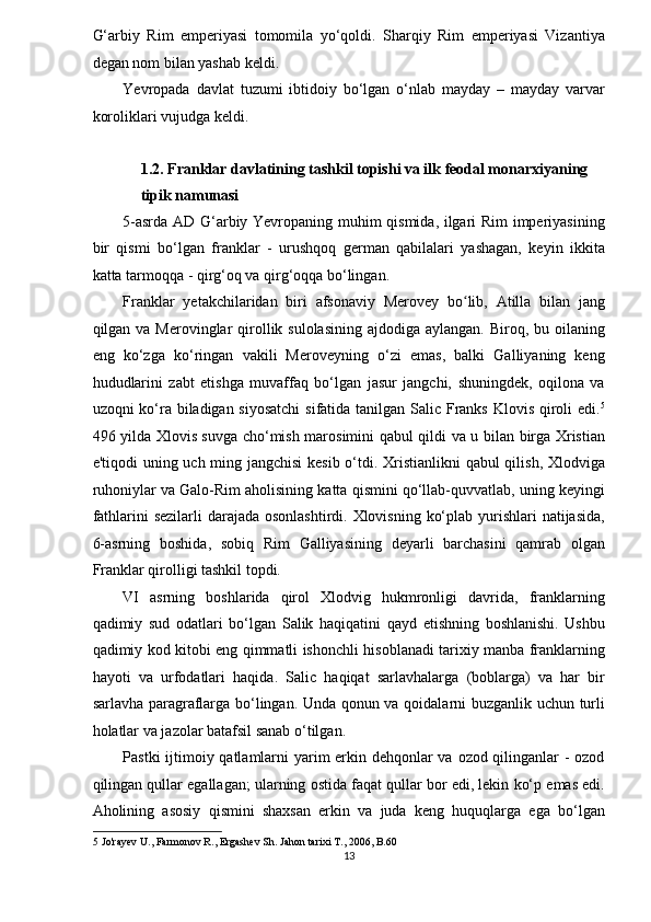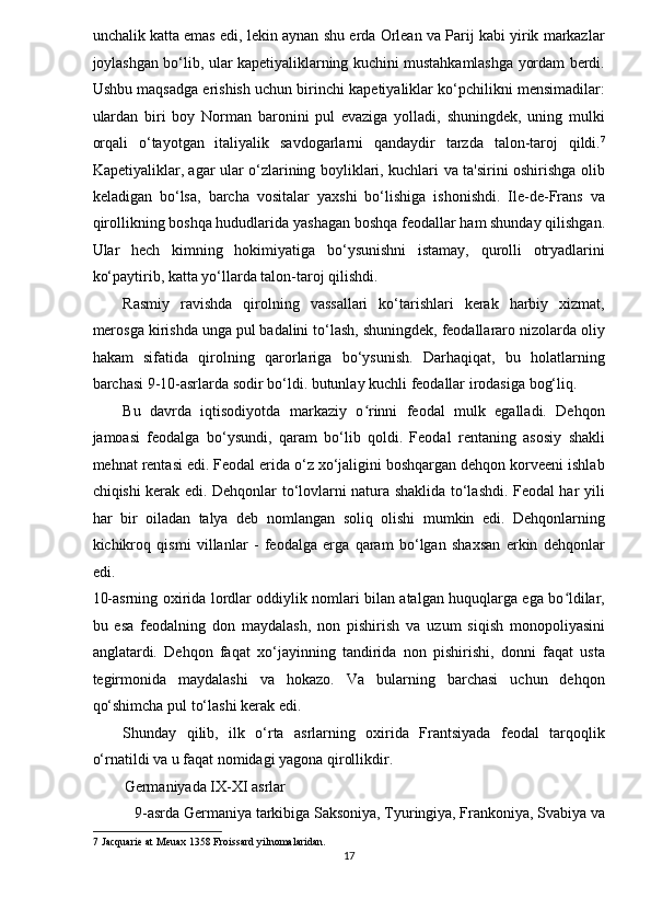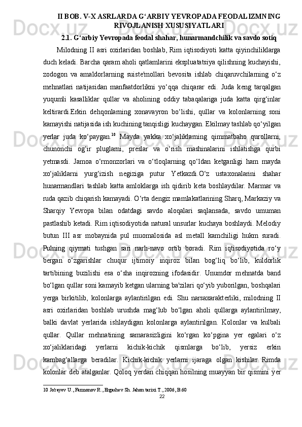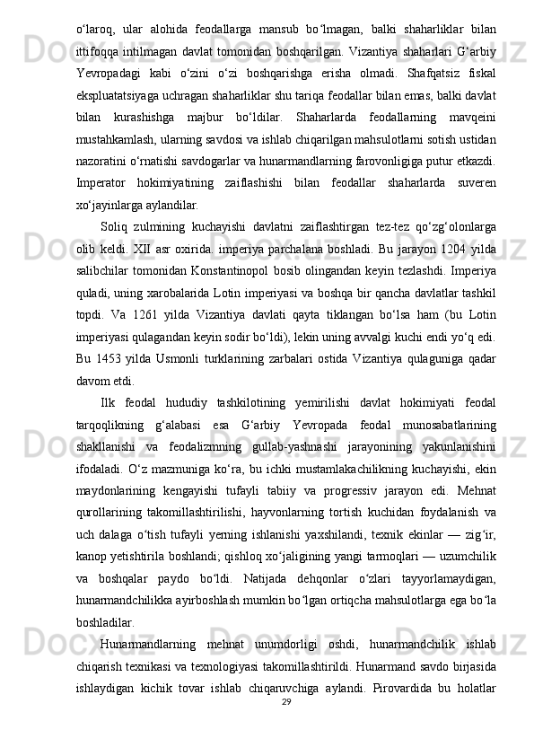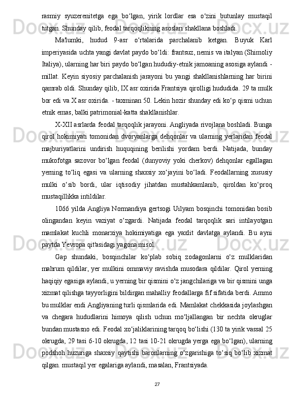 V-x asrlarda g‘arbiy yevropada feodalizmning rivojlanish
