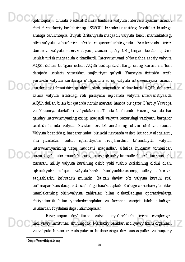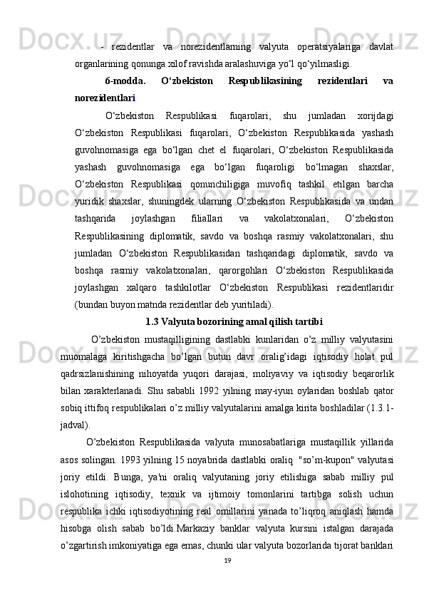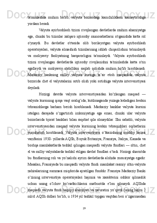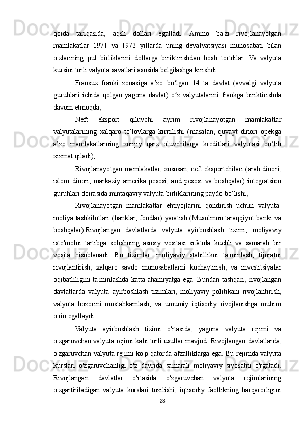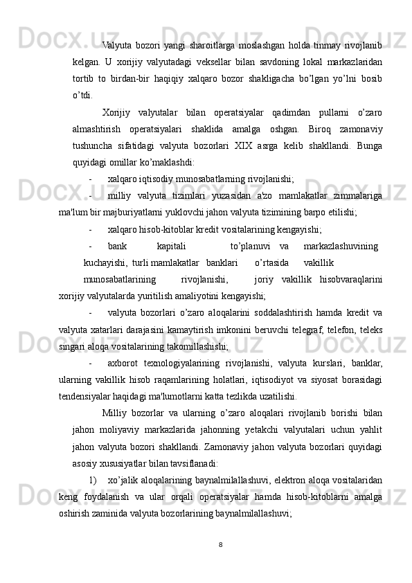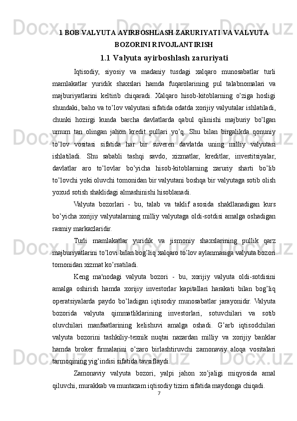 Valyuta ayirboshlash zaruriyati va valyuta bozorining o’ziga xos xususiyatlari, amal qilish tartibi