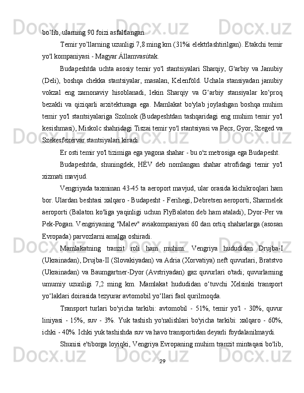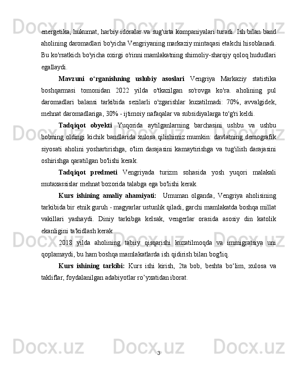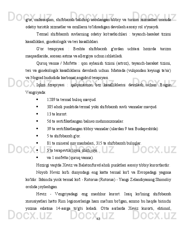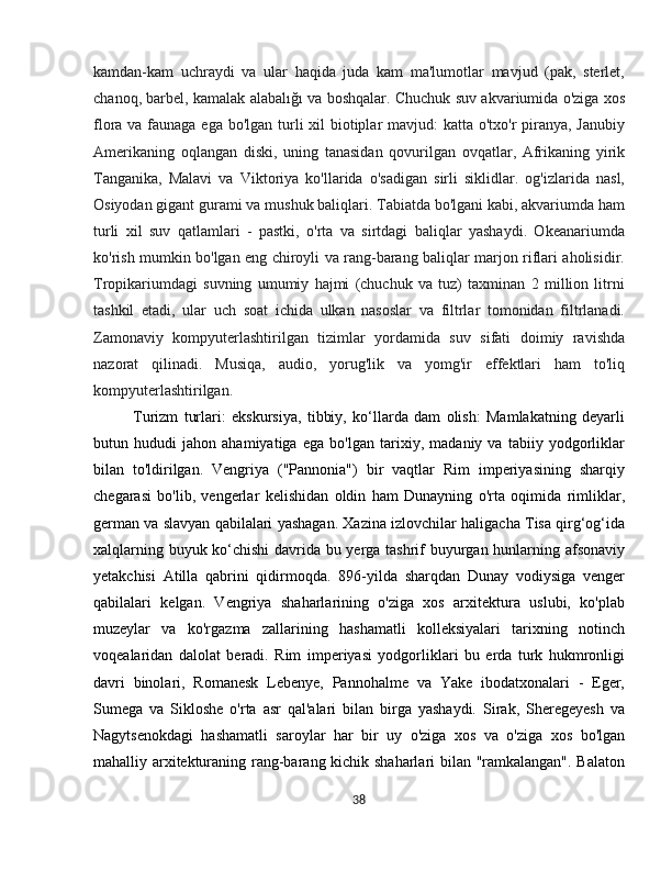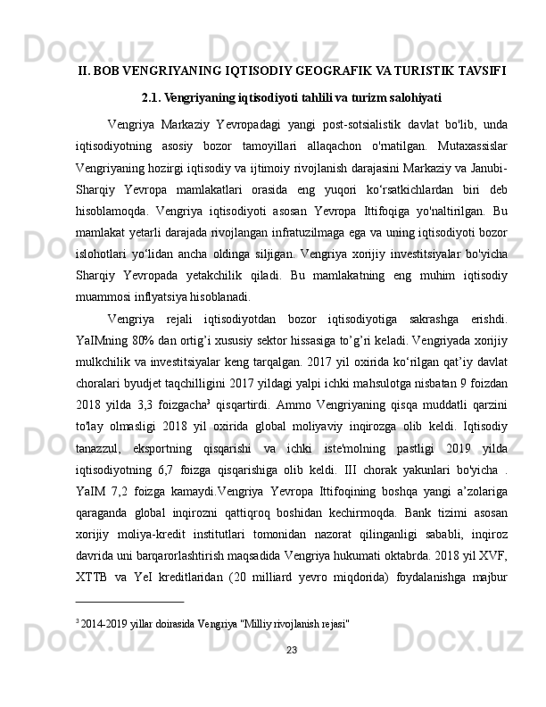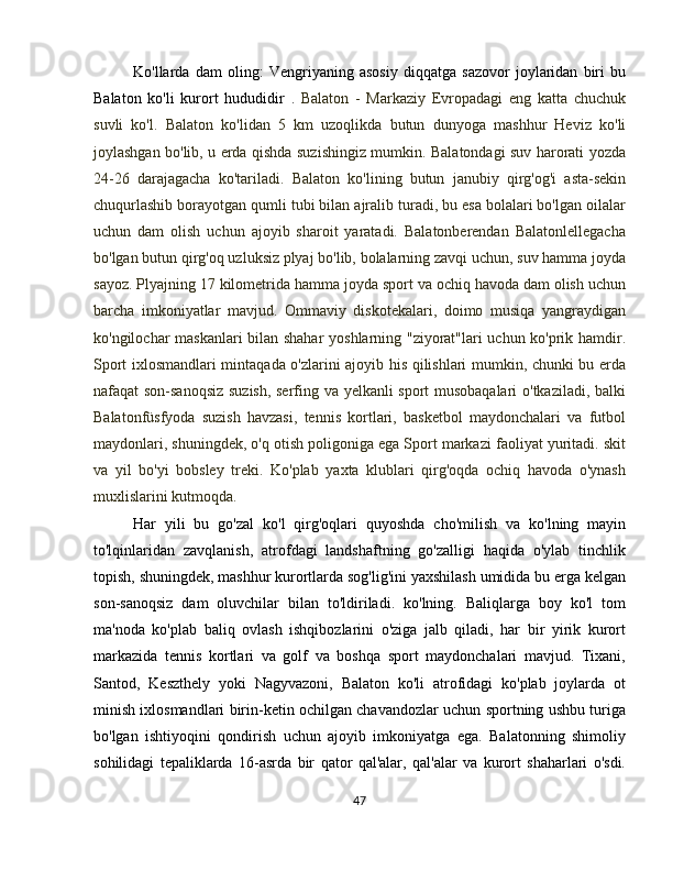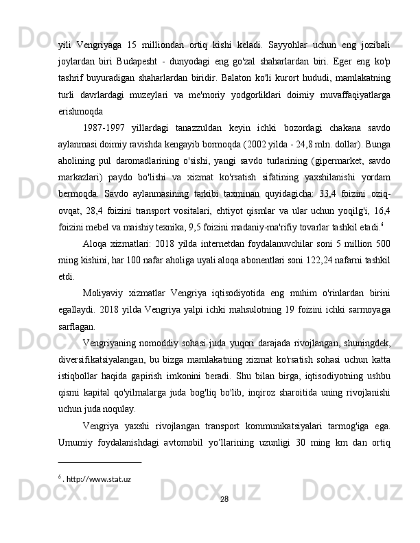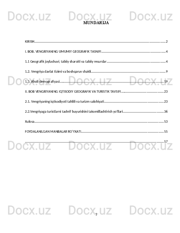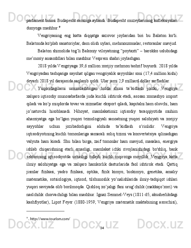 Xalqaro turizm fanidan Vengriya turizmi mavzusida kurs ishi