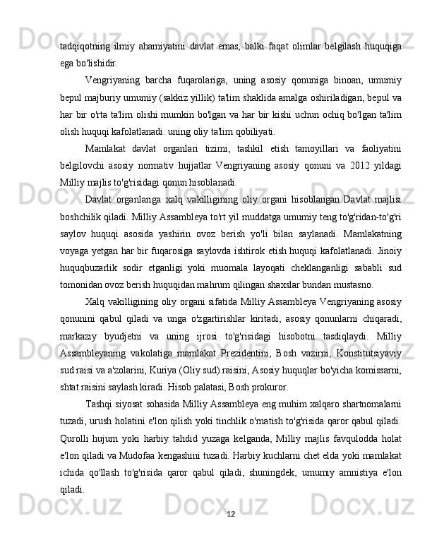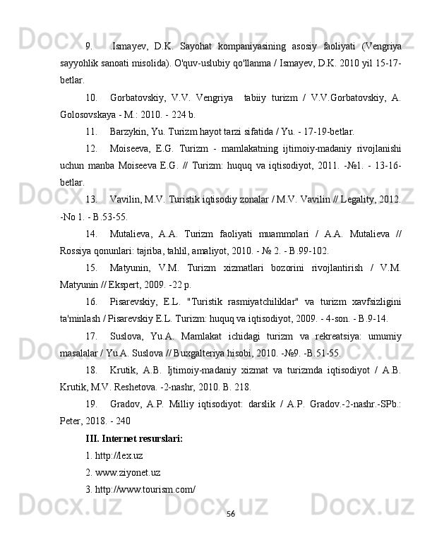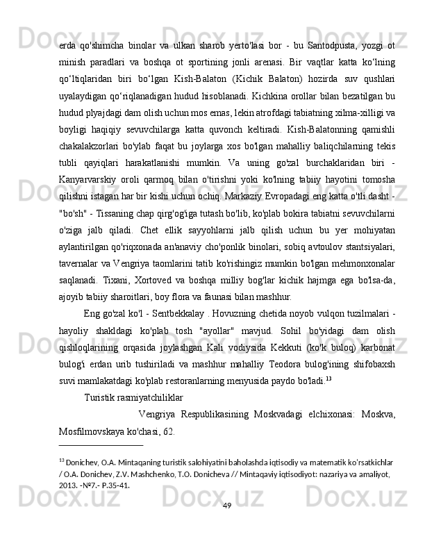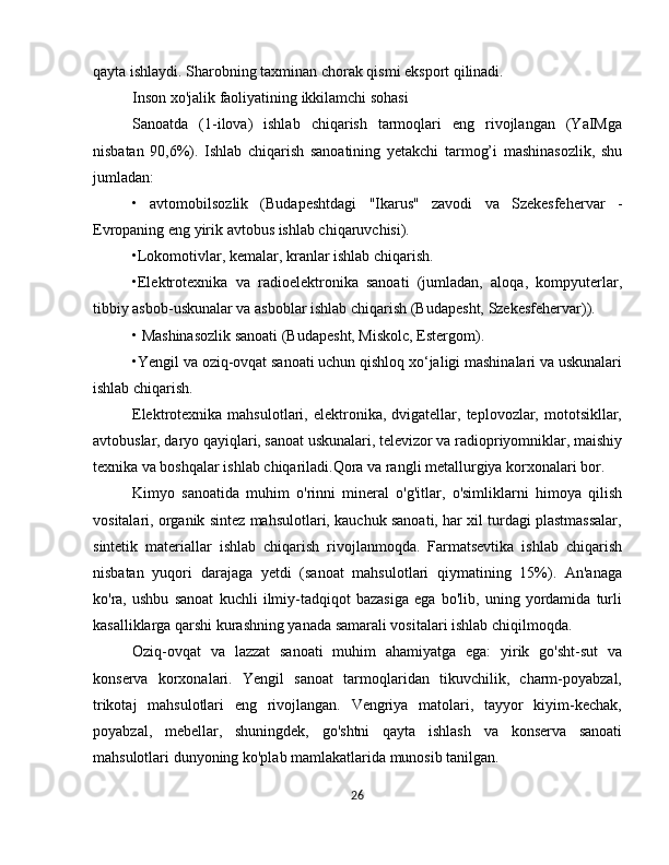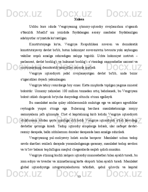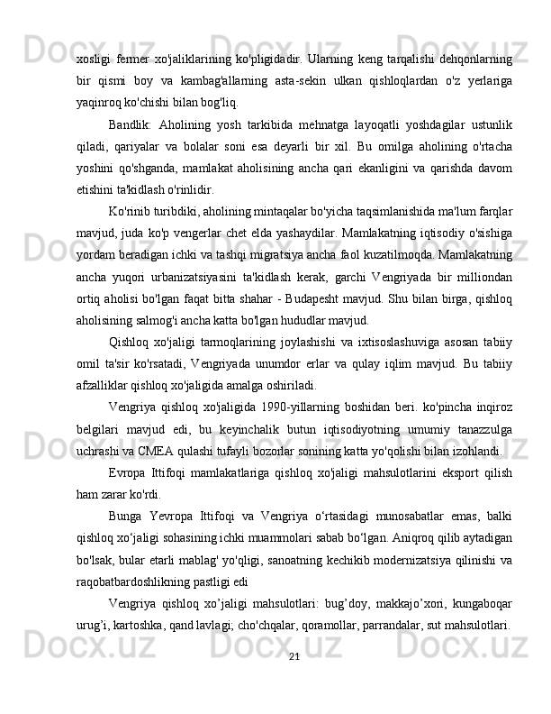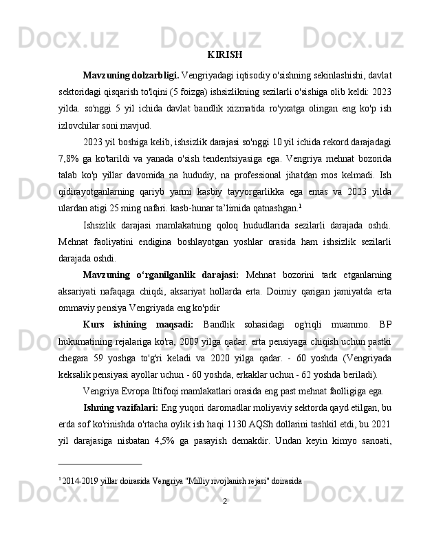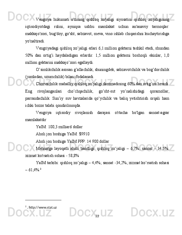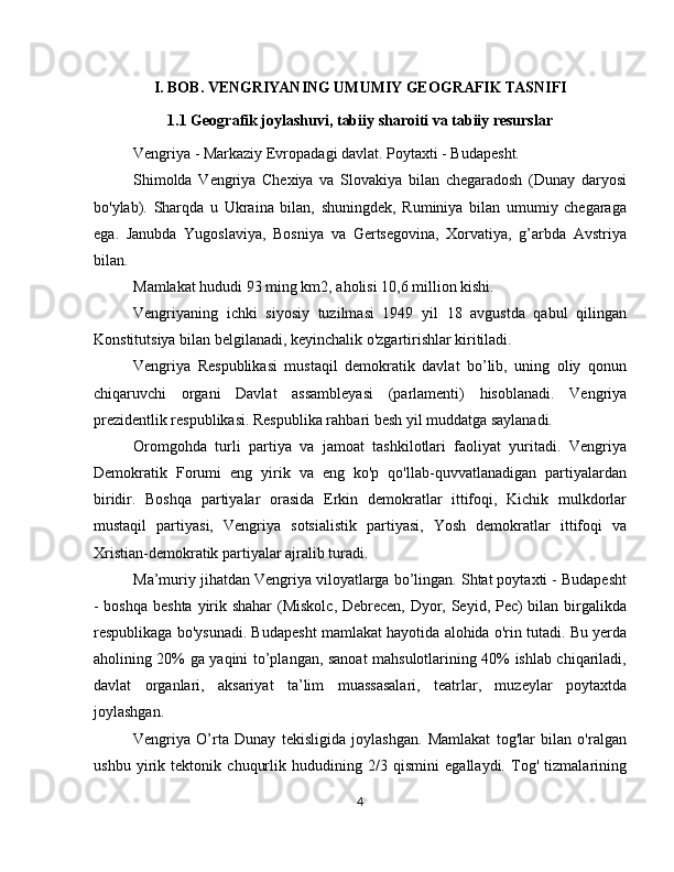 Xalqaro turizm fanidan Vengriya turizmi mavzusida kurs ishi