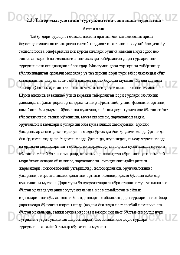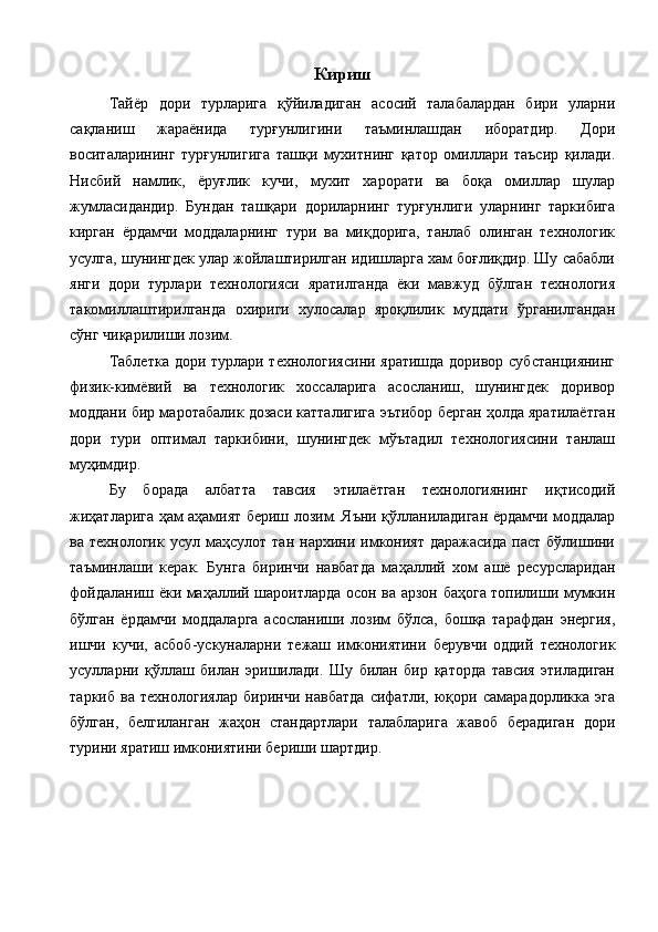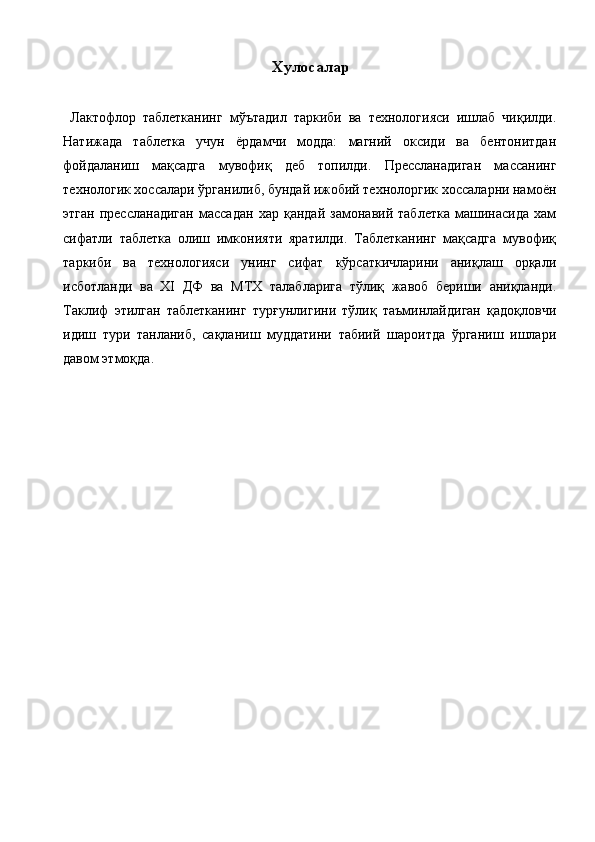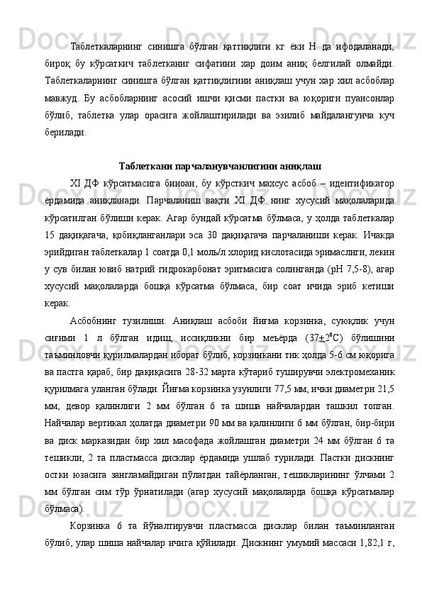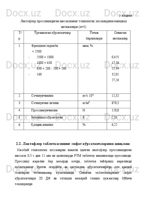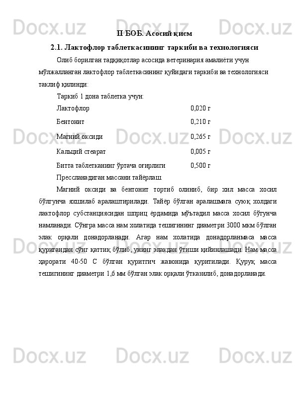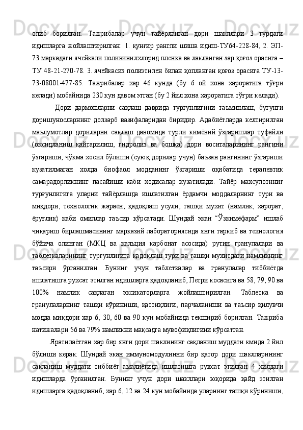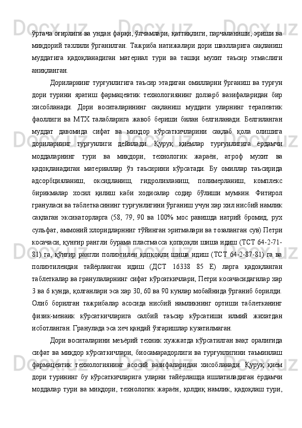 Ветеринария амалиёти учун лактофлор таблеткасининг сифатини ва турғунлигини белгилаш