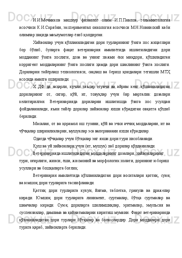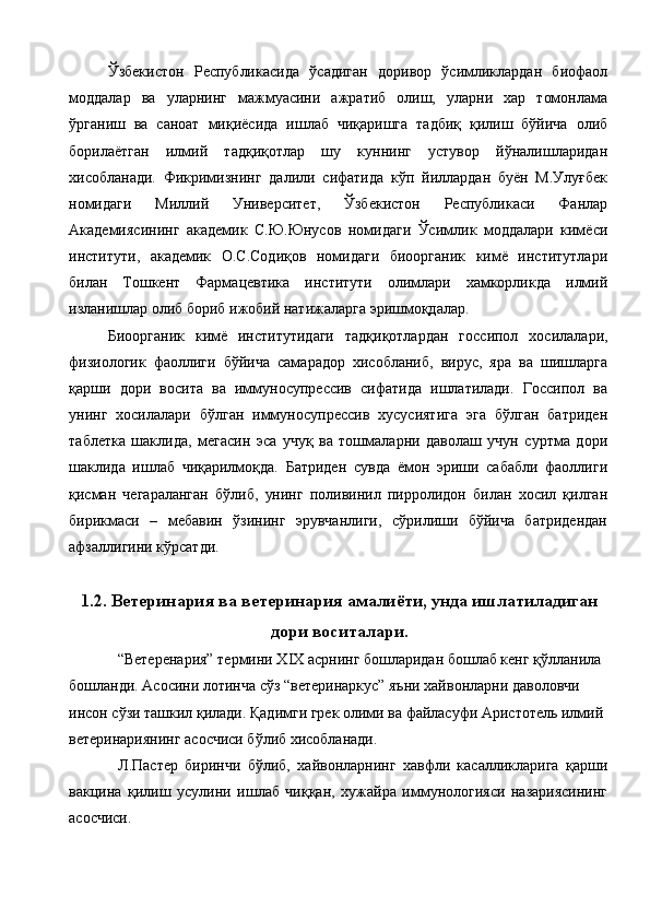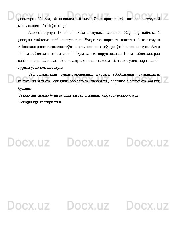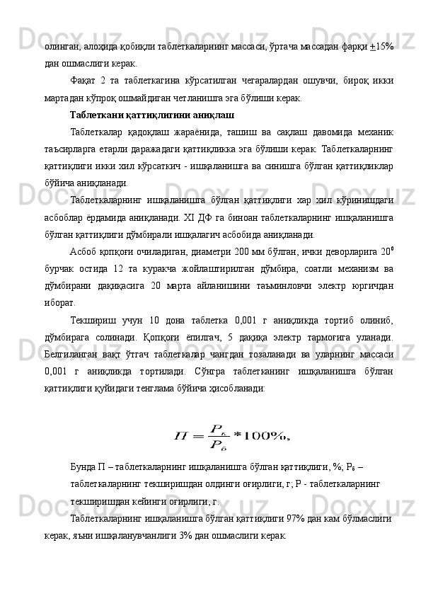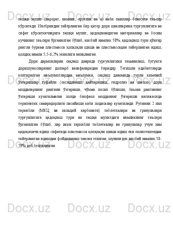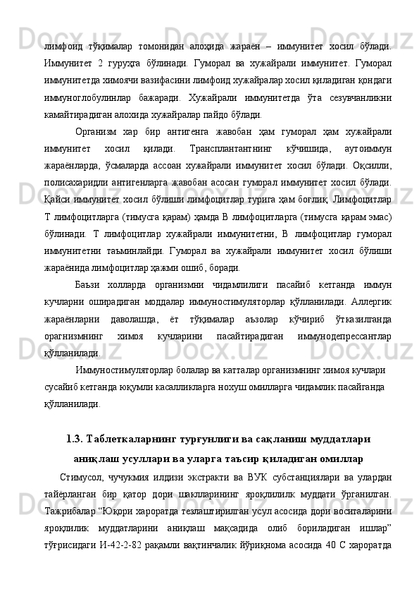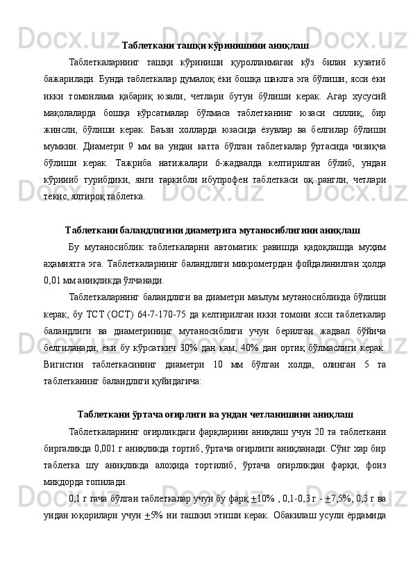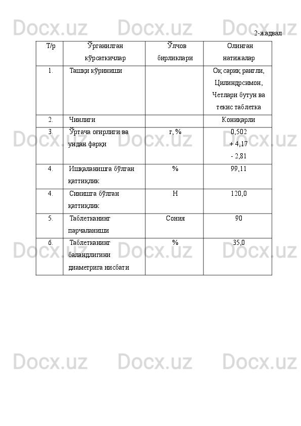 Ветеринария амалиёти учун лактофлор таблеткасининг сифатини ва турғунлигини белгилаш
