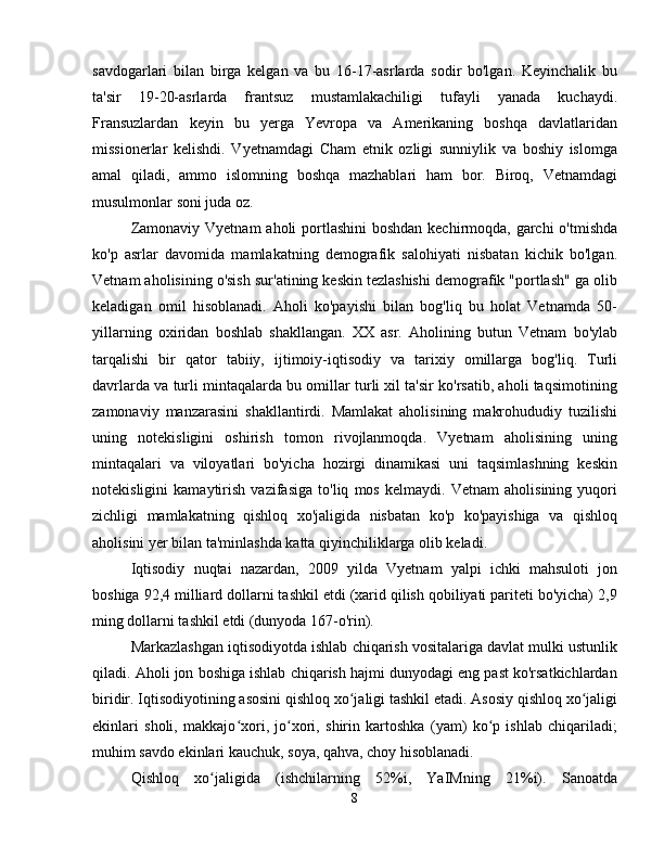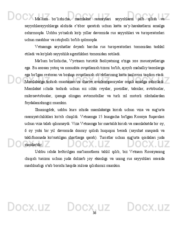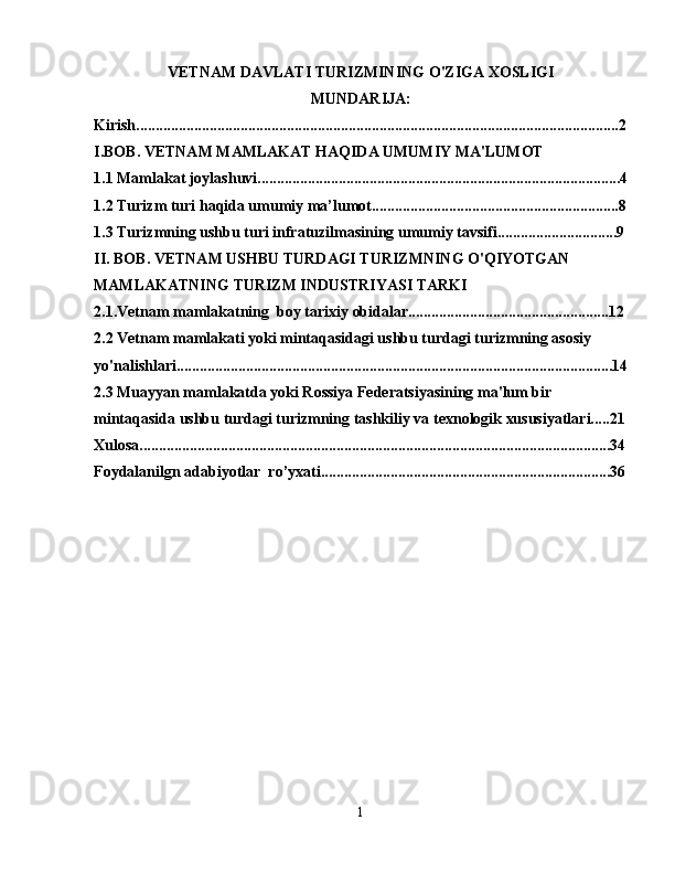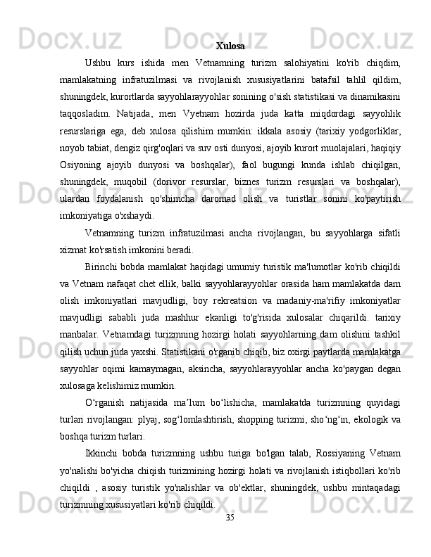 VETNAM DAVLATI TURIZMINING O'ZIGA XOSLIGI mavzusida kurs ishi