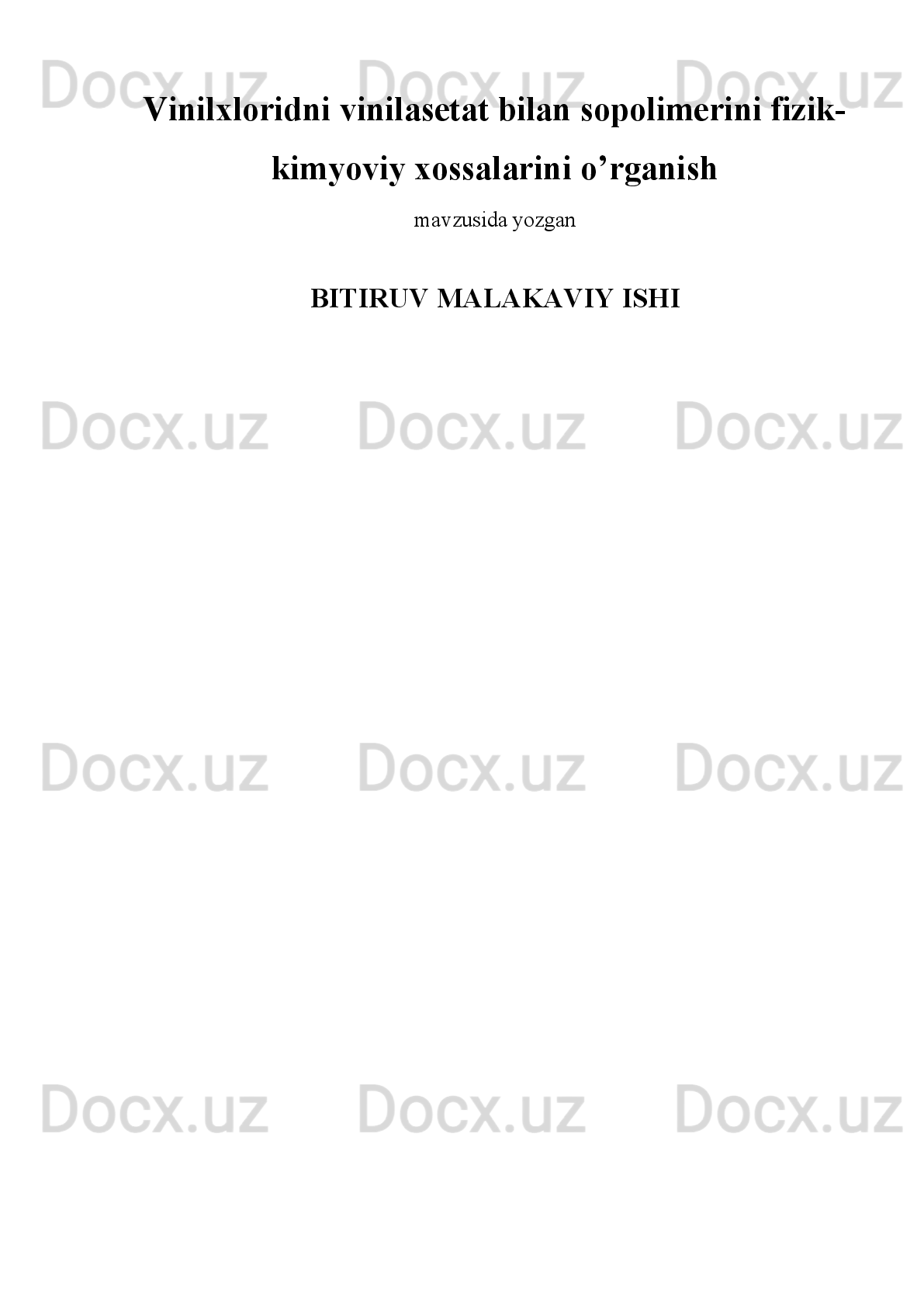 Vinilxloridni vinilasetat bilan sopolimerini fizik-kimyoviy xossalarini o'rganish