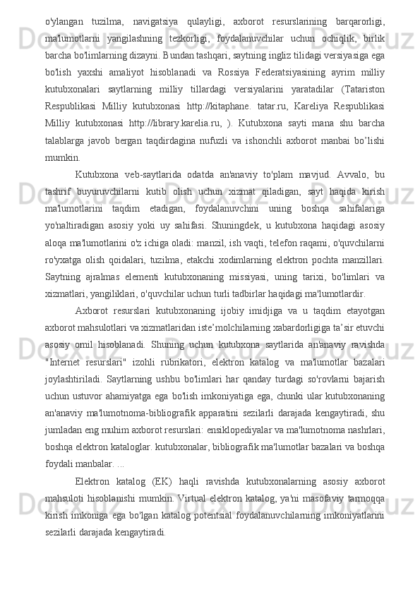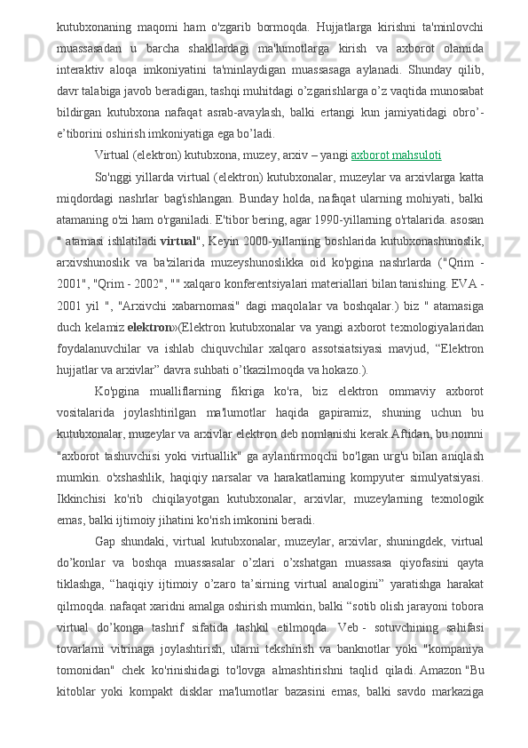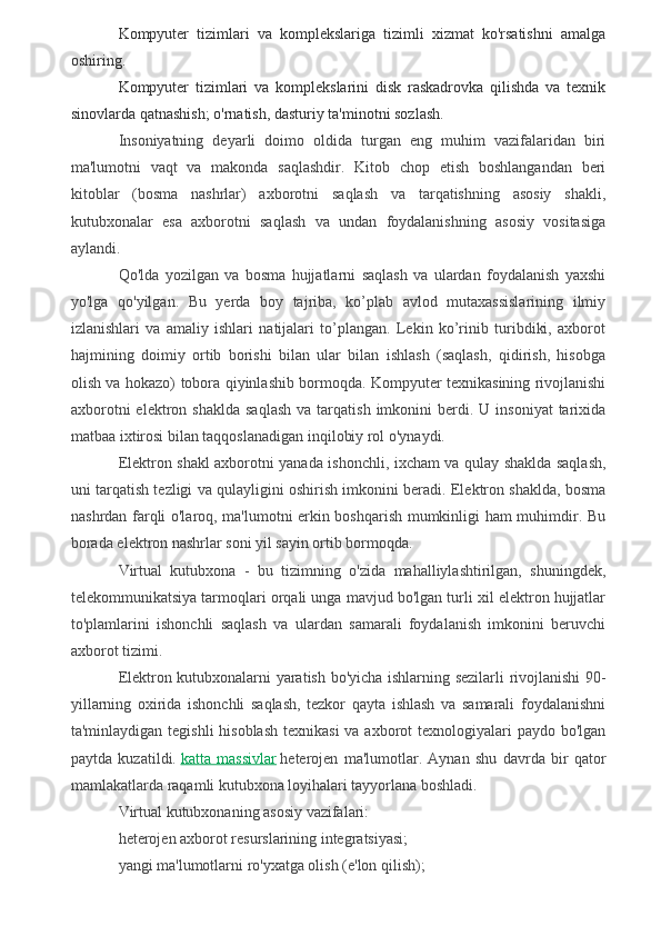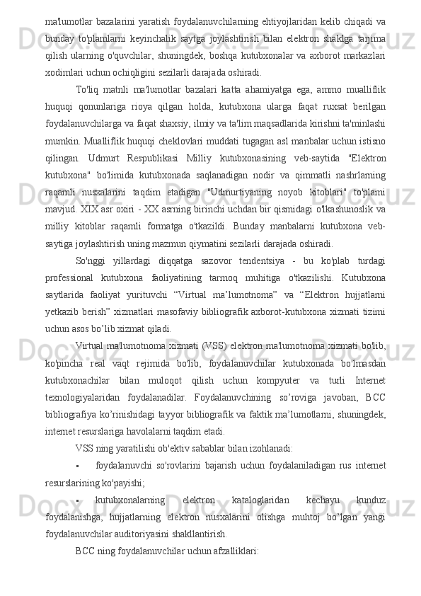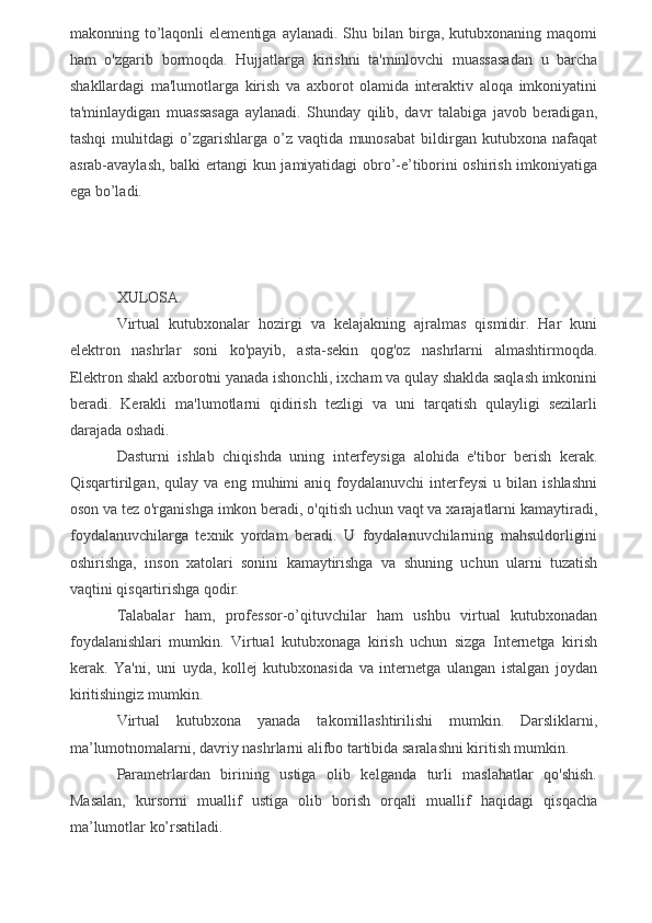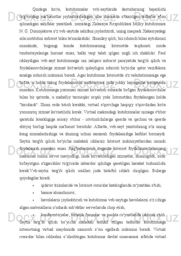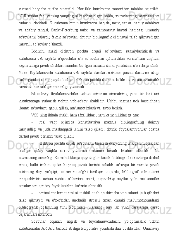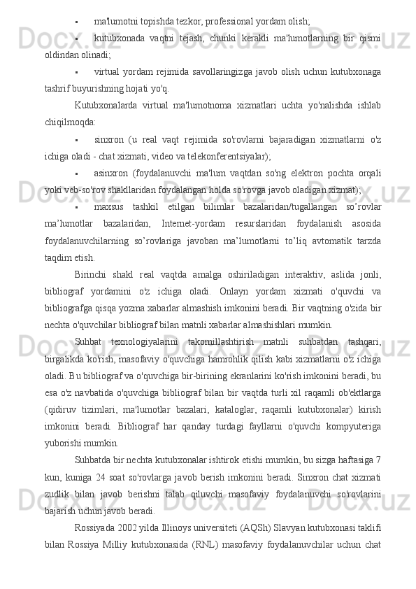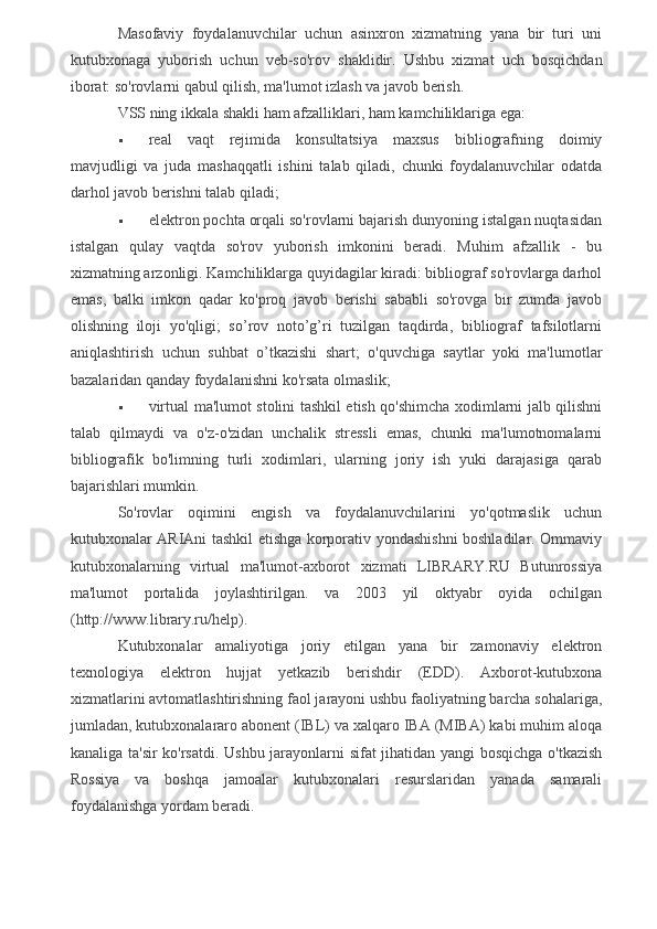 Virtual ma’lumot axborot xizmati ko’rsatishning o’ziga xos xususiyatlari