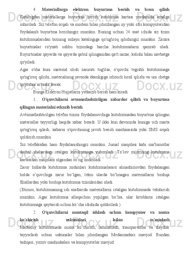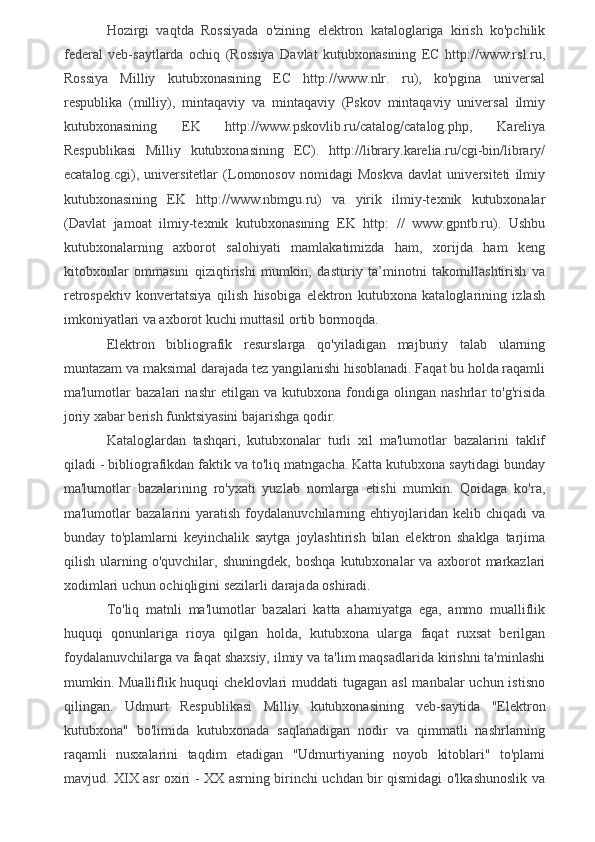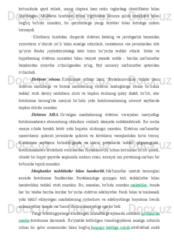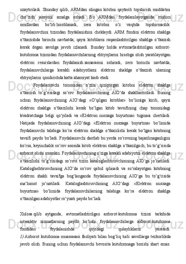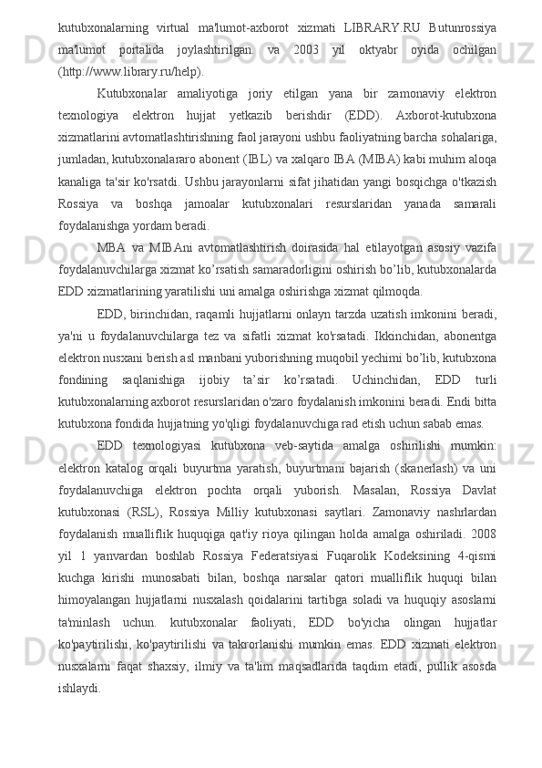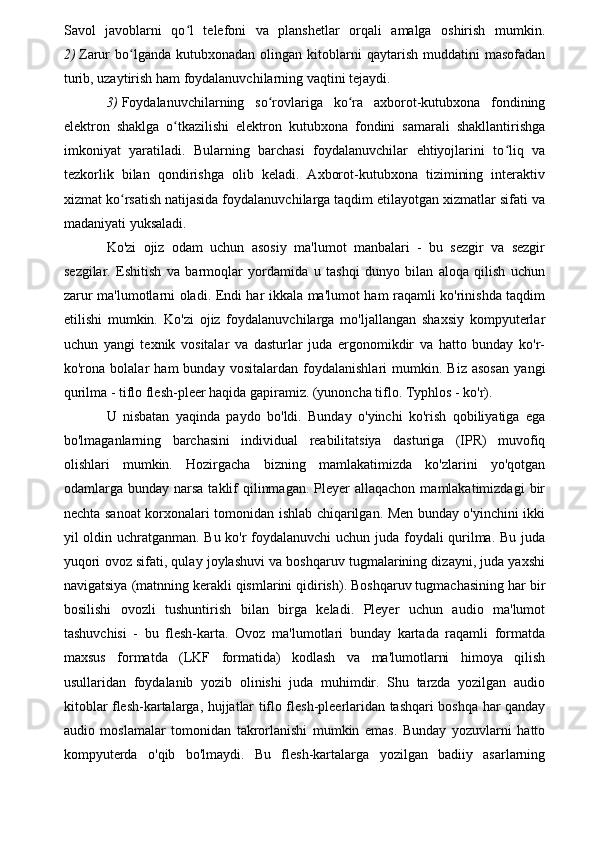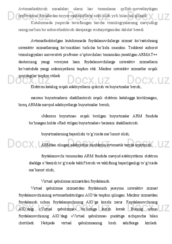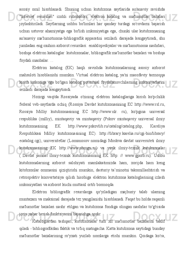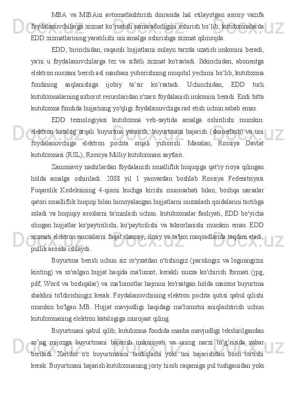 Virtual ma’lumot axborot xizmati ko’rsatishning o’ziga xos xususiyatlari