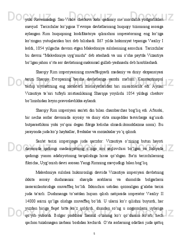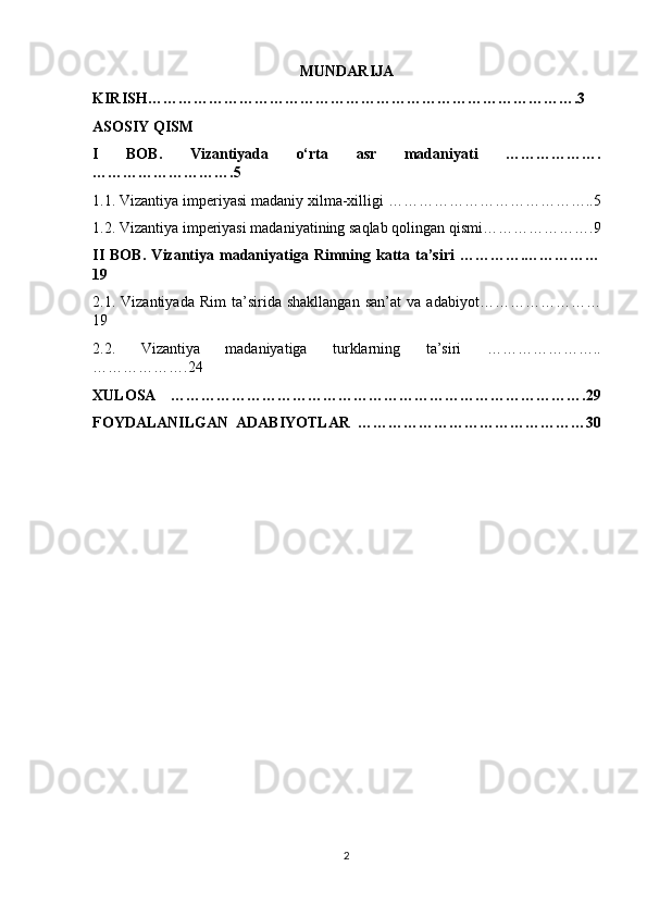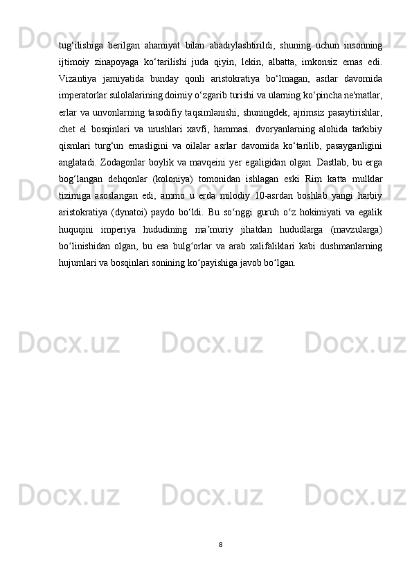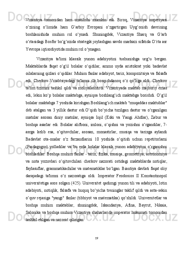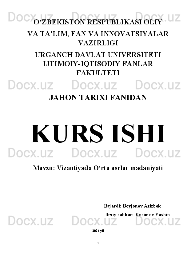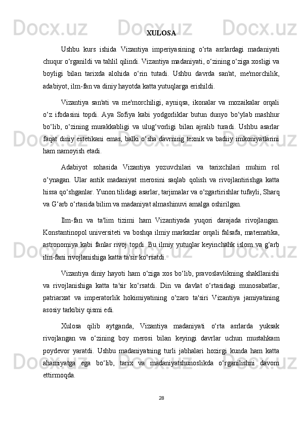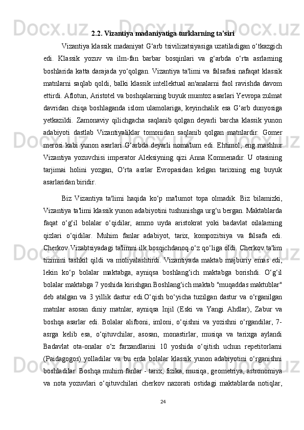 Vizantiyaning o'rta asr madaniyati mavzusidagi tayyor kurs ishi