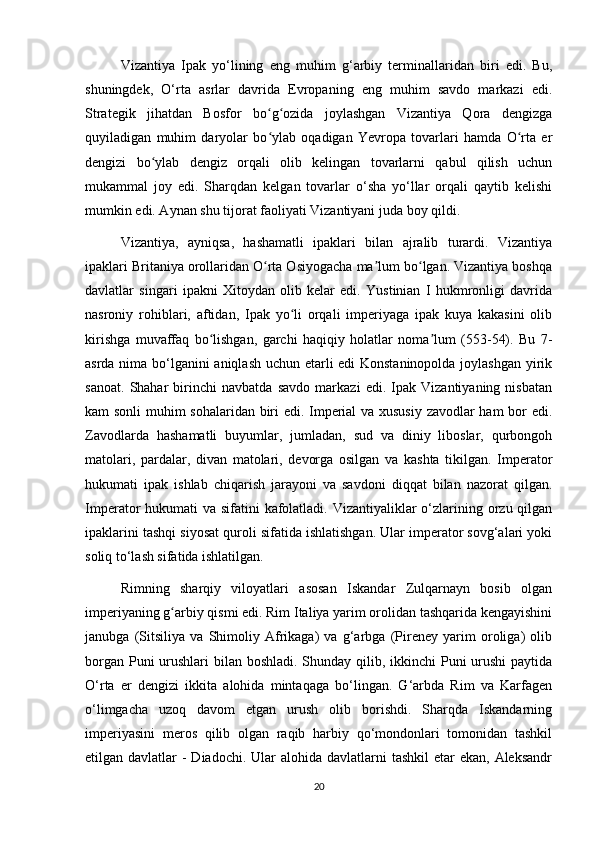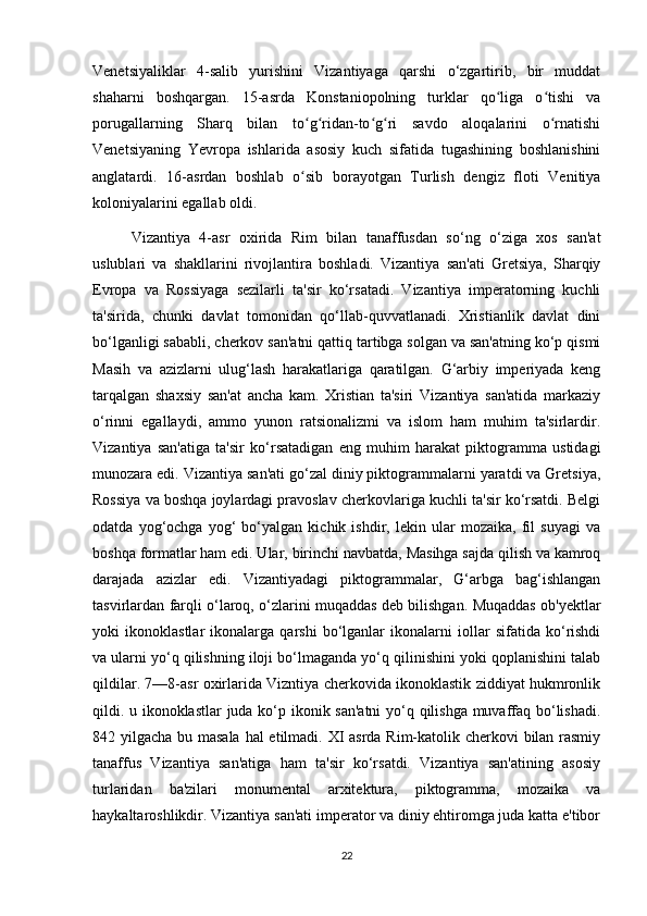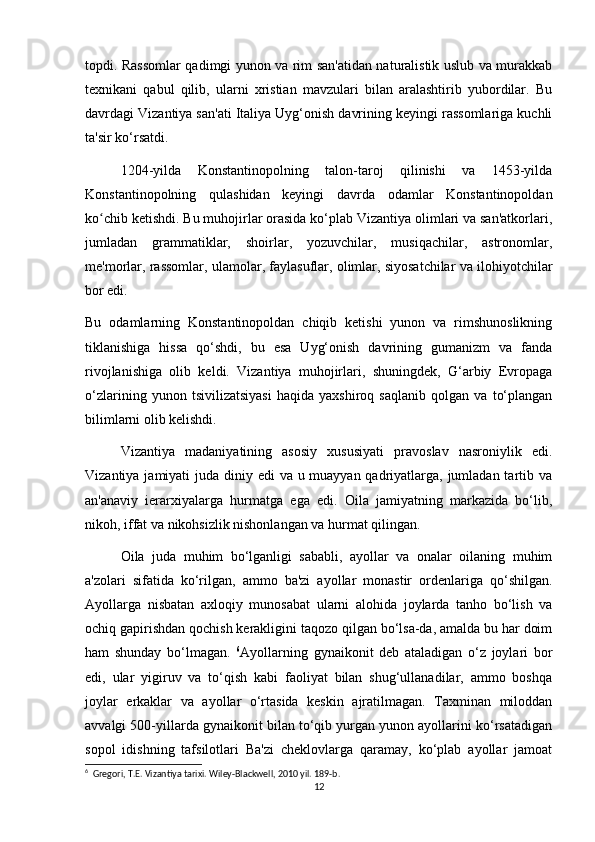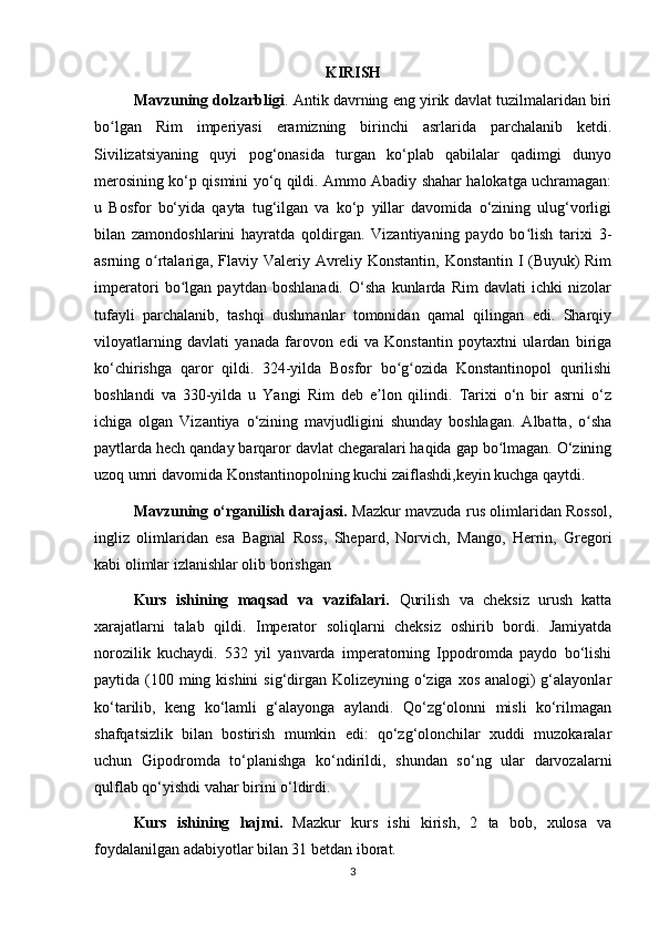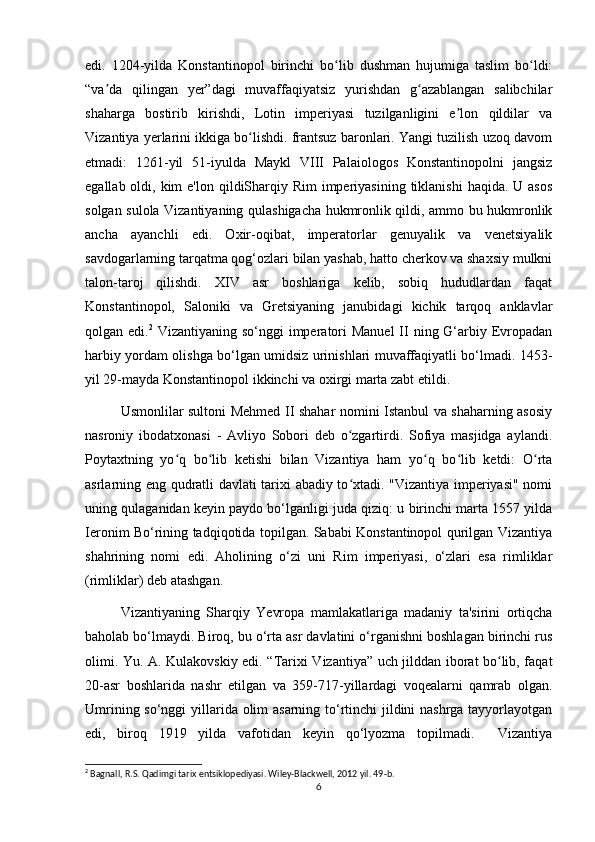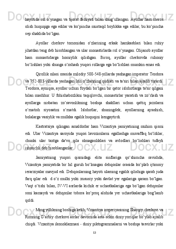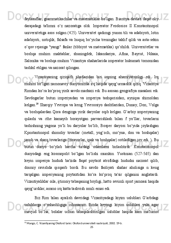 Vizantiyaning o'rta asr madaniyati mavzusidagi tayyor kurs ishi
