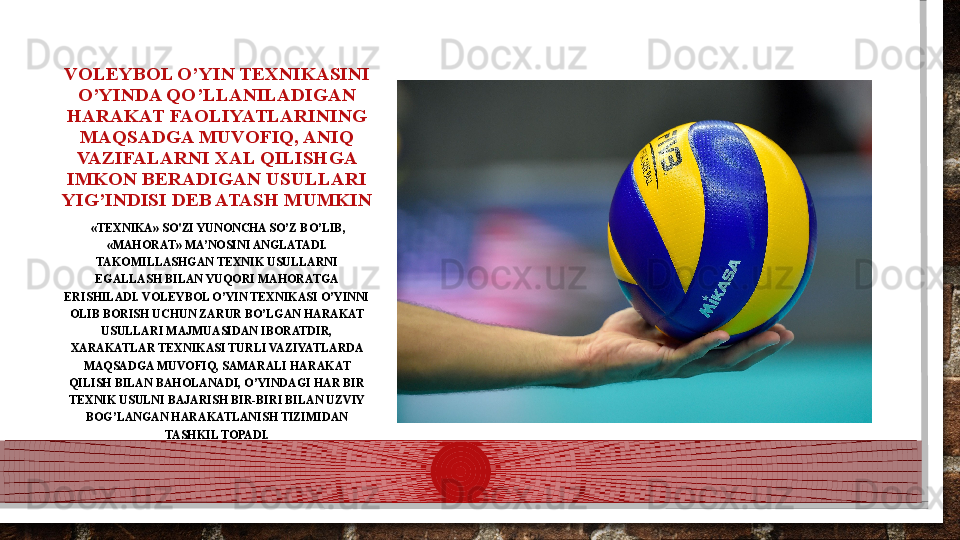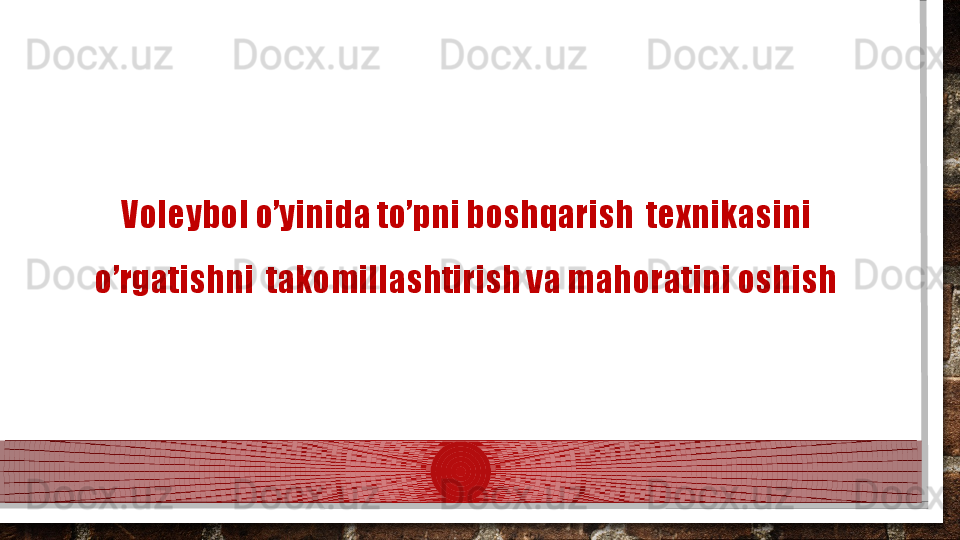 Voleybol o’yinida to’pni boshqarish texnikasini o’rgatishni takomillashtirish va mahoratini oshish