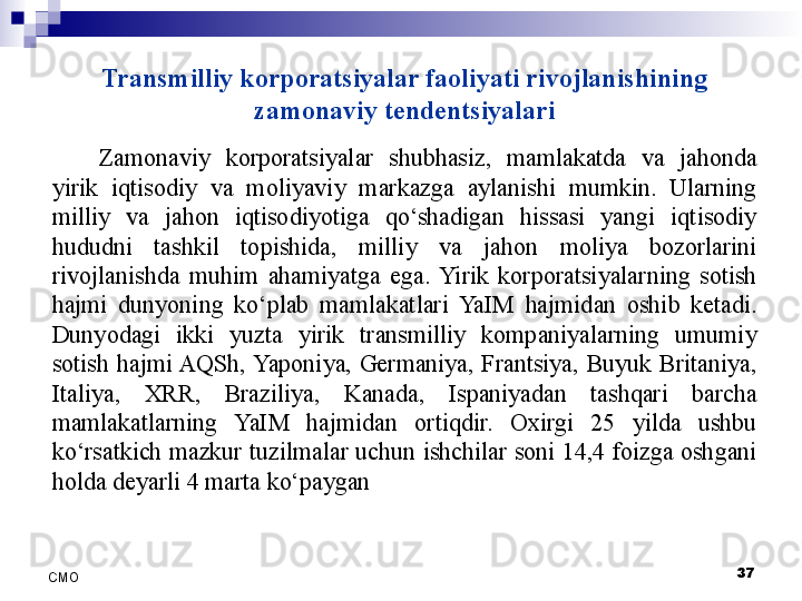 Xalqaro korporatsiyalar xalqaro moliya tizimining sub’ekti sifatida