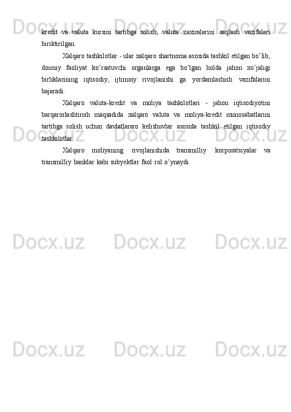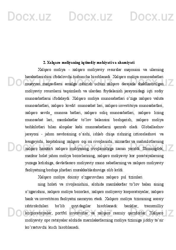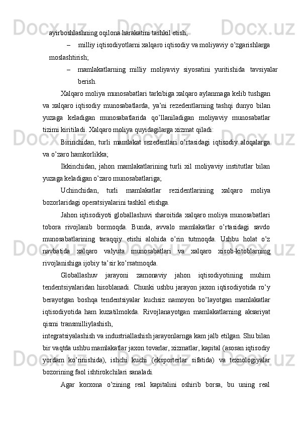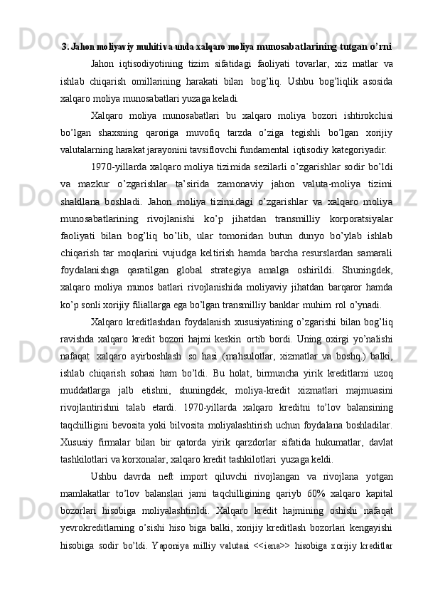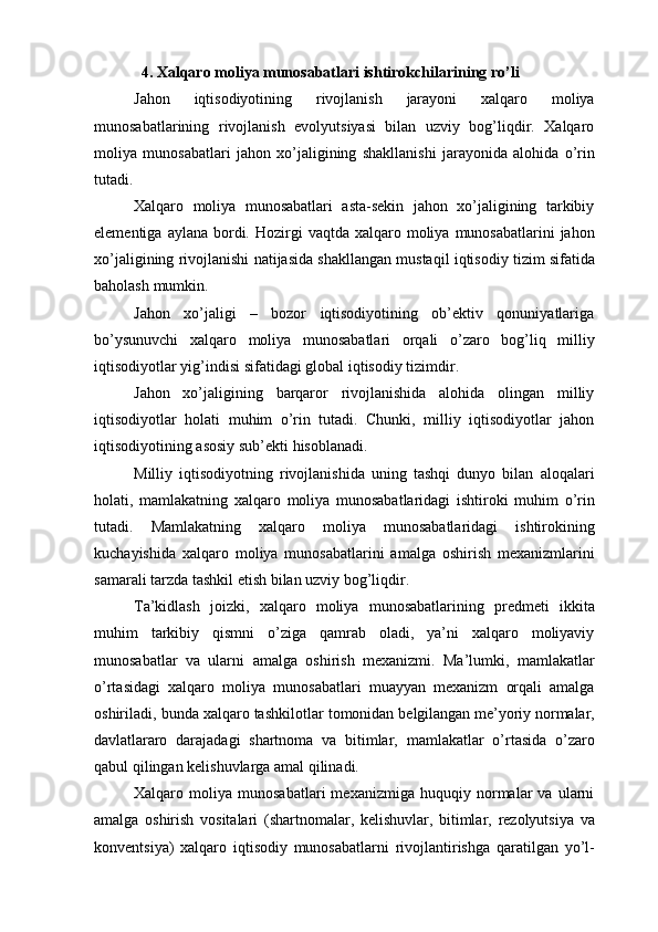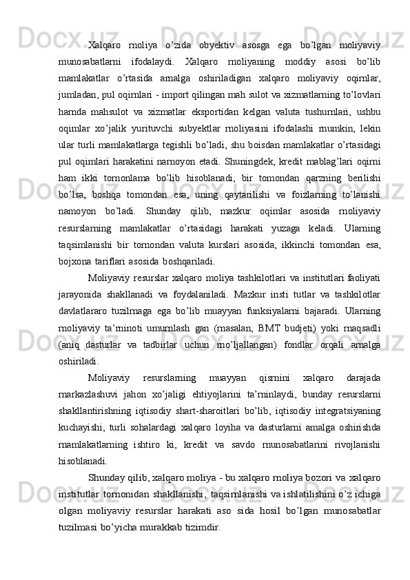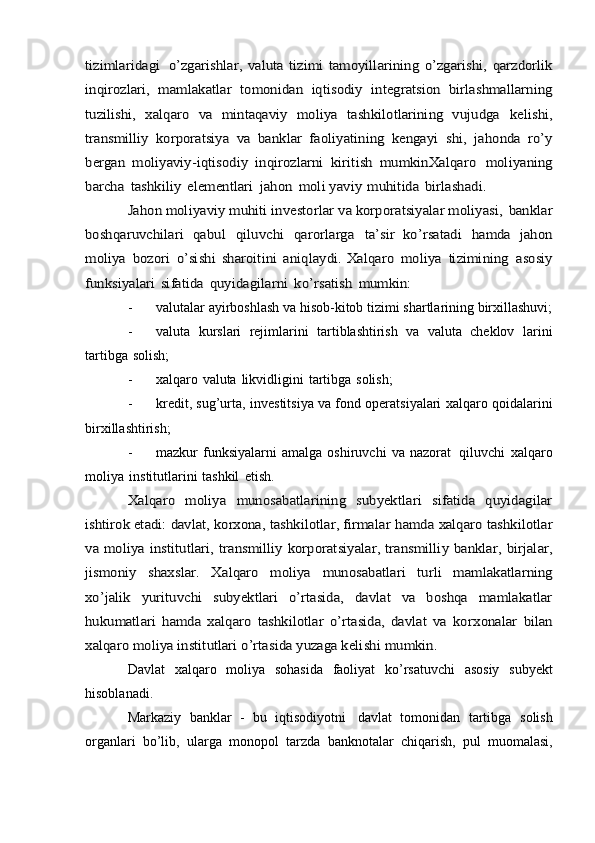 Xalqaro moliya munosabatlari ishtirokchilarining roli