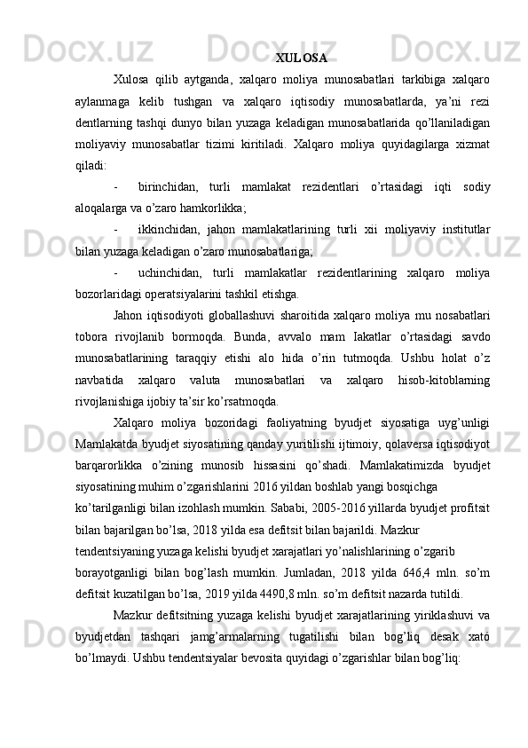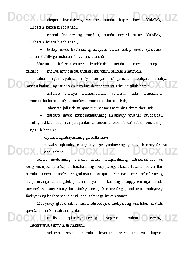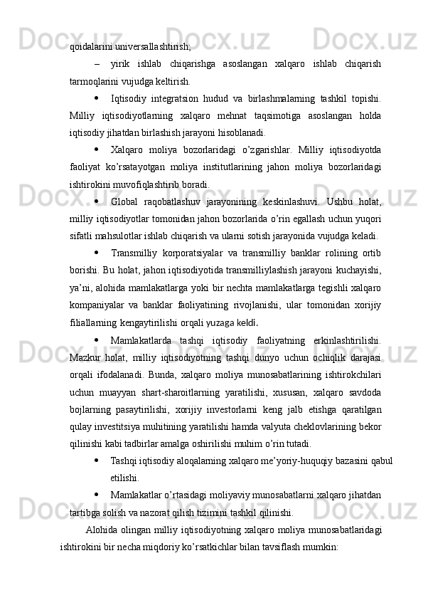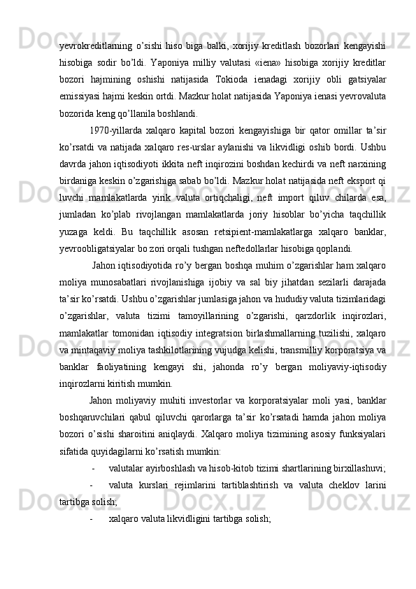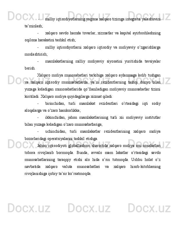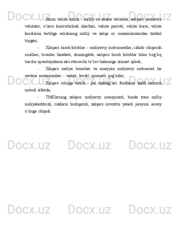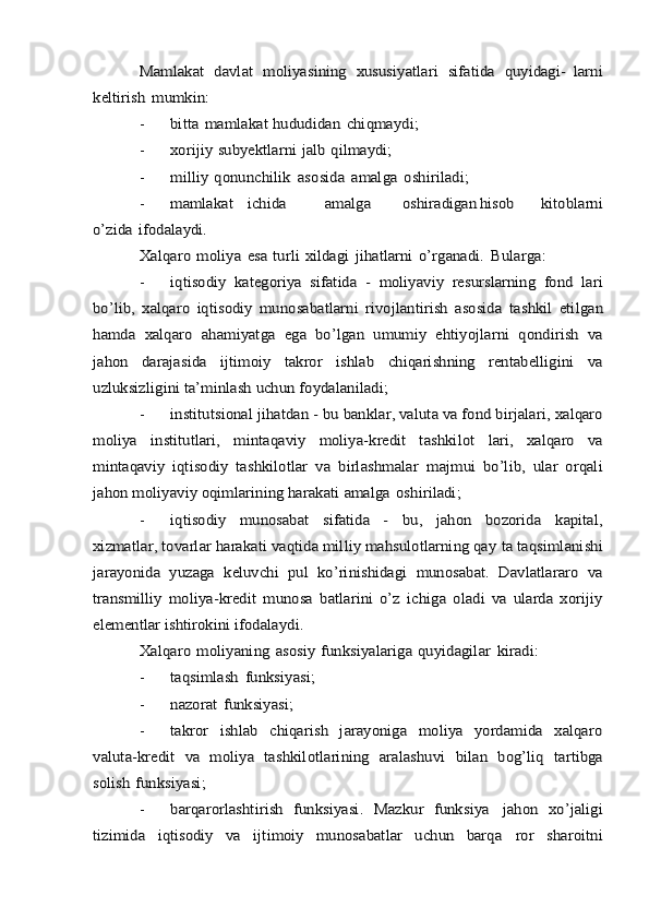 Xalqaro moliya munosabatlari ishtirokchilarining roli