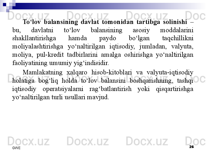 Xalqaro moliya munosabatlarida to‘lov balansini boshqarish