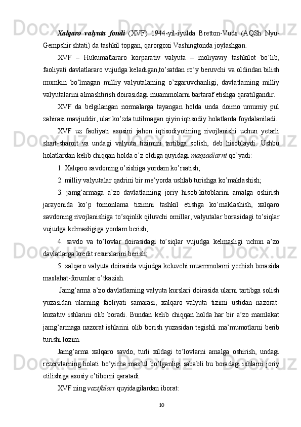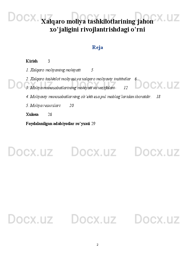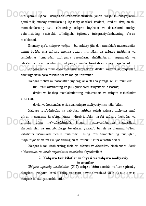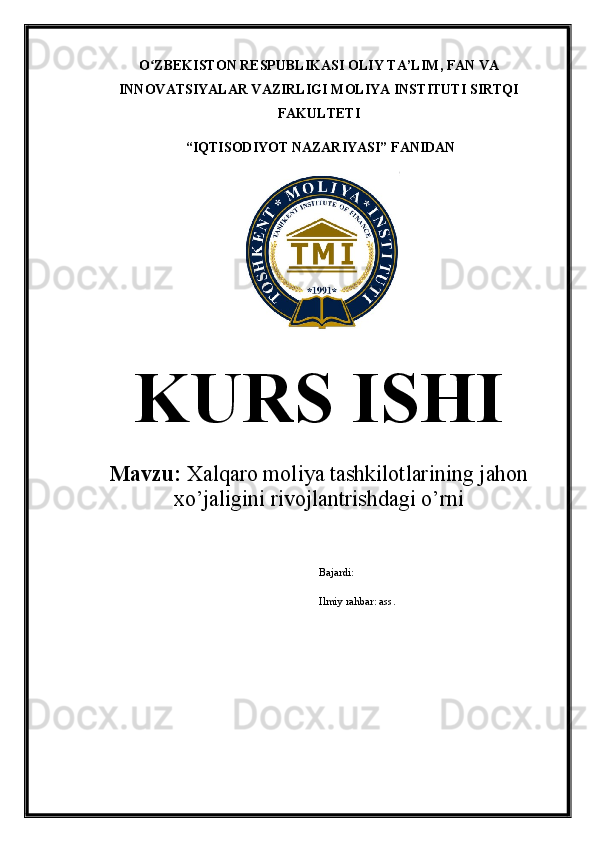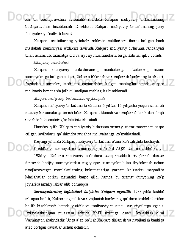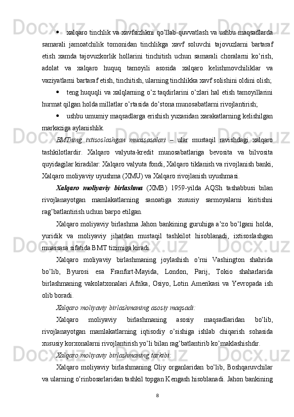 Xalqaro moliya tashkilotlarining jahon xo’jaligini rivojlantrishdagi o’rni