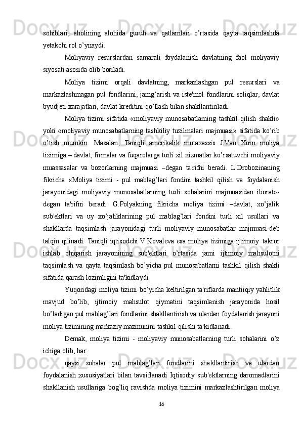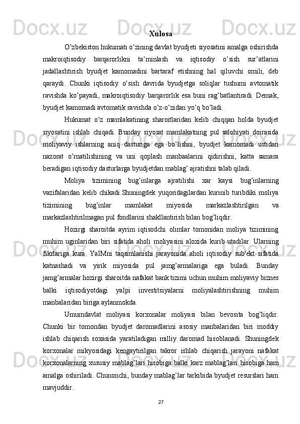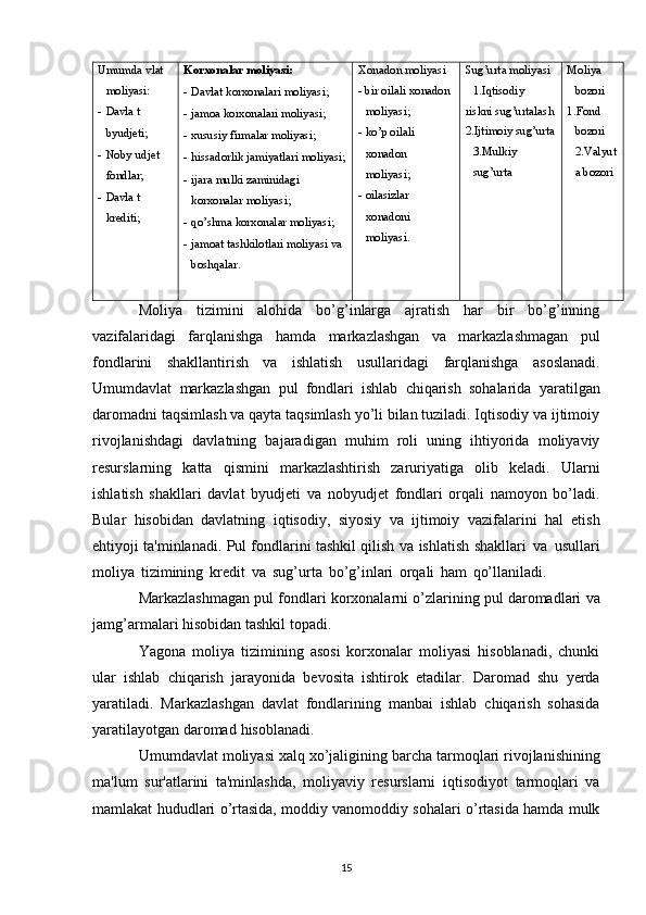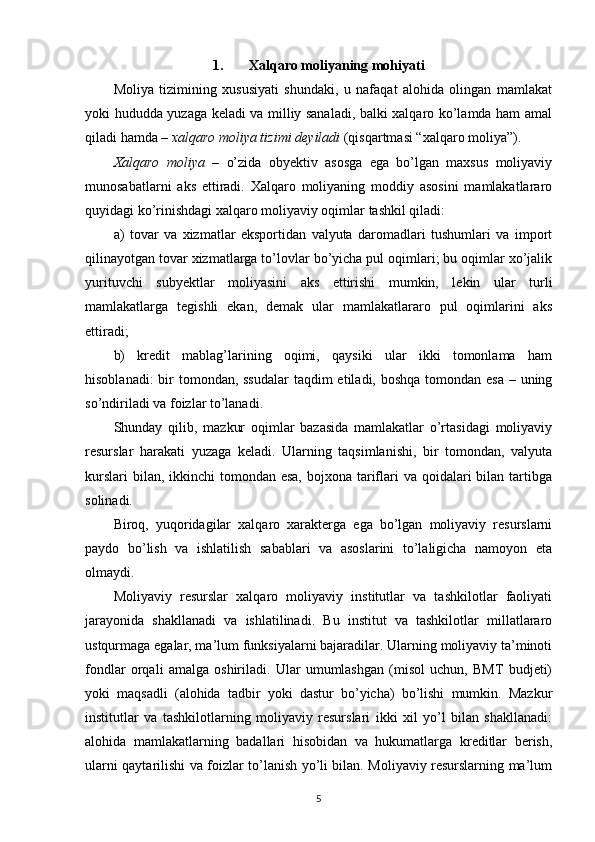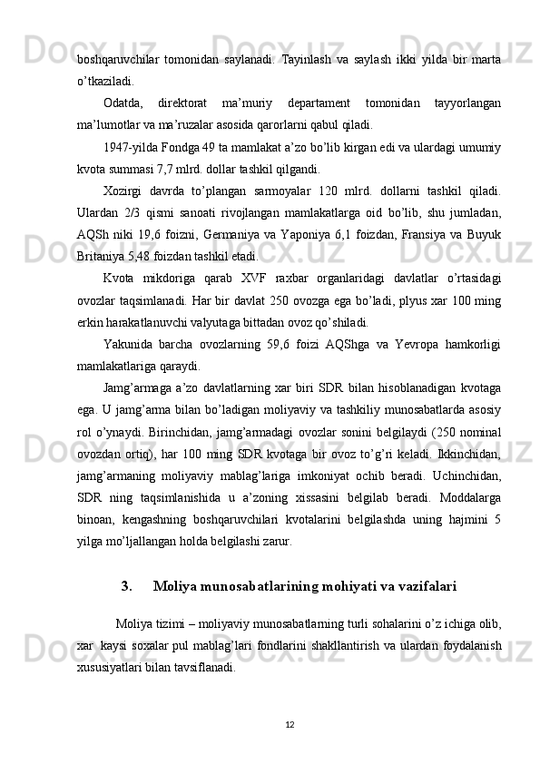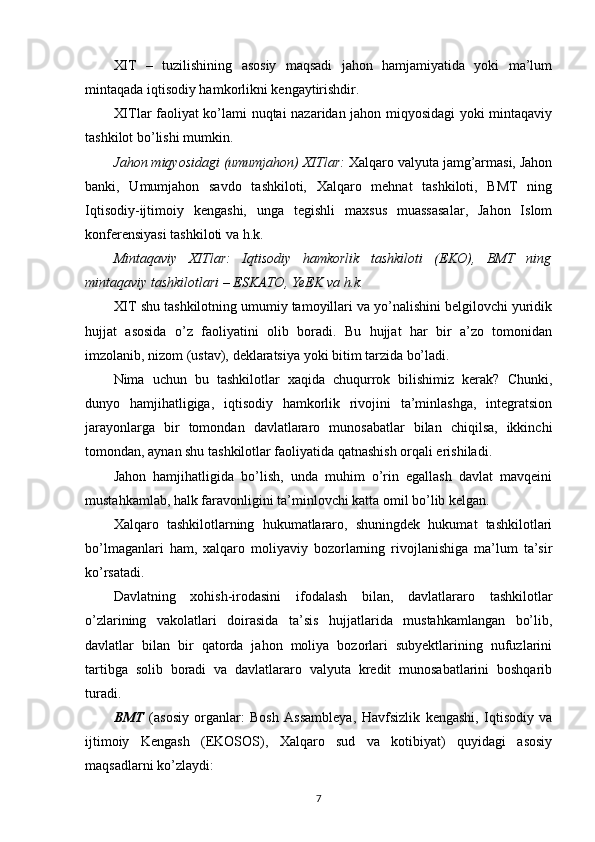 Xalqaro moliya tashkilotlarining jahon xo’jaligini rivojlantrishdagi o’rni
