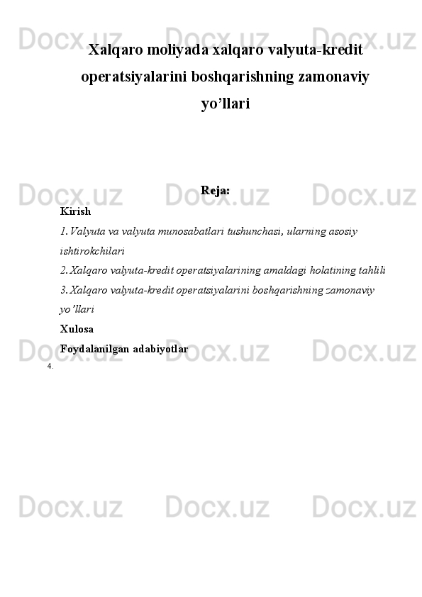 Xalqaro moliyada xalqaro valyuta-kredit operatsiyalarini boshqarishning zamonaviy yo’llari