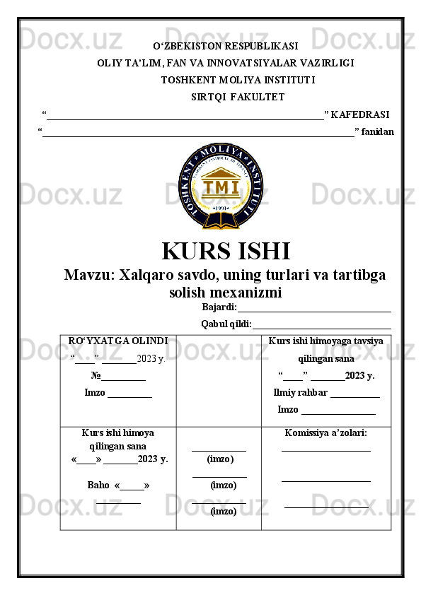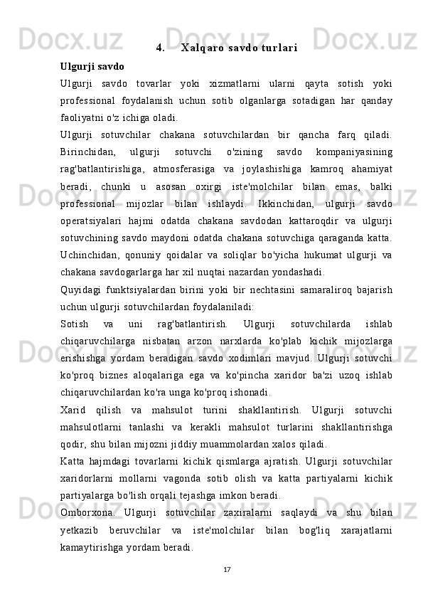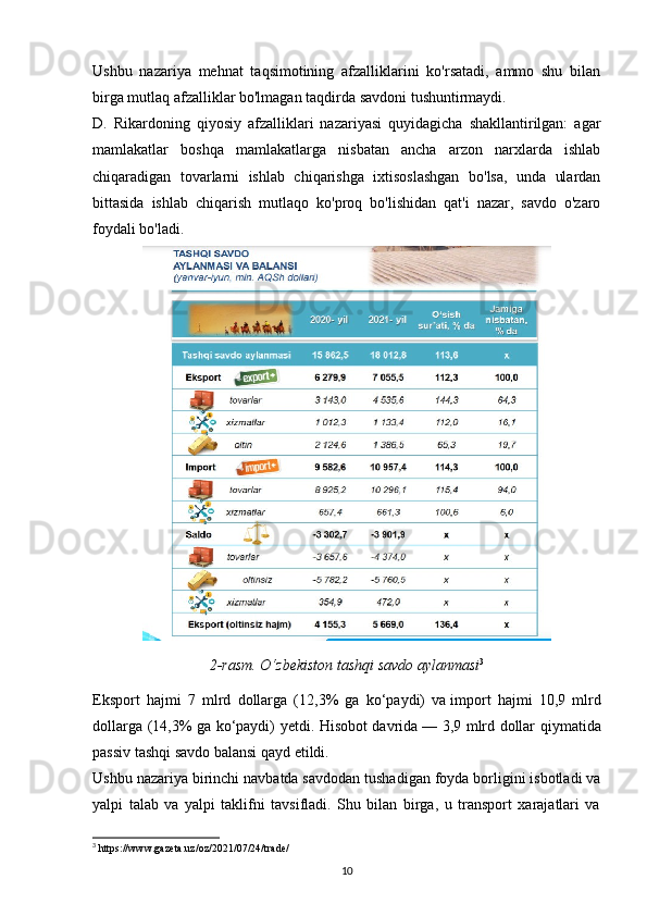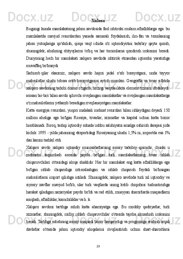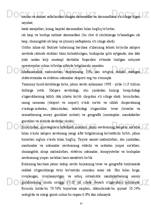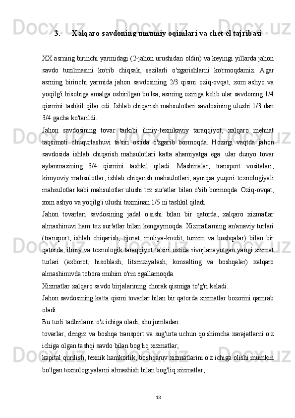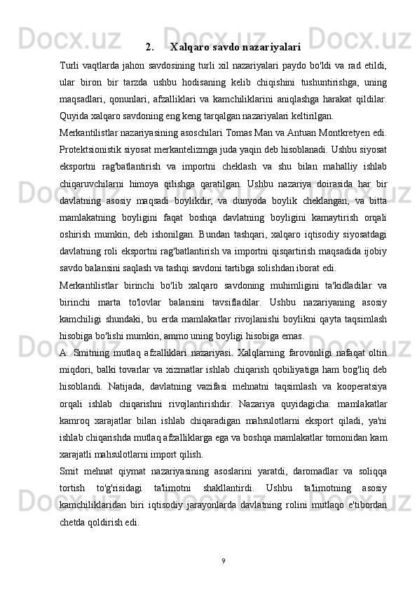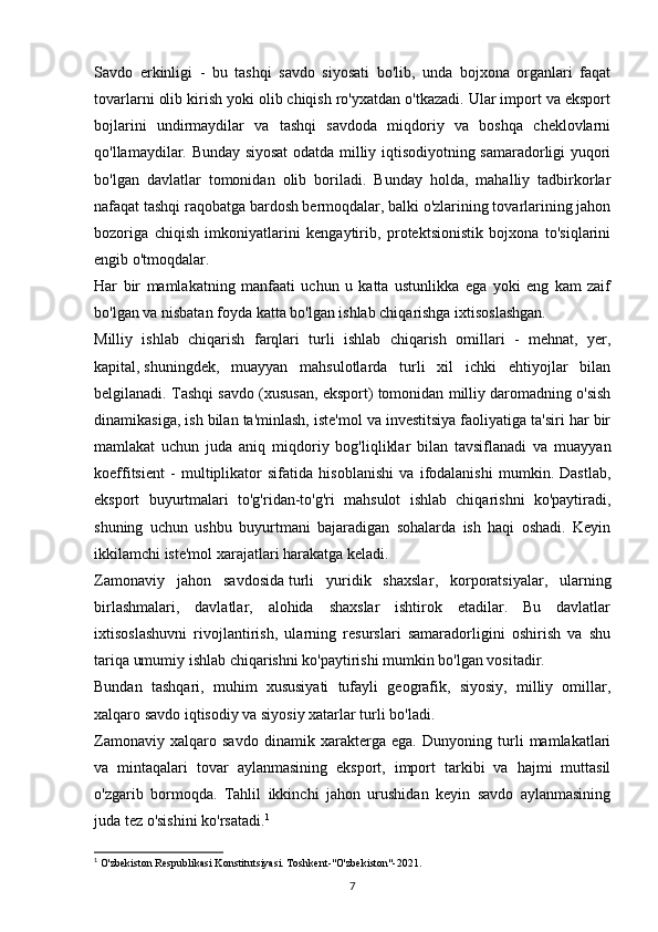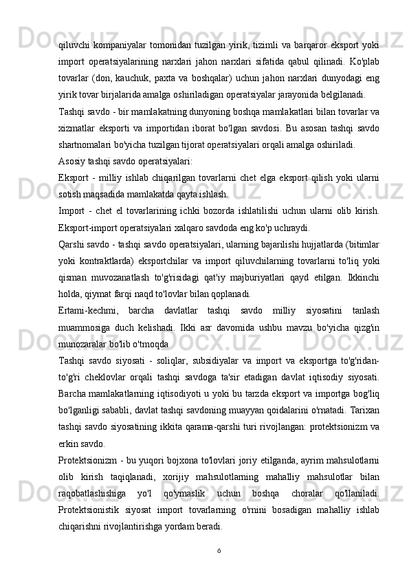 Xalqaro savdo, uning turlari va tartibga solish mexanizmi