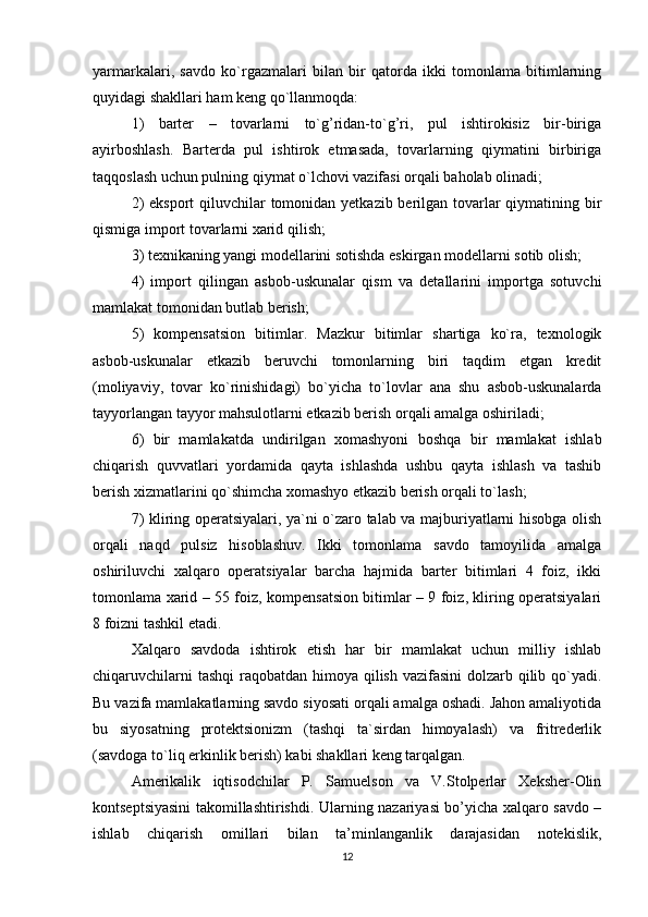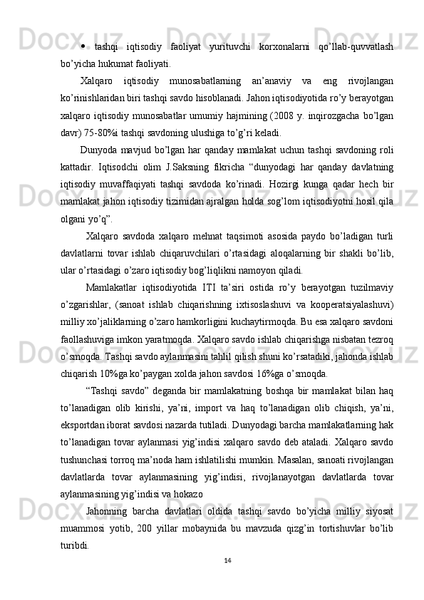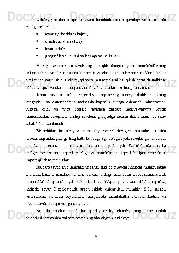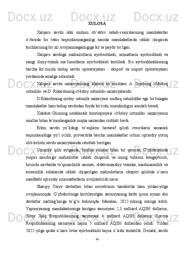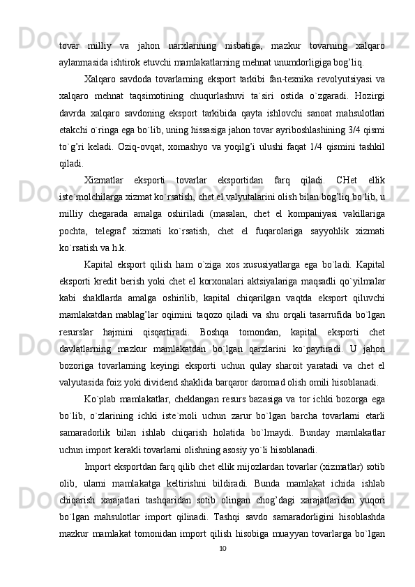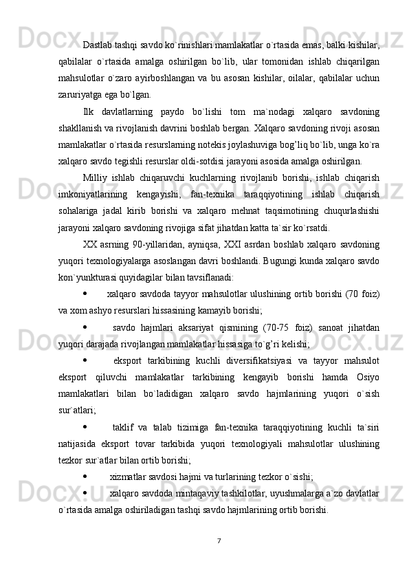 Xalqaro savdoning zarurligi. Xalqaro savdo xalqaro iqtisodiy munosabatlarning eng muhim elementi