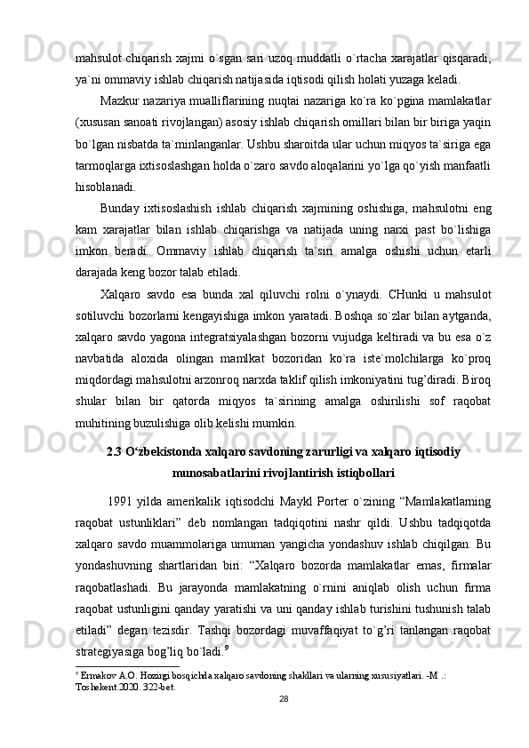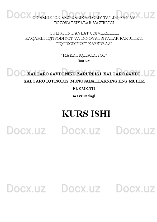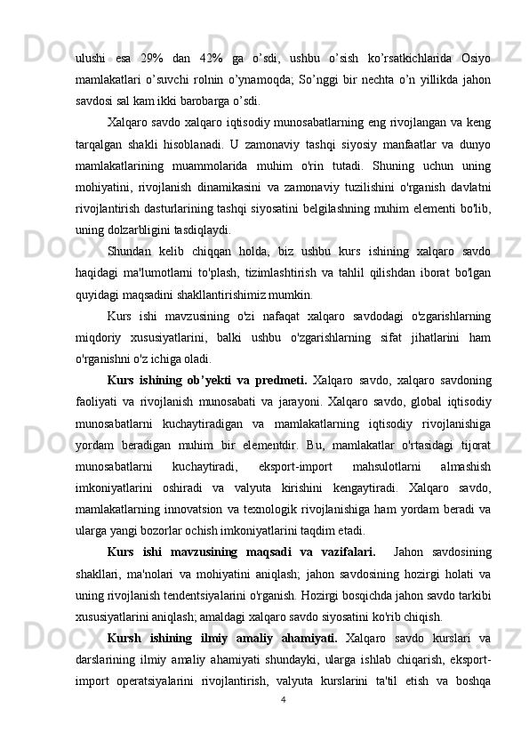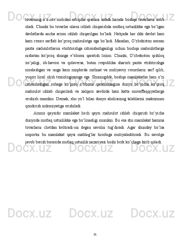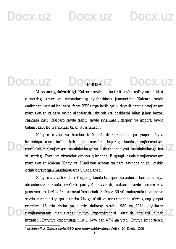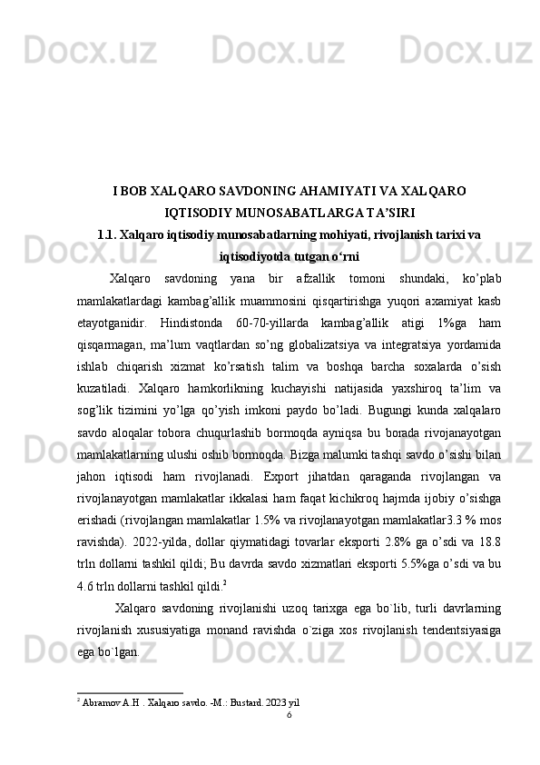 Xalqaro savdoning zarurligi. Xalqaro savdo xalqaro iqtisodiy munosabatlarning eng muhim elementi