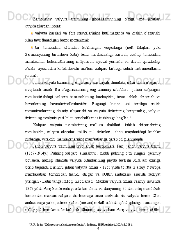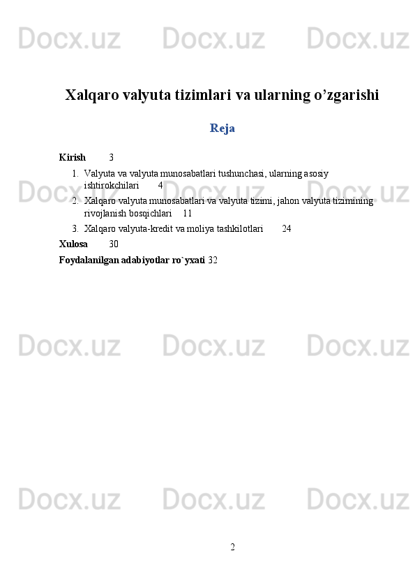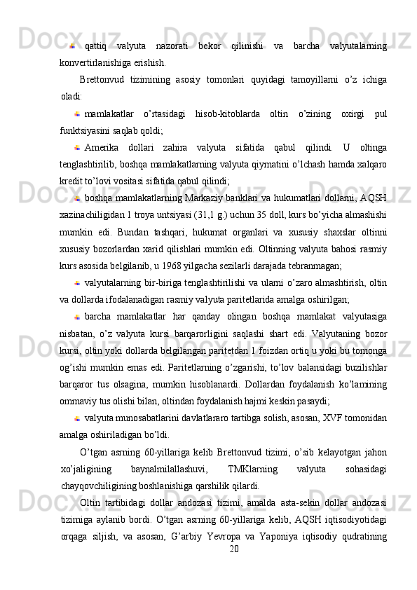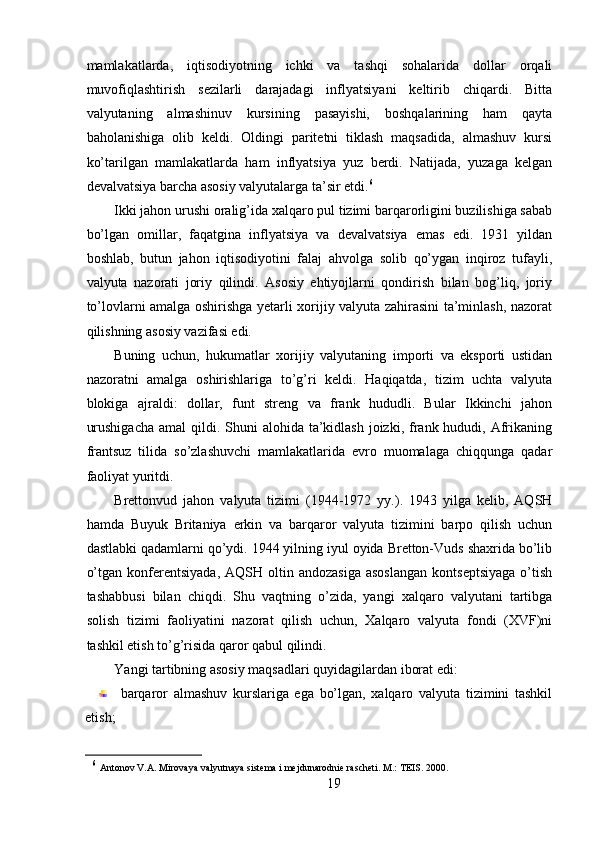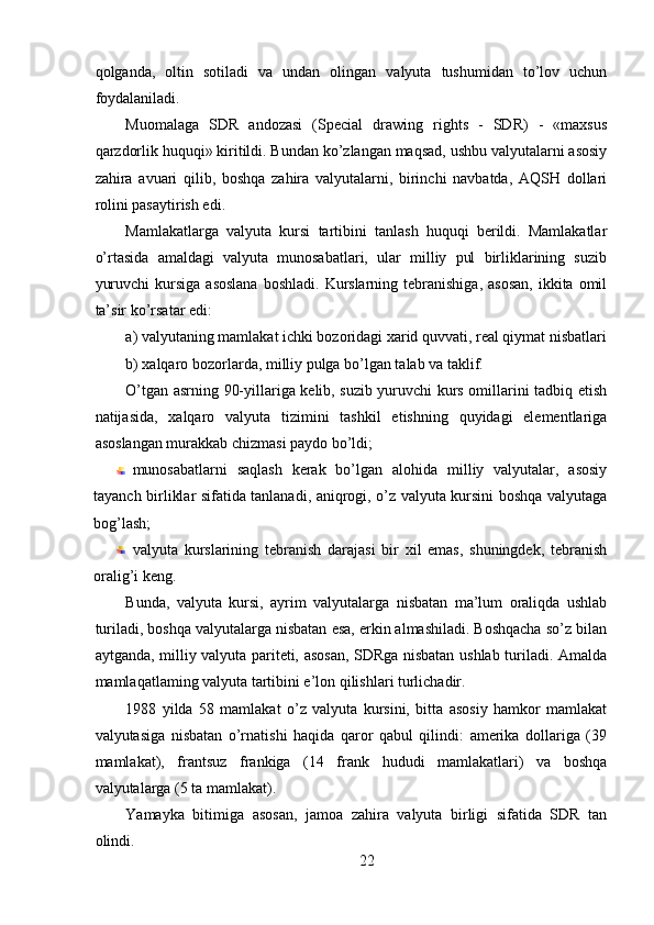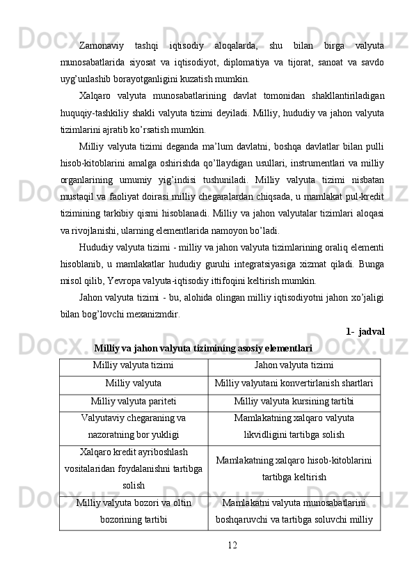 Xalqaro valyuta tizimlari va ularning o'zgarishi