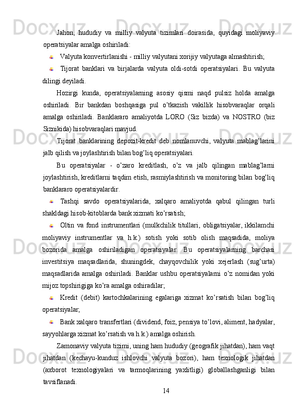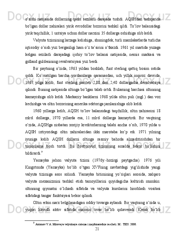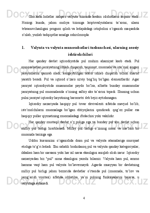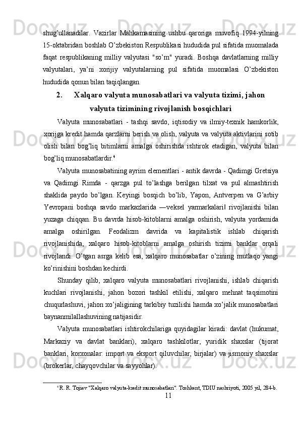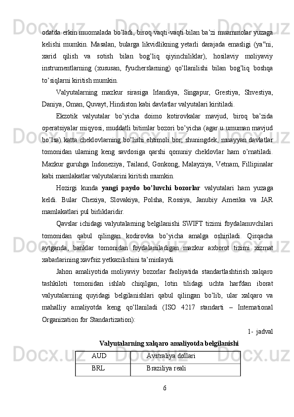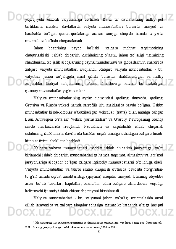 Xalqaro valyuta tizimlari va ularning o'zgarishi