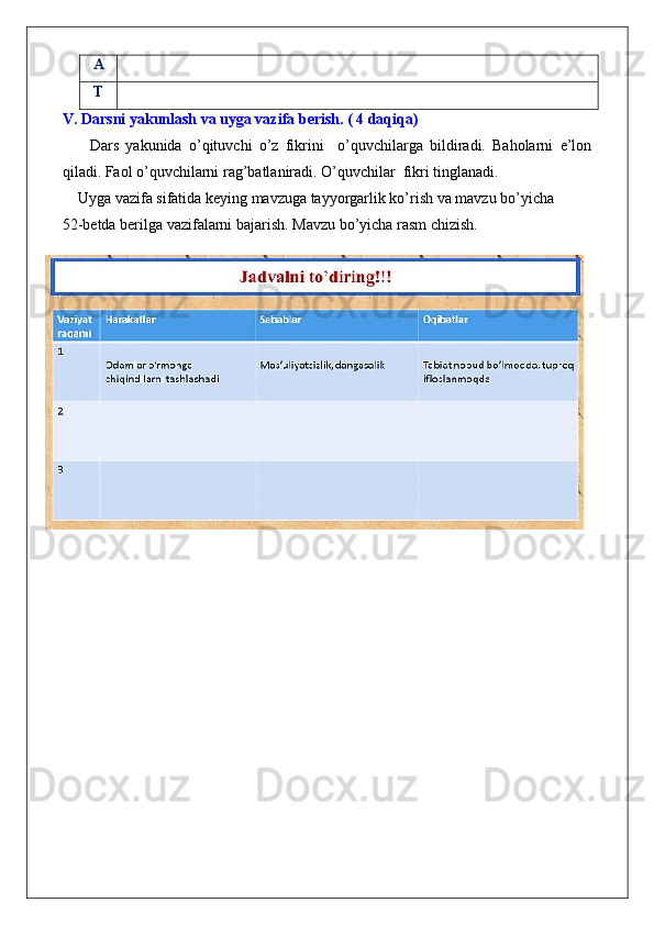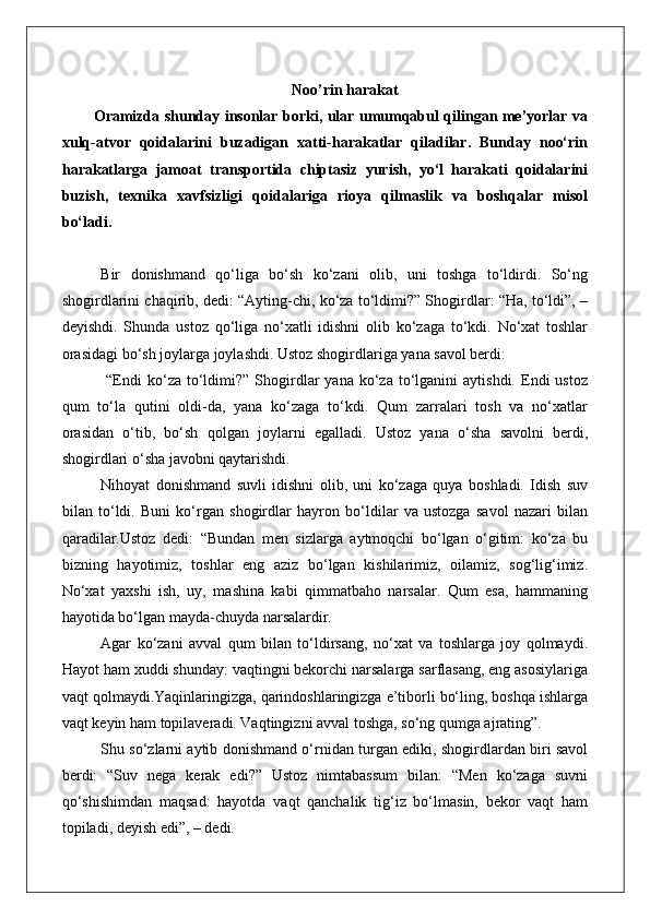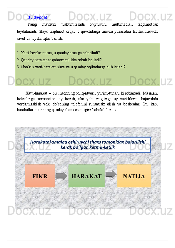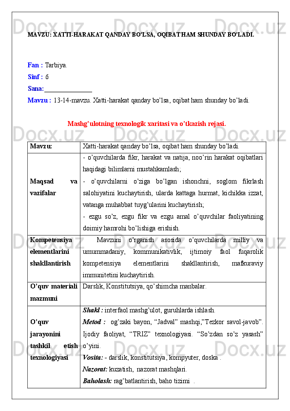 XATTI-HARAKAT QANDAY BO’LSA, OQIBAT HAM SHUNDAY BO’LADI mavzusida dars ishlanma tarbiya fanidan