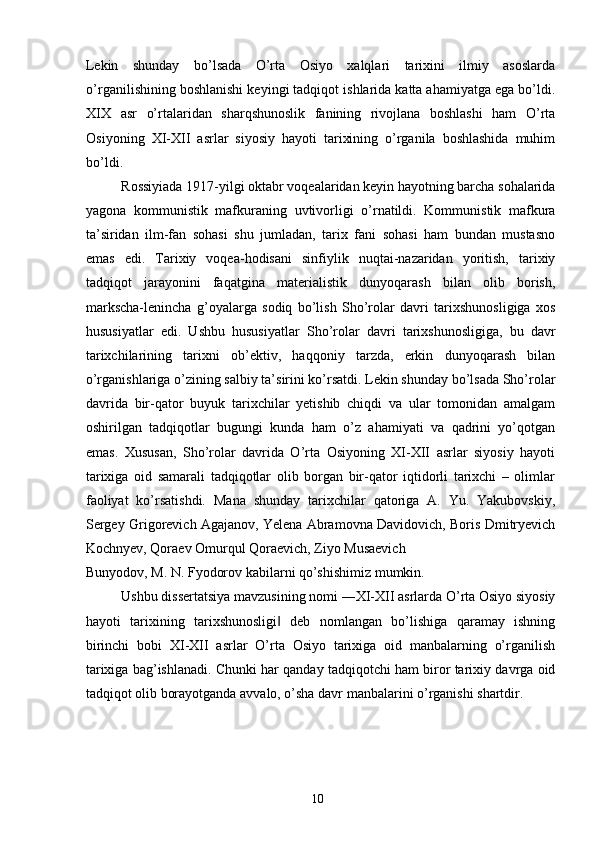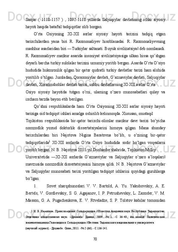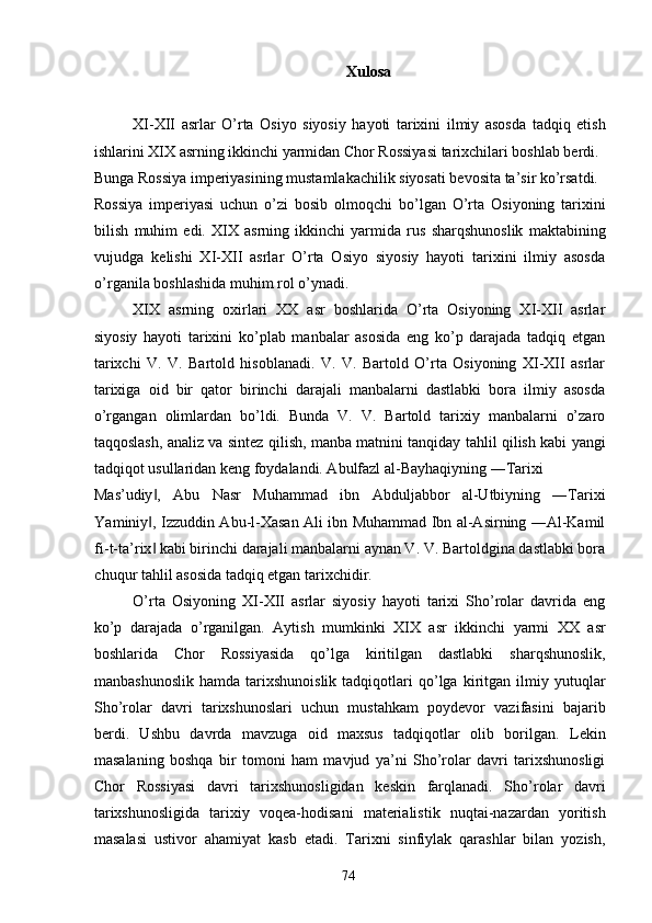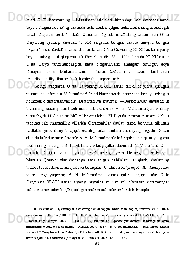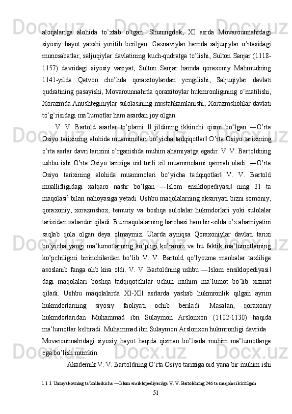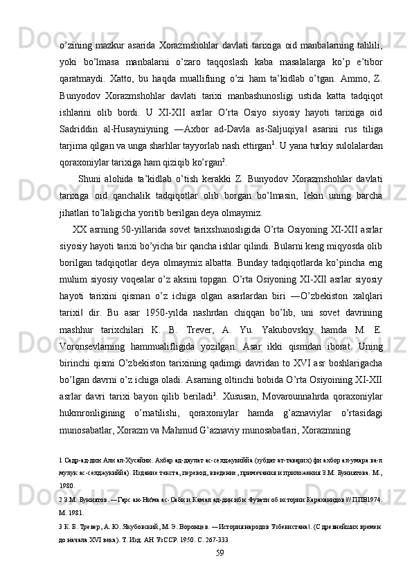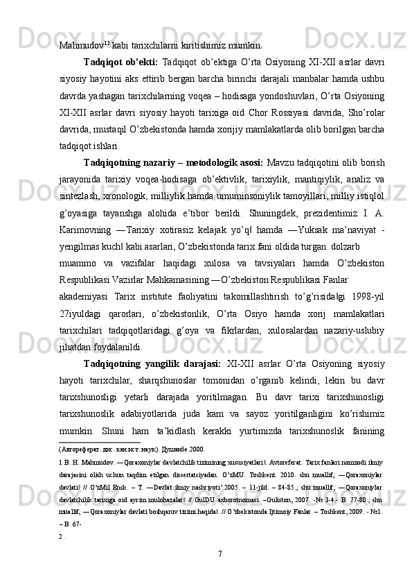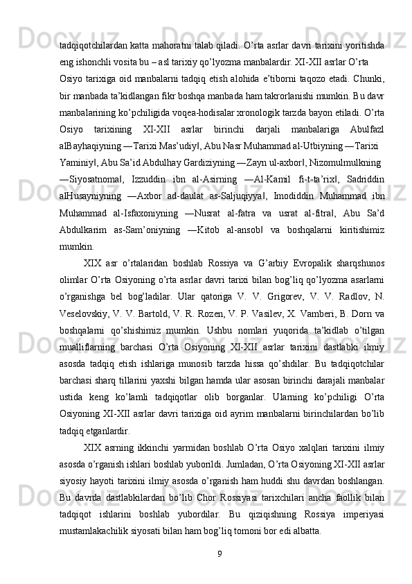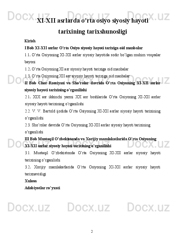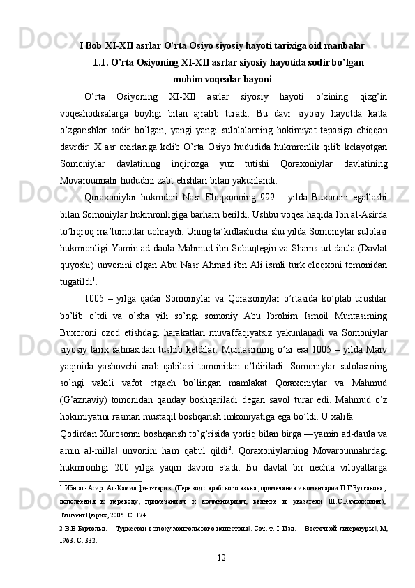 XI-XII ASRLARDA O’RTA OSIYO SIYOSIY HAYOTI TARIXINING TARIXSHUNOSLIGI
