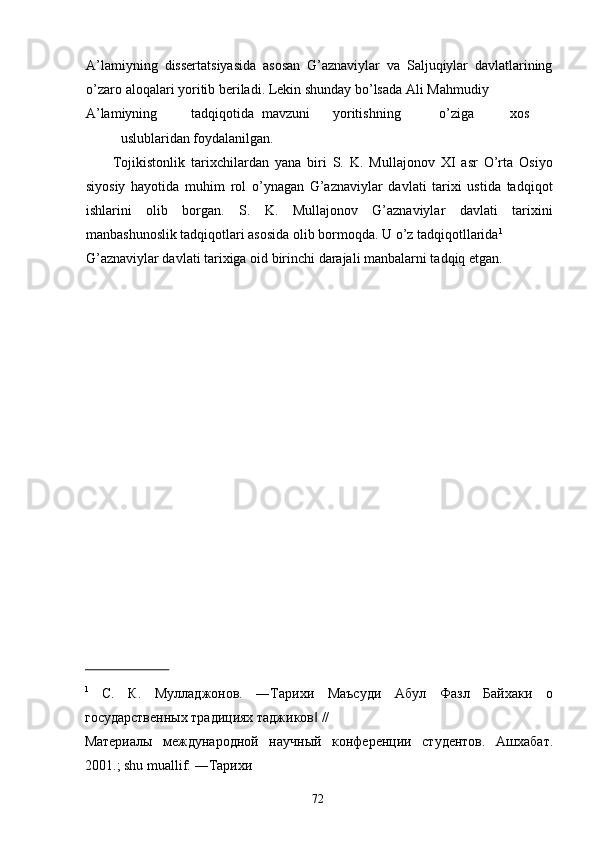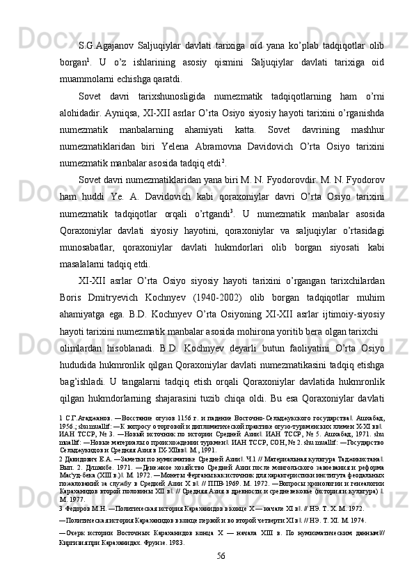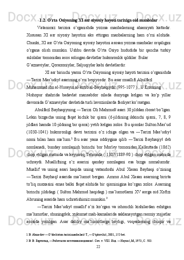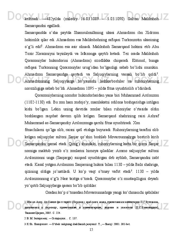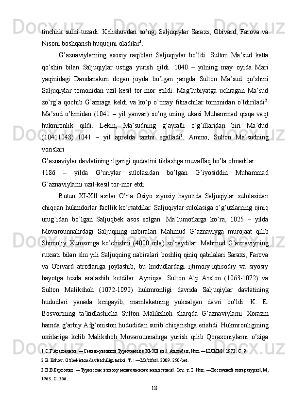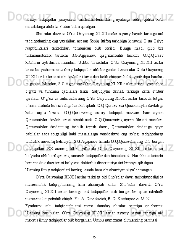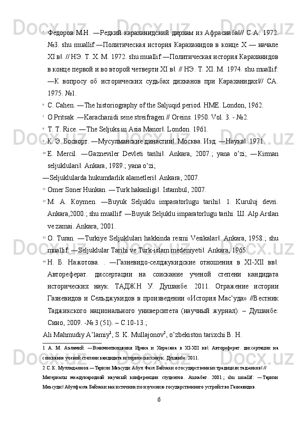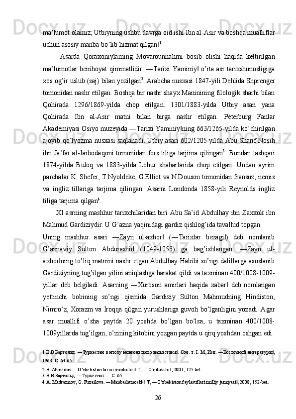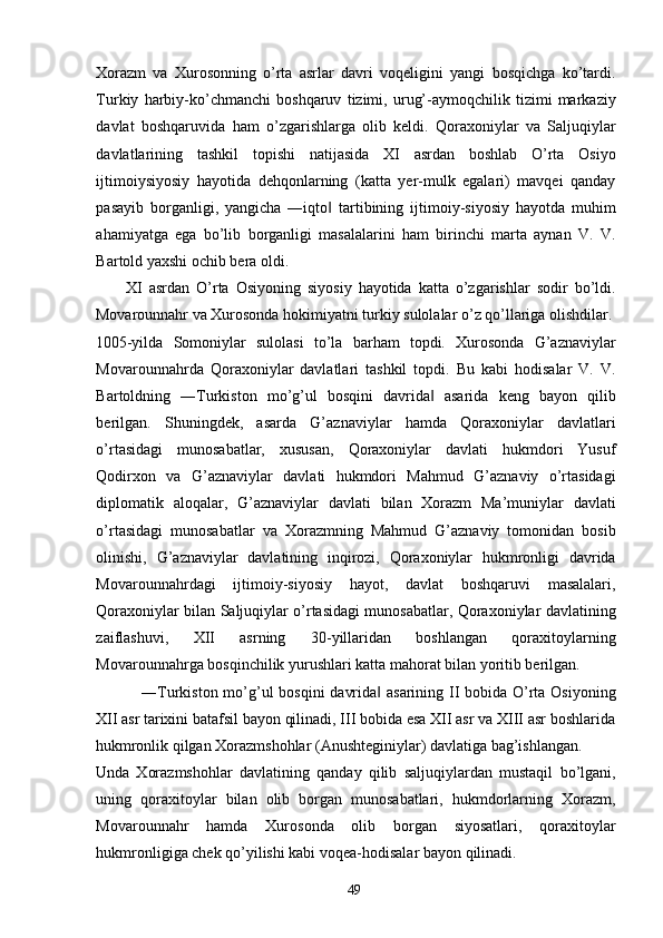 XI-XII ASRLARDA O’RTA OSIYO SIYOSIY HAYOTI TARIXINING TARIXSHUNOSLIGI