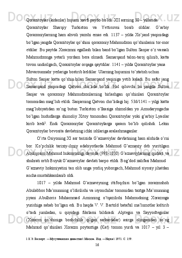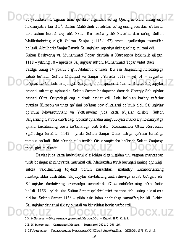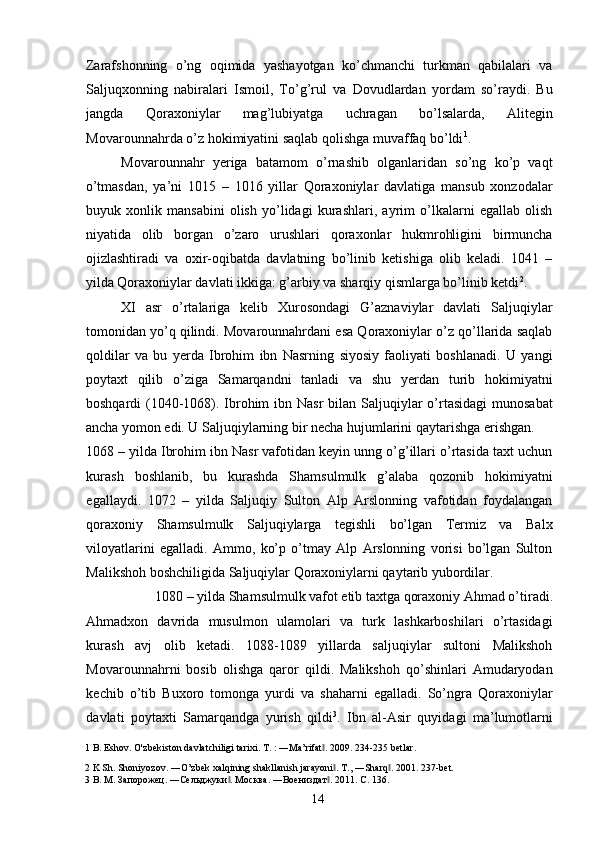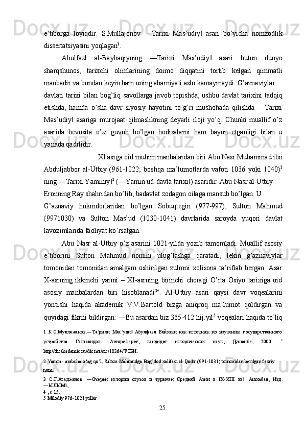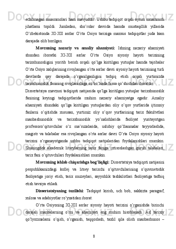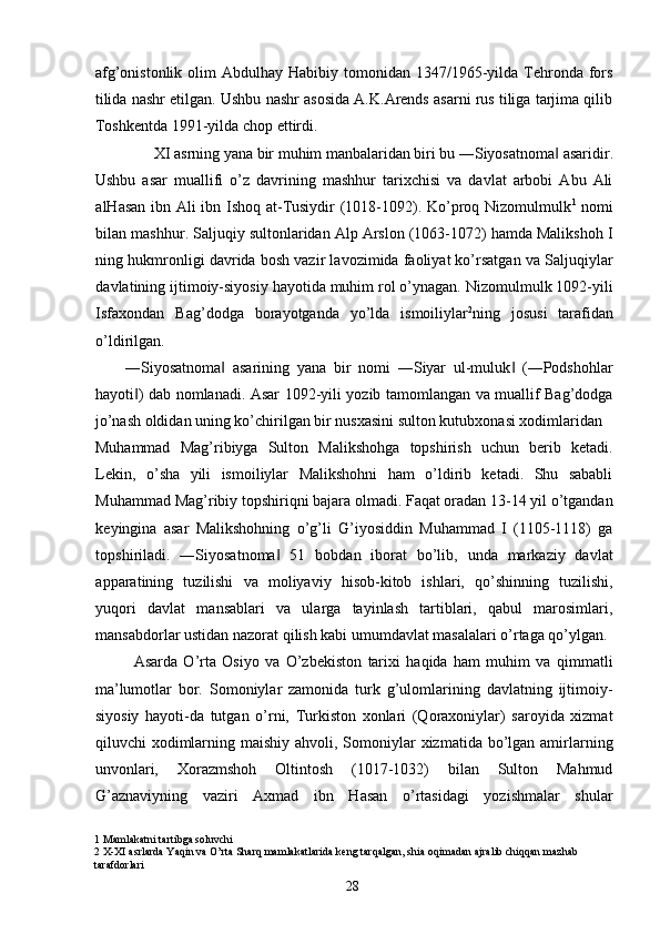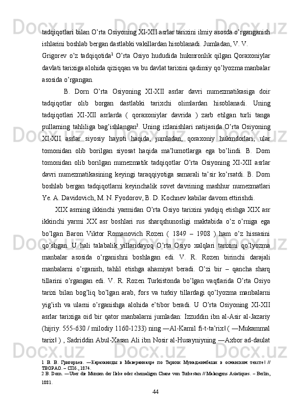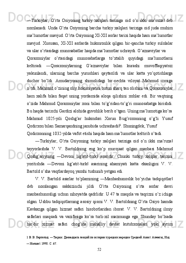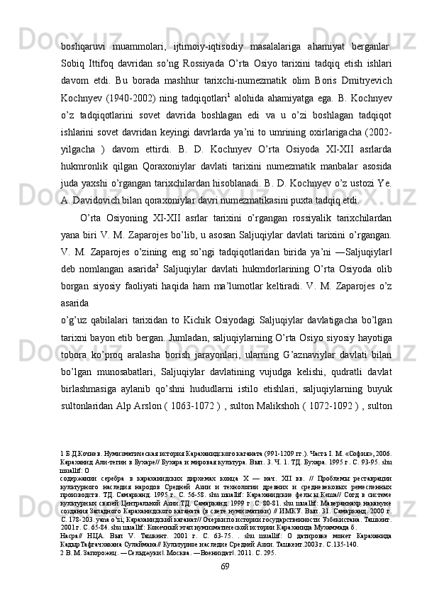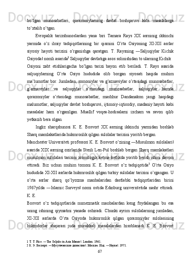 XI-XII ASRLARDA O’RTA OSIYO SIYOSIY HAYOTI TARIXINING TARIXSHUNOSLIGI