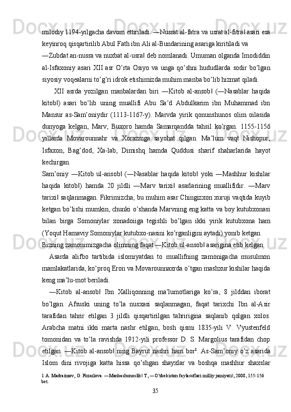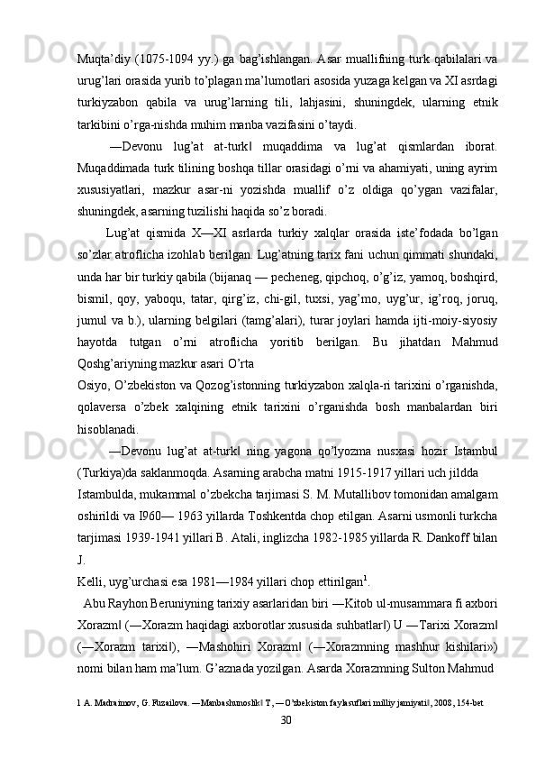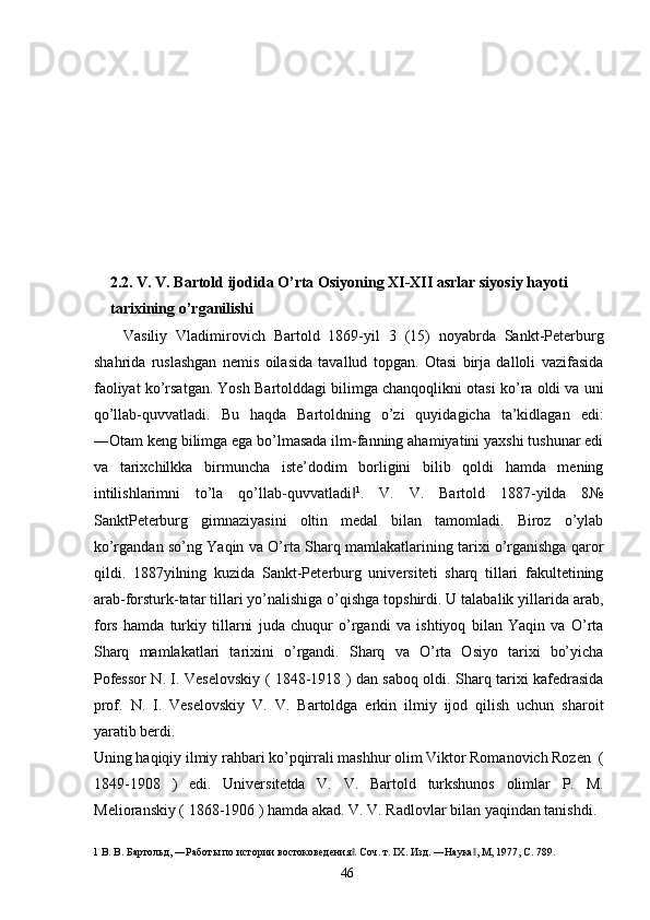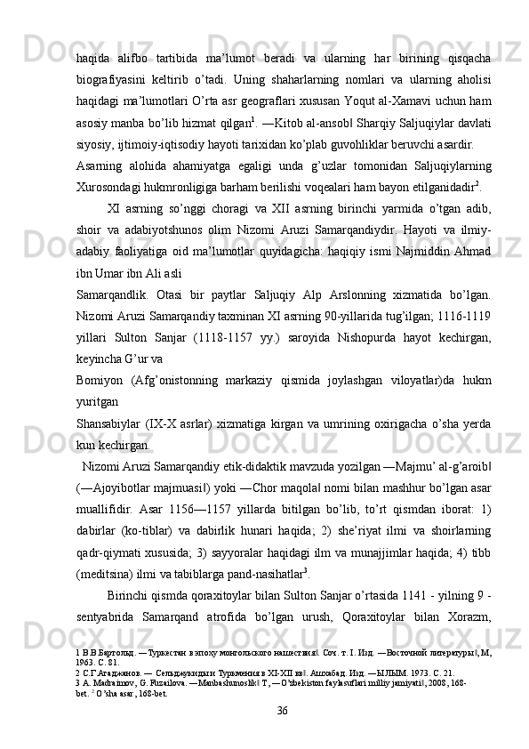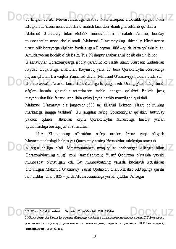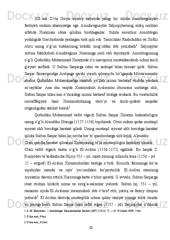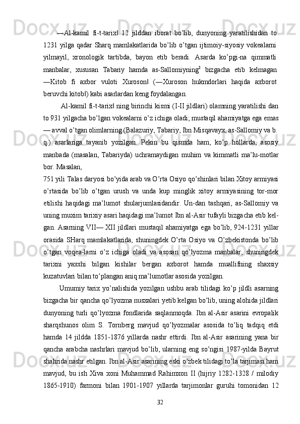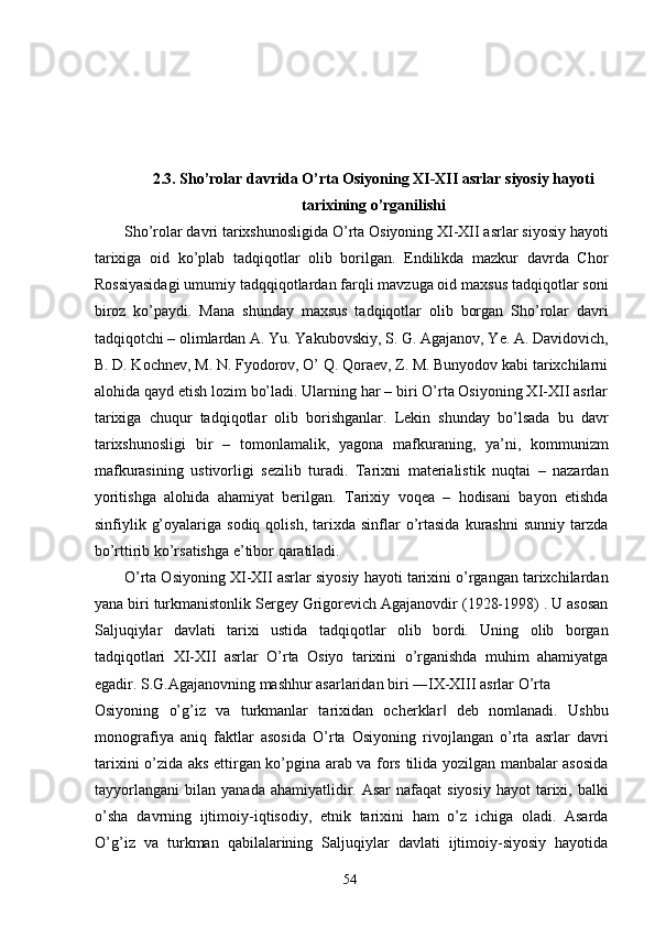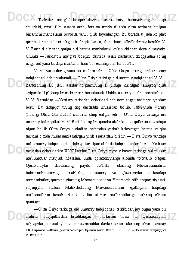 XI-XII ASRLARDA O’RTA OSIYO SIYOSIY HAYOTI TARIXINING TARIXSHUNOSLIGI